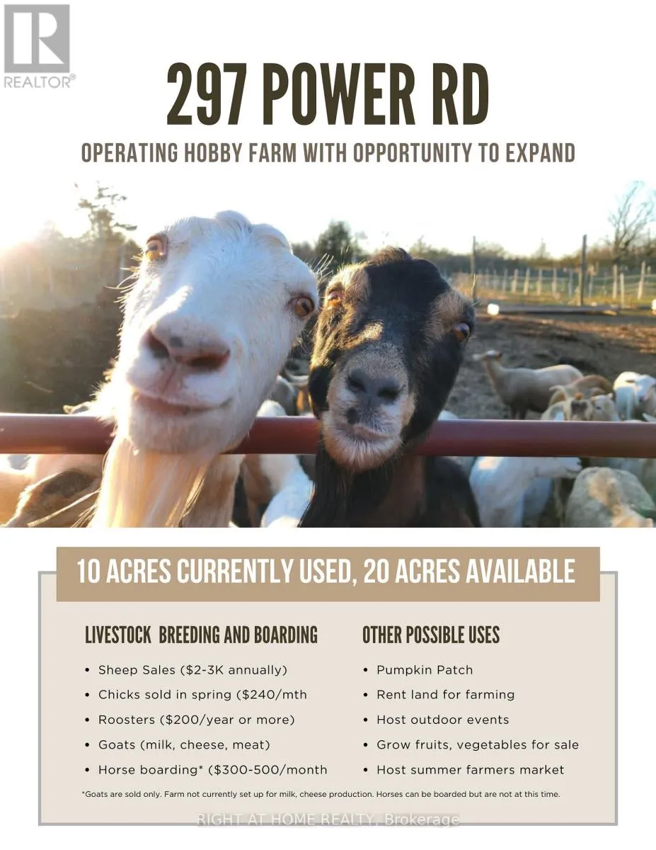 Cross Streets: Enright and Power. ** Directions: Power Rd before Enright. This 20-acre hobby farm is inviting you to create the homestead you've always dreamed of, just a two-hour drive from Toronto. The property is a true working hobby farm, with outbuildings designed for a variety of livestock including goats, chickens. It's an ideal setting for a self-sufficient lifestyle with countless opportunities to generate income whether you want to offer horse boarding, run a seasonal farm stand, or even host a pumpkin patch.The charming 4-bedroom home is full of potential, ready for a new owner's vision and personal touch. Recent upgrades like anew furnace (2018), a new water heater (Jan 2025), and a beautifully remodelled bathroom (Feb 2024) provide a solid foundation. Inside, fresh paint and new flooring in the main living areas give you a head start on making it your own. This is more than a home; it's a chance to build your own self-sustaining rural paradise with many ways to generate income. **Potential to sever one or more lots (pending municipal approval), this is a unique investment opportunity you won't want to miss (id:27476)