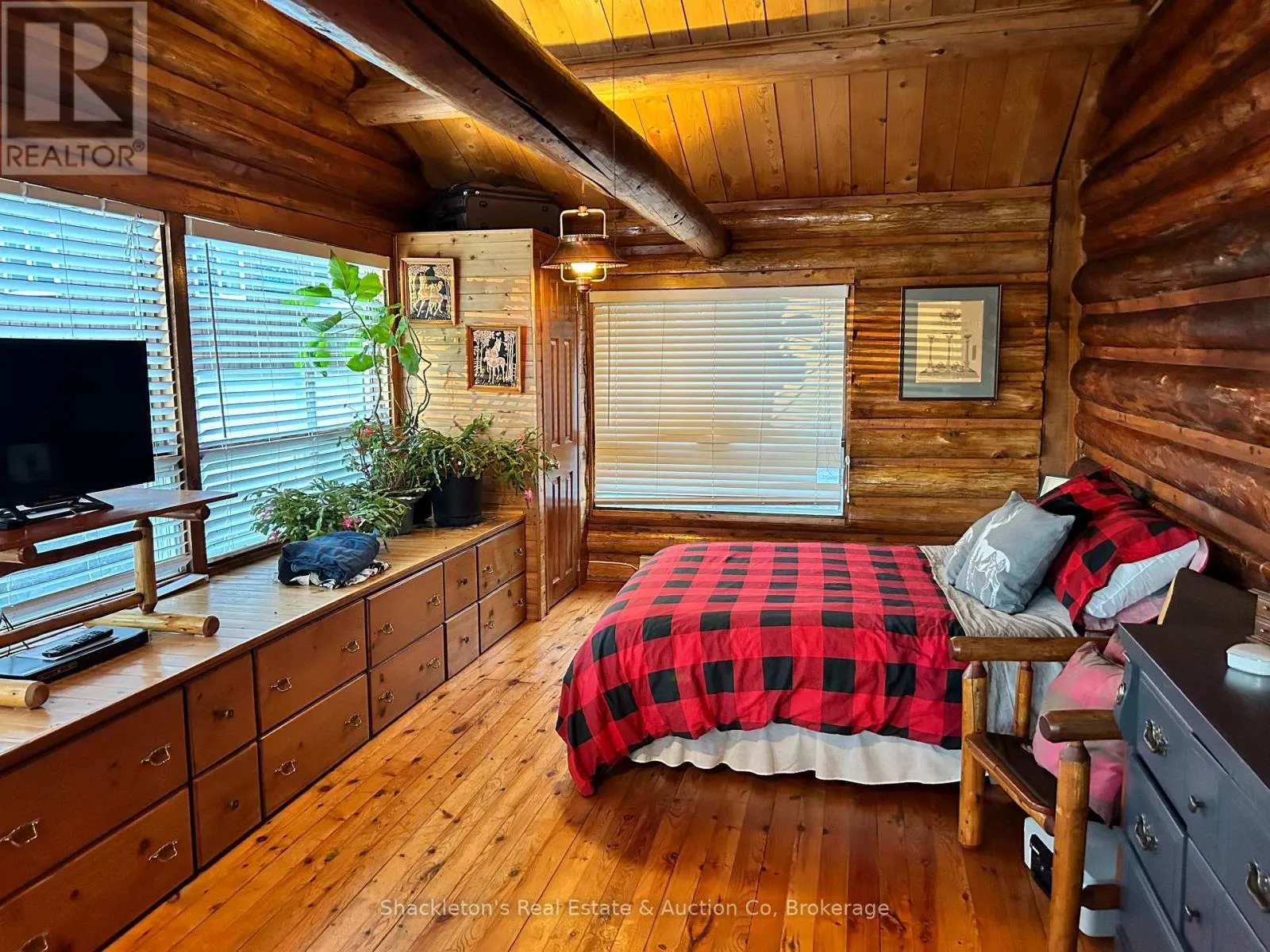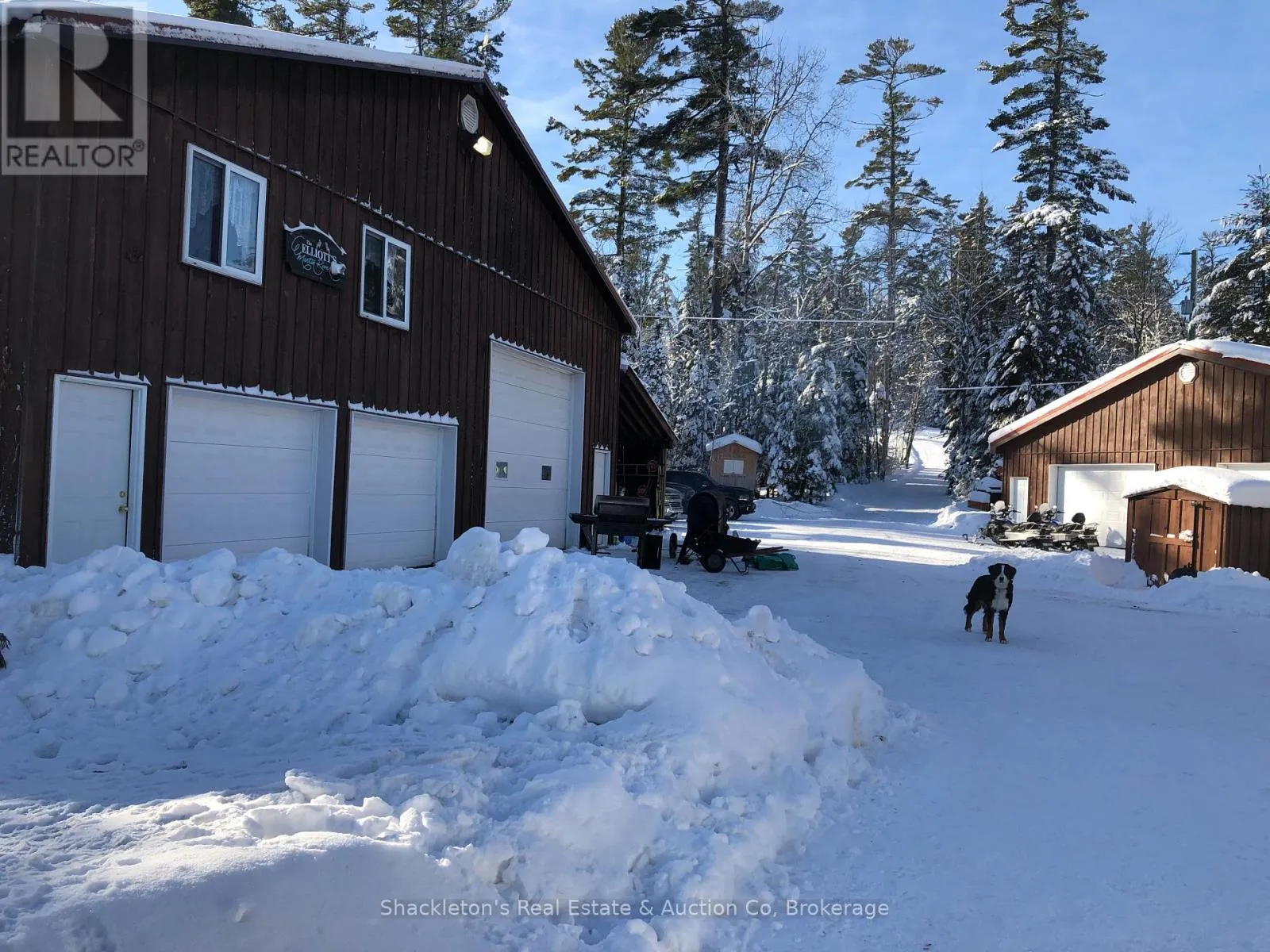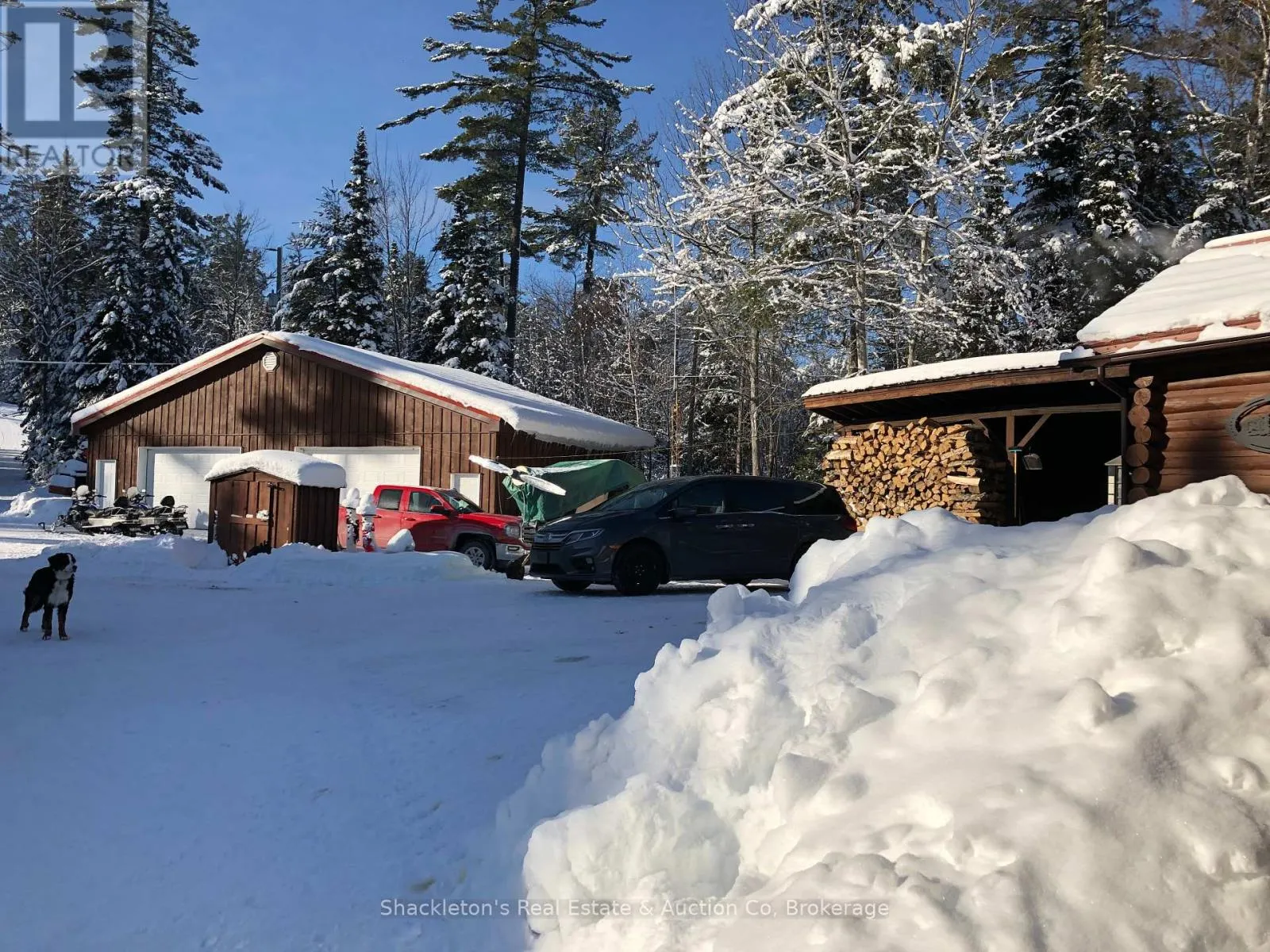 Marten Lake Rd Stunning Log Home on Marten Lake! The Ultimate Northern Getaway. Welcome to your dream retreat on the crystal clear shores of Marten Lake. This beautifully crafted log home blends rustic charm with modern comfort and is the perfect setting for family escapes, entertaining, or a high demand Airbnb rental. The main log home features one spacious bedroom, beautiful stone wood fireplace and has been updated with all new appliances in 2025, offering modern convenience in a warm, rustic setting. Just steps away, a separate bunkie with six additional bedrooms provides exceptional guest accommodations and will be sold fully furnished, making it completely turn-key for rentals or extended family stays. A standout feature of this property is the impressive multi-bay garage, providing abundant storage for vehicles, ATVs, boats, and snowmobiles, plus extra space ideal for a greenhouse, workshop, or hobby area. Outside, you'll fall in love with the breathtaking lakefront setting. Enjoy peaceful mornings and golden sunsets from your private dock, complete with Adirondack chairs overlooking the water. After a day of exploring, unwind in your sauna and hot tub, the perfect way to relax in every season. With snowmobile trails nearby, this is a true four-season paradise: swim, boat, fish, hike, sled, and enjoy nature year round. Whether you're seeking a private family getaway, a retreat property, or a top tier short term rental investment, this Marten Lake gem offers unmatched charm, space, and lifestyle. (id:27476)