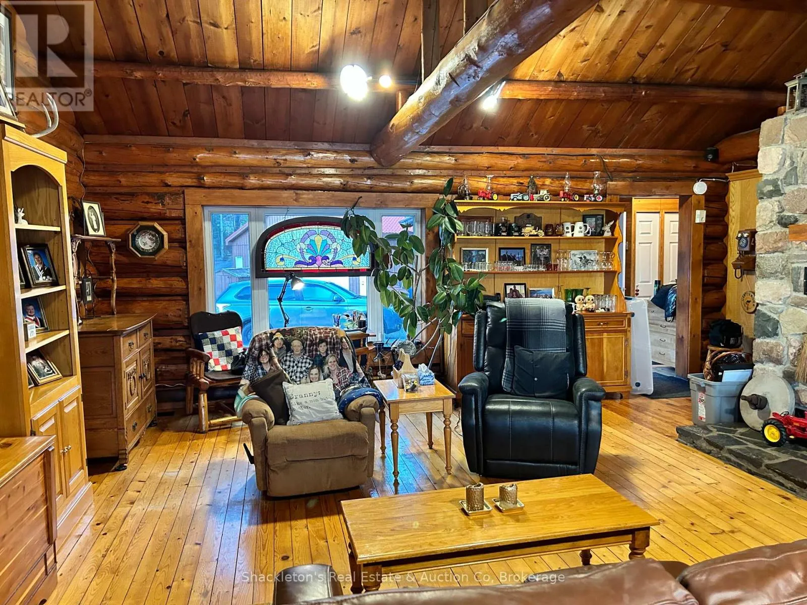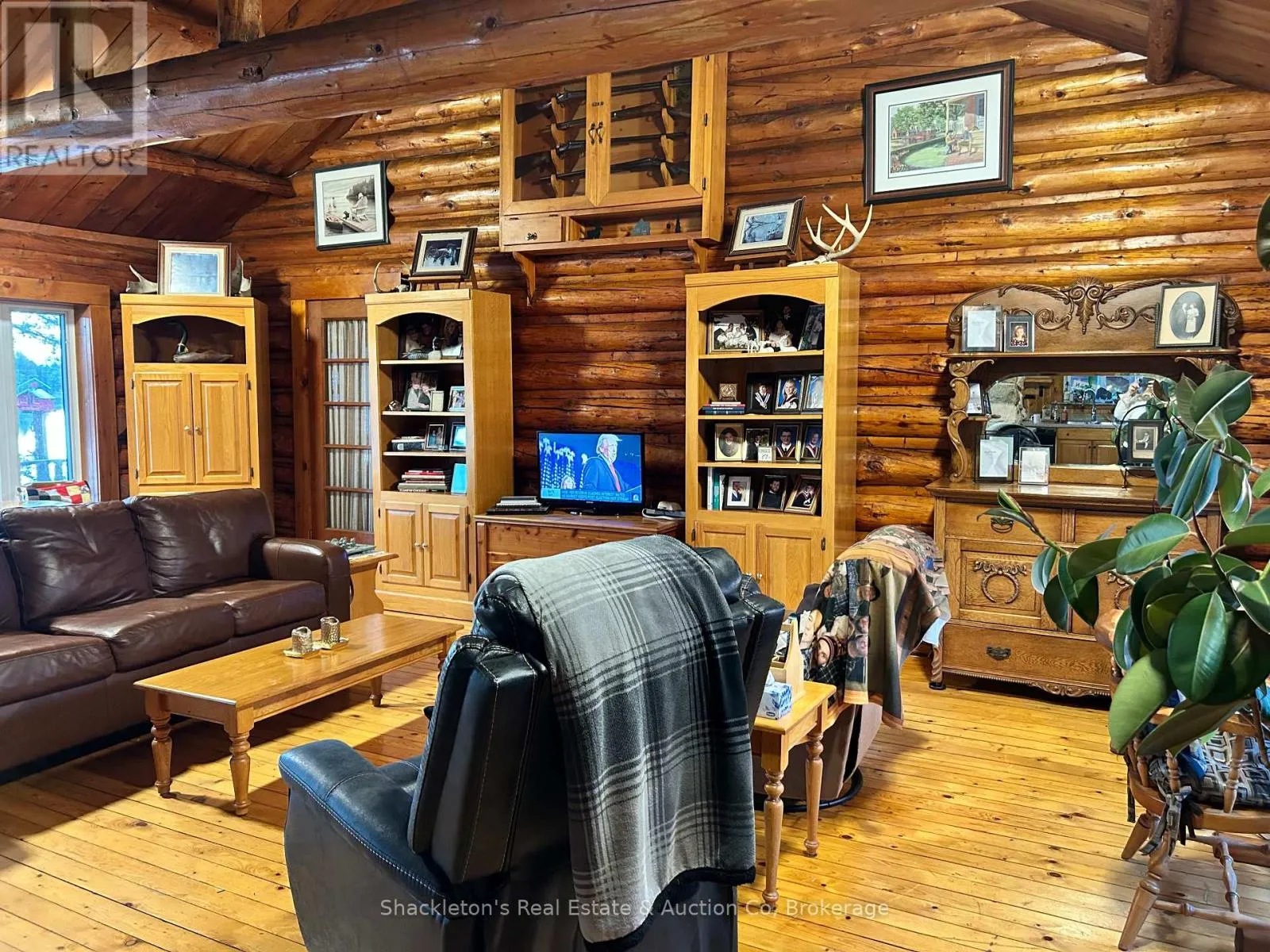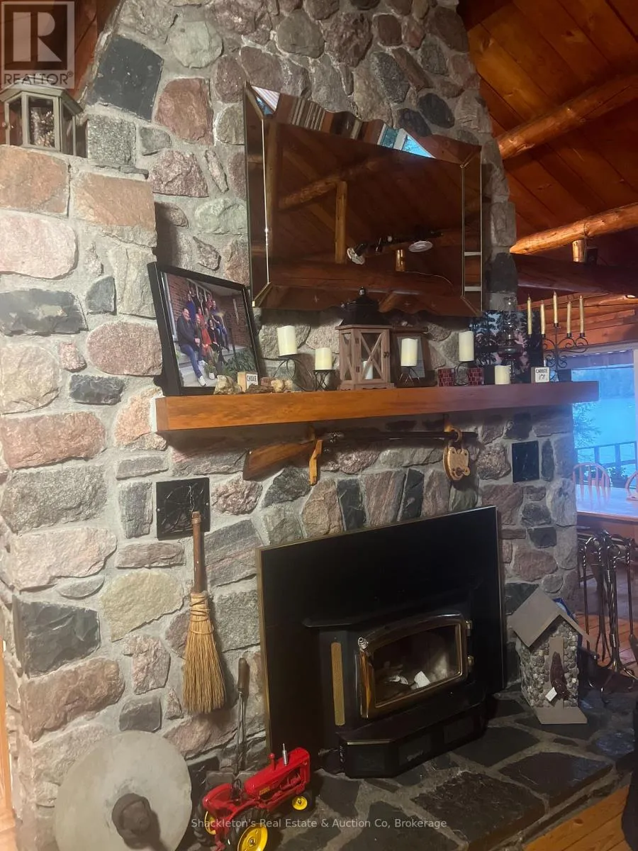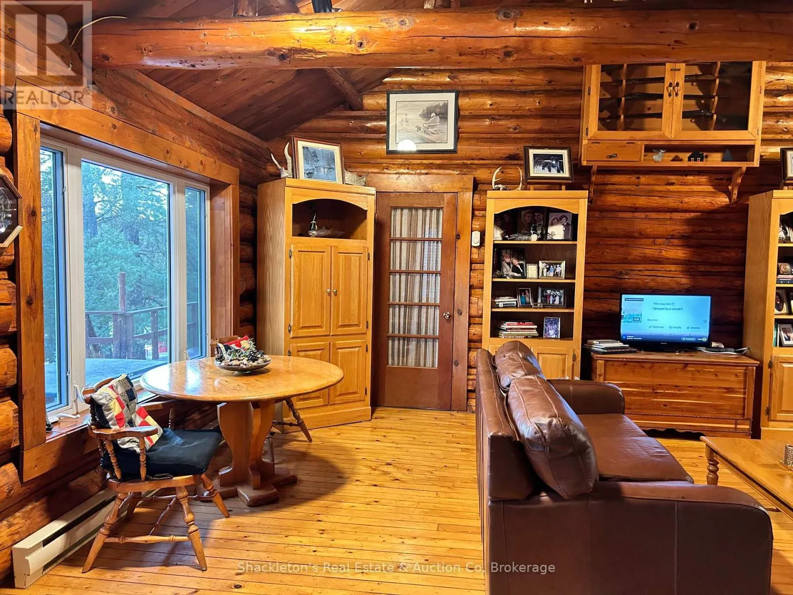 Marten Lake Rd Stunning Log Home on Marten Lake! The Ultimate Northern Getaway. Welcome to your dream retreat on the crystal clear shores of Marten Lake. This beautifully crafted log home blends rustic charm with modern comfort and is the perfect setting for family escapes, entertaining, or a high demand Airbnb rental. The main log home features one spacious bedroom, beautiful stone wood fireplace and has been updated with all new appliances in 2025, offering modern convenience in a warm, rustic setting. Just steps away, a separate bunkie with six additional bedrooms provides exceptional guest accommodations and will be sold fully furnished, making it completely turn-key for rentals or extended family stays. A standout feature of this property is the impressive multi-bay garage, providing abundant storage for vehicles, ATVs, boats, and snowmobiles, plus extra space ideal for a greenhouse, workshop, or hobby area. Outside, you'll fall in love with the breathtaking lakefront setting. Enjoy peaceful mornings and golden sunsets from your private dock, complete with Adirondack chairs overlooking the water. After a day of exploring, unwind in your sauna and hot tub, the perfect way to relax in every season. With snowmobile trails nearby, this is a true four-season paradise: swim, boat, fish, hike, sled, and enjoy nature year round. Whether you're seeking a private family getaway, a retreat property, or a top tier short term rental investment, this Marten Lake gem offers unmatched charm, space, and lifestyle. (id:27476)