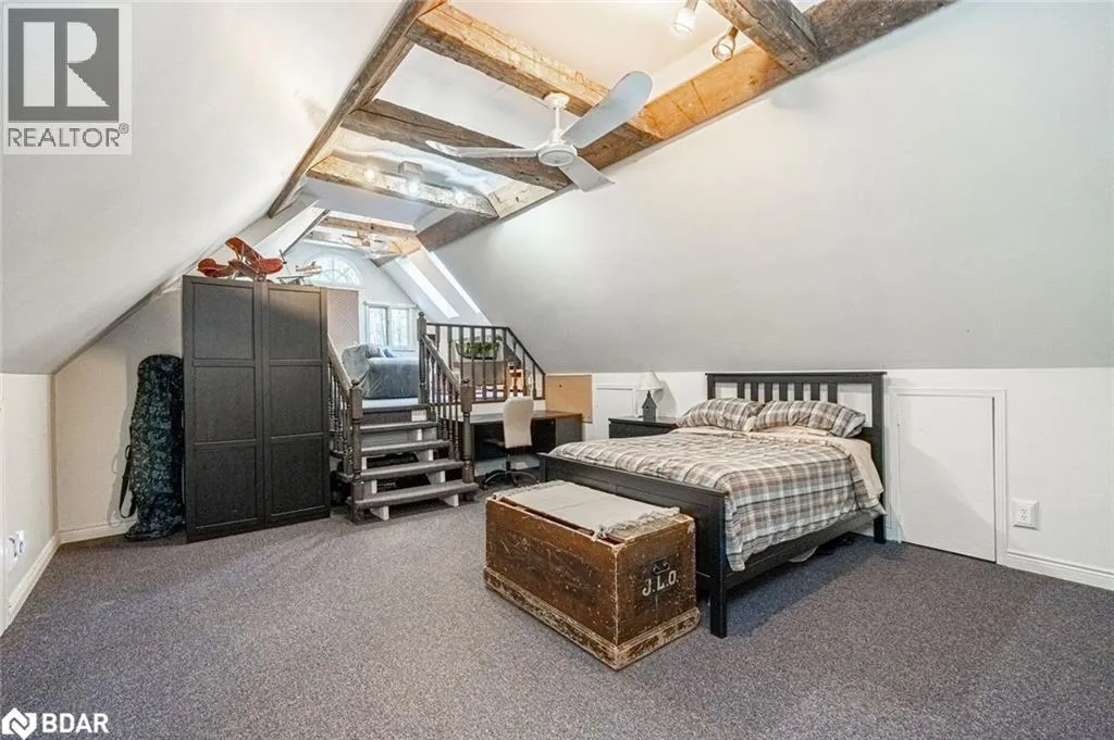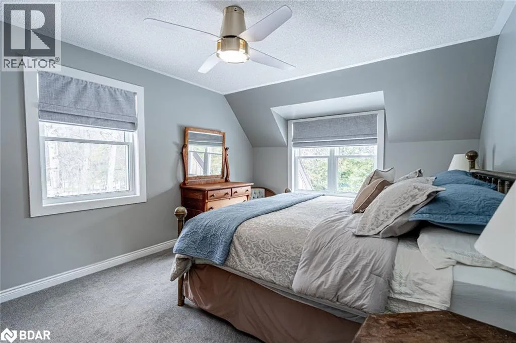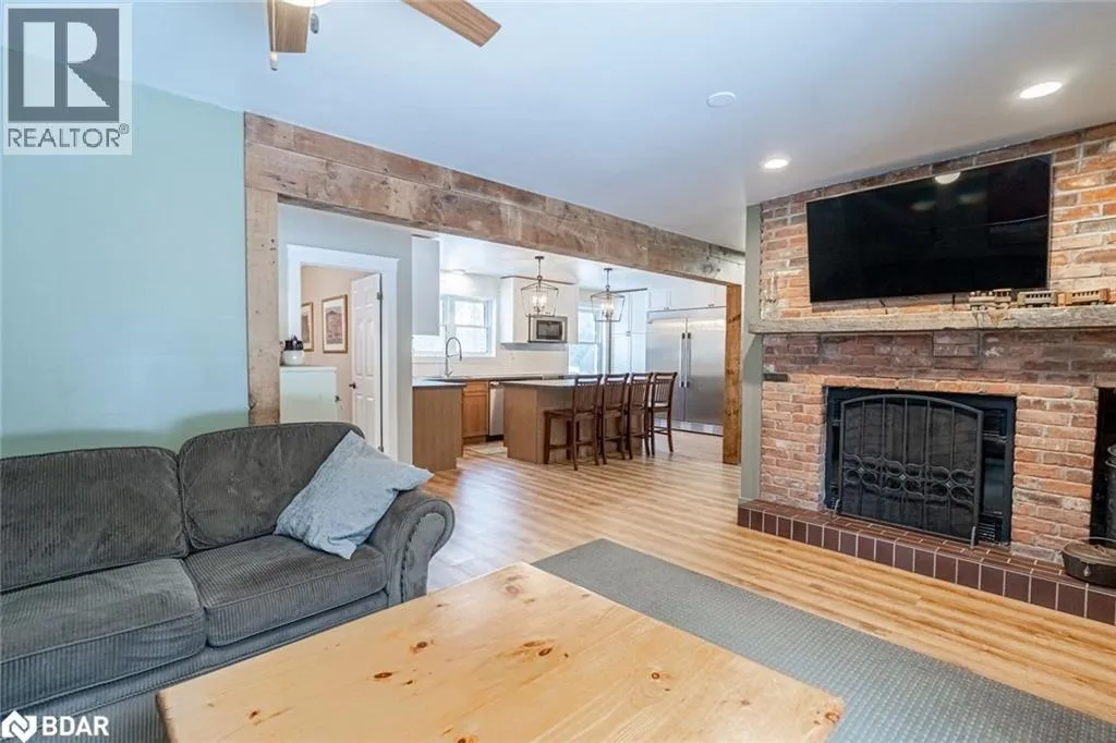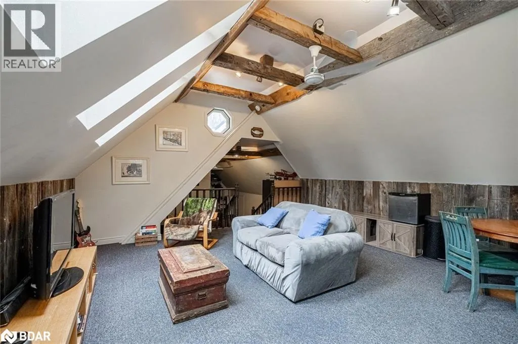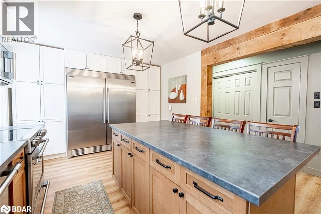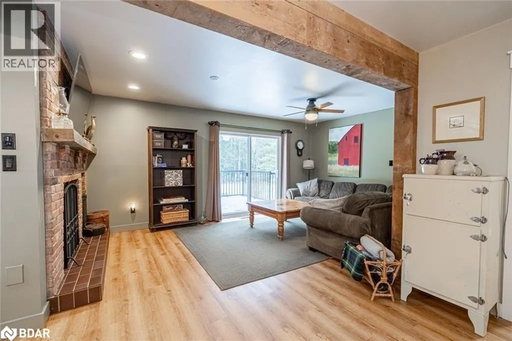 County Rd 56/25th Sideroad/6th Line DISTINGUISHED 2 ACRE ESTATE HIGHLIGHTING 4,400+ SQ FT WITH ADAPTABLE LIVING SPACES INCLUDING INDEPENDENT BASEMENT LIVING QUARTERS & A LOFT RETREAT! Located under 15 mins to Barrie with quick access to Hwy 400, this 2-acre property offers both natural seclusion and unbeatable convenience for commuters. Enveloped by mature trees with tranquil pond views, 7816 6th Line presents over 4,400 fin sq ft of exceptional living space designed to impress at every turn. The finished walkout basement unveils a kitchen, recreation room, bedroom, den, gym, and full bath, creating adaptable separate living quarters for extended family. Above the garage, a vaulted loft retreat with exposed beams, skylights, a private deck, and a separate entrance elevates the possibilities for a studio, guest hideaway, or inspiring workspace. At the heart of the home, the kitchen takes centre stage with striking two-tone cabinetry, a side-by-side stainless steel fridge and freezer, high-end appliances, subway tile backsplash, and a sprawling island. Formal and casual gathering spaces include a dining room perfect for entertaining, a living room with a fireplace, and a separate family room with its own fireplace and walkout. The 3-season sunroom invites serene moments with panoramic views of the forest and pond, while the main level also reveals a versatile office and a laundry room with storage and outdoor access. Completing the second floor is a tranquil primary suite with a 3-pc ensuite, two additional bedrooms, a stylish main 4-pc bath, and a sitting area. Practicality meets presence with a triple-wide driveway, an insulated 2-car garage, and a rare drive-through carport. This home is also equipped with a water softener, a central vacuum, and a premium geothermal heating and cooling system, delivering year-round comfort with exceptional energy efficiency and helping to lower utility expenses. This one-of-a-kind #HomeToStay delivers sophistication, space, and natural seclusion in equal measure. (id:27476)