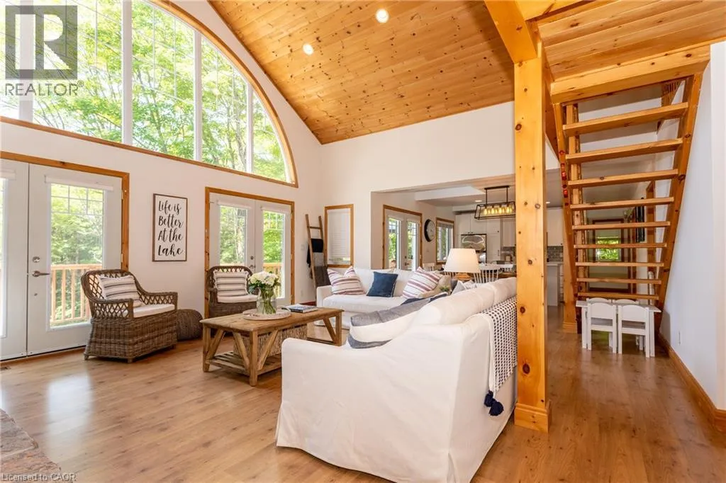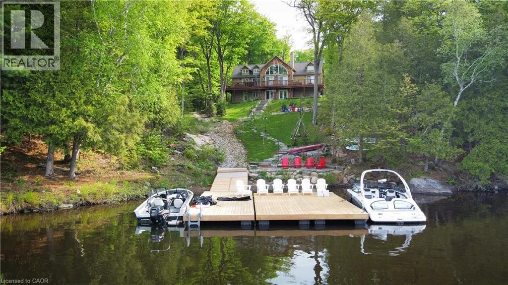 Windamere Road to Shea Road Welcome to 1235 Shea Road in Utterson â a stunning cottage retreat where luxury meets the tranquility of waterfront living. Thoughtfully designed and meticulously maintained, this property offers an exceptional resort-like experience from the moment you arrive. The grounds are truly a standout feature, showcasing incredible professional landscaping that blends seamlessly with the natural surroundings. Meandering pathways with elegant lighting guide you down to the waterâs edge, creating a magical ambiance in the evenings and making every step feel like a getaway. Wake up to serene water views right from your primary bedroom â a peaceful start to every day in this private oasis. Down at the shoreline, enjoy the convenience and quality of a brand new NyDock floating dock system, perfect for swimming, boating, or simply soaking in the sun. A detached two-car garage provides ample storage for vehicles, recreational gear, or workshop space, adding both functionality and flexibility to the property. Whether youâre entertaining, relaxing, or enjoying the outdoors, this exceptional cottage delivers a true resort-style lifestyle in one of Uttersonâs most picturesque settings. (id:27476)