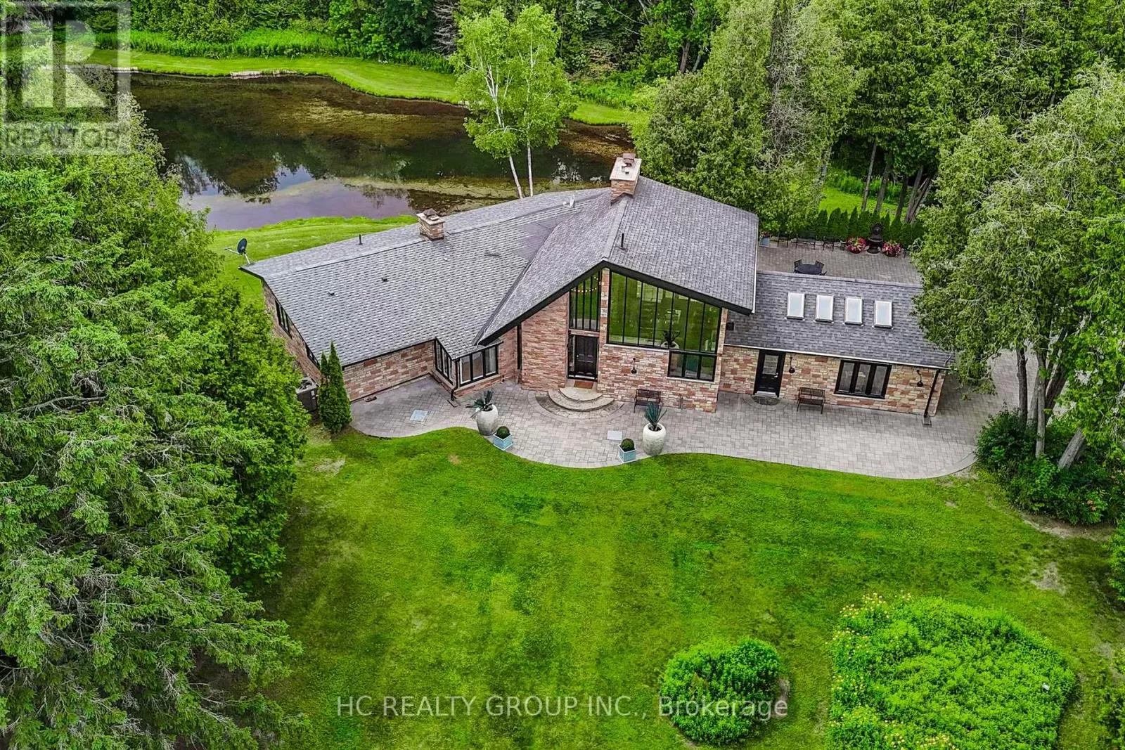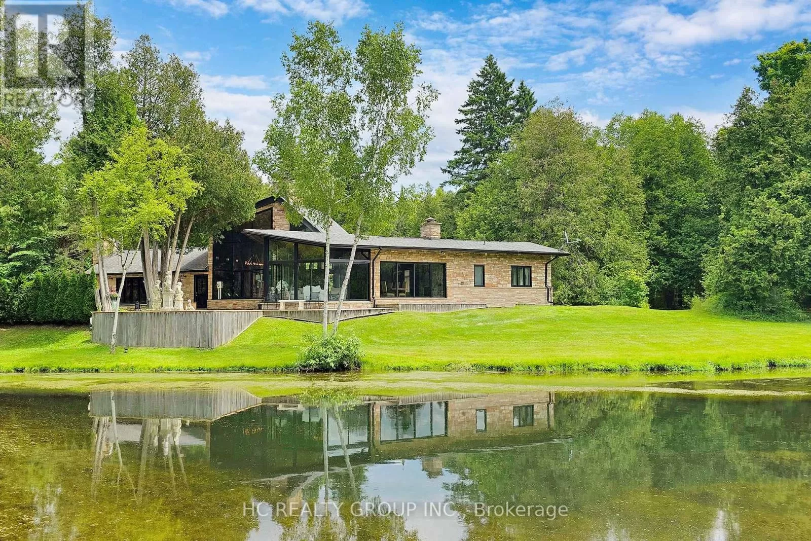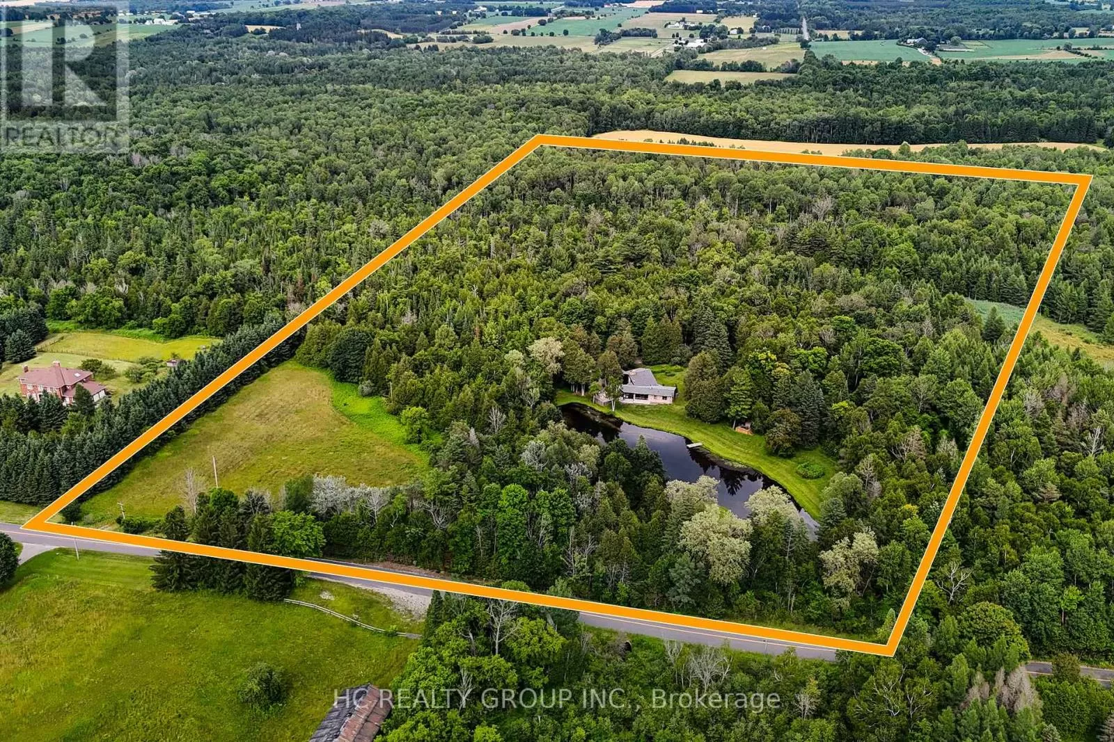 Cross Streets: Davis Dr / Concession 2. ** Directions: South of Davis Dr. Imagine Relaxing By A Tranquil Pond At Sunset, Surrounded By A Lush Forest That Transforms With The Seasons From Vibrant Greens And Blues In Spring And Summer, To Fiery Reds And Golds In Autumn, And A Stunning Palette Of White And Blue In Winter. This European-Inspired 3-Bedroom Bungalow Offers Over 3,300 Sq. Ft. Of Living Space On A Private 20-Acre Wooded Lot, Located Just 30 Minutes From Downtown Markham. A Gated, Tree-Lined Driveway Welcomes You To The Home, Featuring A Spacious Layout That Combines Modern Comfort With Timeless Style. Expansive Picture Windows Fill The Interiors With Natural Light, While Paneled Ceilings Enhance The Elegant, Resort-Like Ambiance. The Property Features A 2-Acre Pond, Charming Gazebo, And A 2,500 Sq. Ft. Stone Patio, Providing Exceptional Outdoor Living And Entertaining Spaces. A Detached 3-Car Garage With Loft Storage And A Private 30-Minute Forest Walking Trail With Boardwalk. A True Masterpiece Of Natural Beauty And Architectural Grace This One-Of-A-Kind Property Offers An Unparalleled Year-Round Luxury Lifestyle. (id:27476)