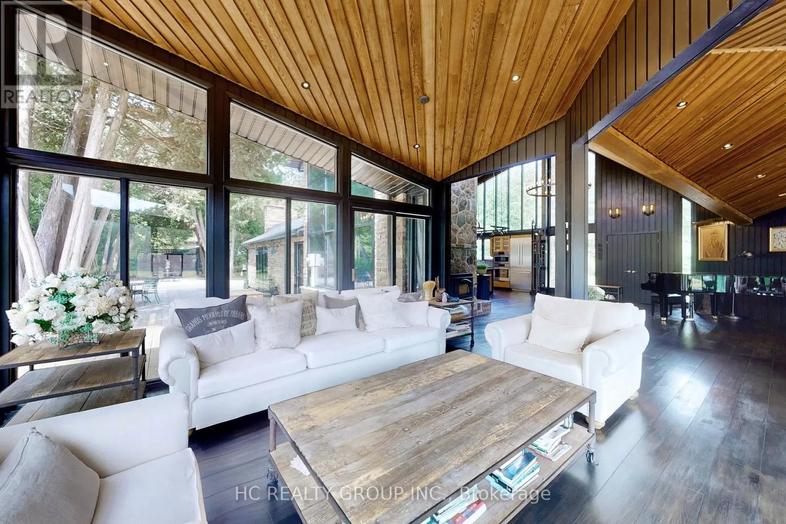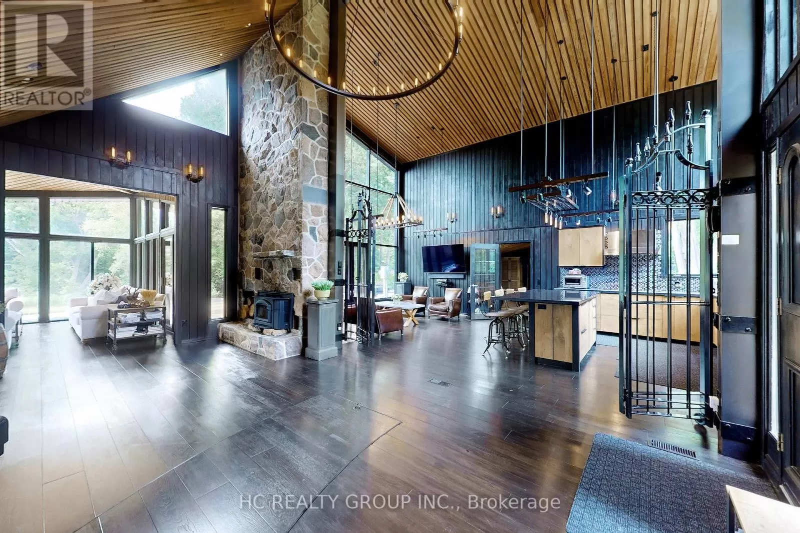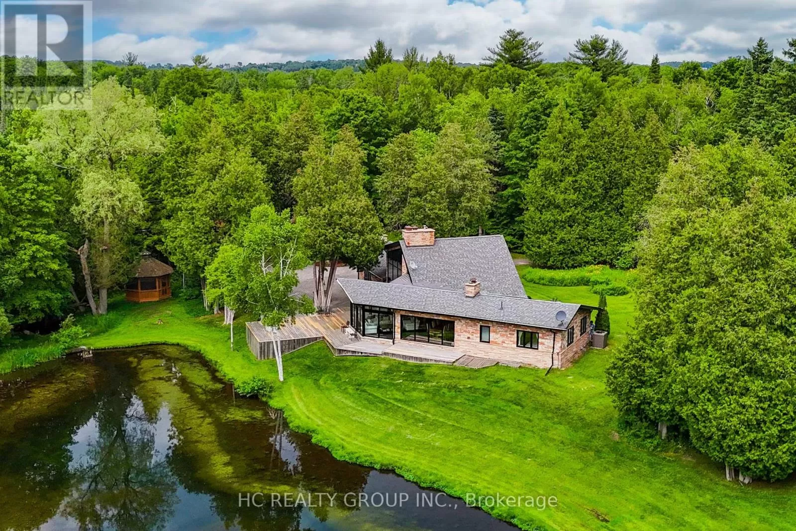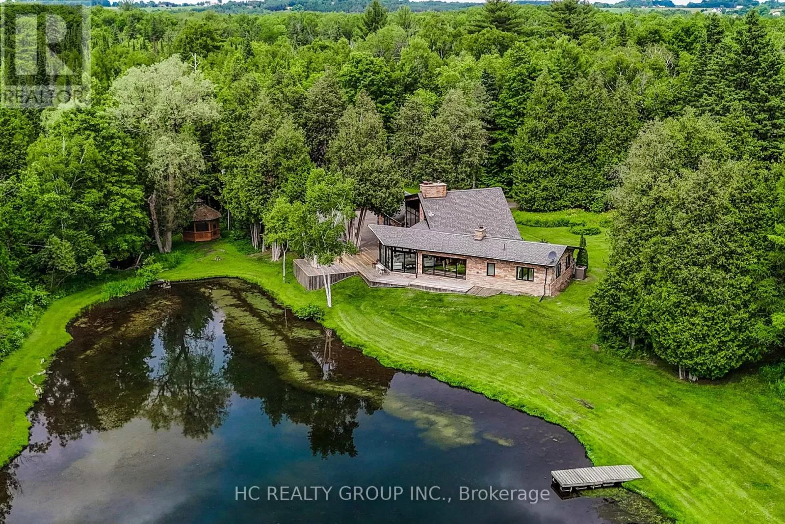 Cross Streets: Davis Dr / Concession 2. ** Directions: South of Davis Dr. Imagine Relaxing By A Tranquil Pond At Sunset, Surrounded By A Lush Forest That Transforms With The Seasons From Vibrant Greens And Blues In Spring And Summer, To Fiery Reds And Golds In Autumn, And A Stunning Palette Of White And Blue In Winter. This European-Inspired 3-Bedroom Bungalow Offers Over 3,300 Sq. Ft. Of Living Space On A Private 20-Acre Wooded Lot, Located Just 30 Minutes From Downtown Markham. A Gated, Tree-Lined Driveway Welcomes You To The Home, Featuring A Spacious Layout That Combines Modern Comfort With Timeless Style. Expansive Picture Windows Fill The Interiors With Natural Light, While Paneled Ceilings Enhance The Elegant, Resort-Like Ambiance. The Property Features A 2-Acre Pond, Charming Gazebo, And A 2,500 Sq. Ft. Stone Patio, Providing Exceptional Outdoor Living And Entertaining Spaces. A Detached 3-Car Garage With Loft Storage And A Private 30-Minute Forest Walking Trail With Boardwalk. A True Masterpiece Of Natural Beauty And Architectural Grace This One-Of-A-Kind Property Offers An Unparalleled Year-Round Luxury Lifestyle. (id:27476)