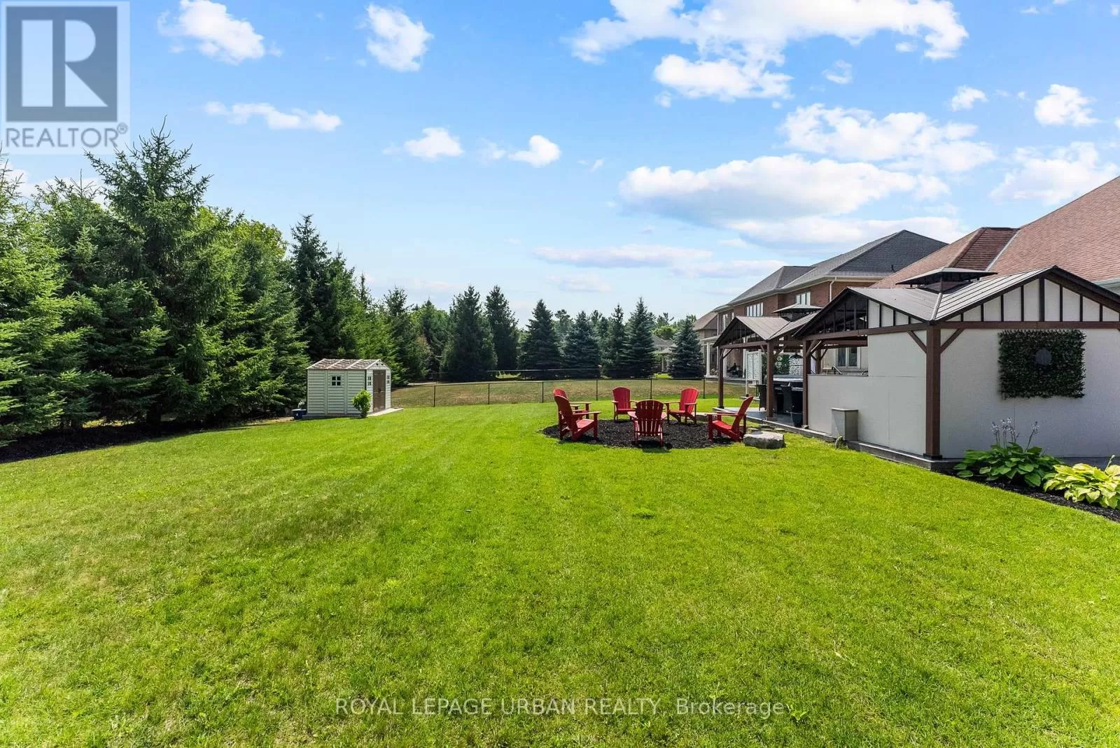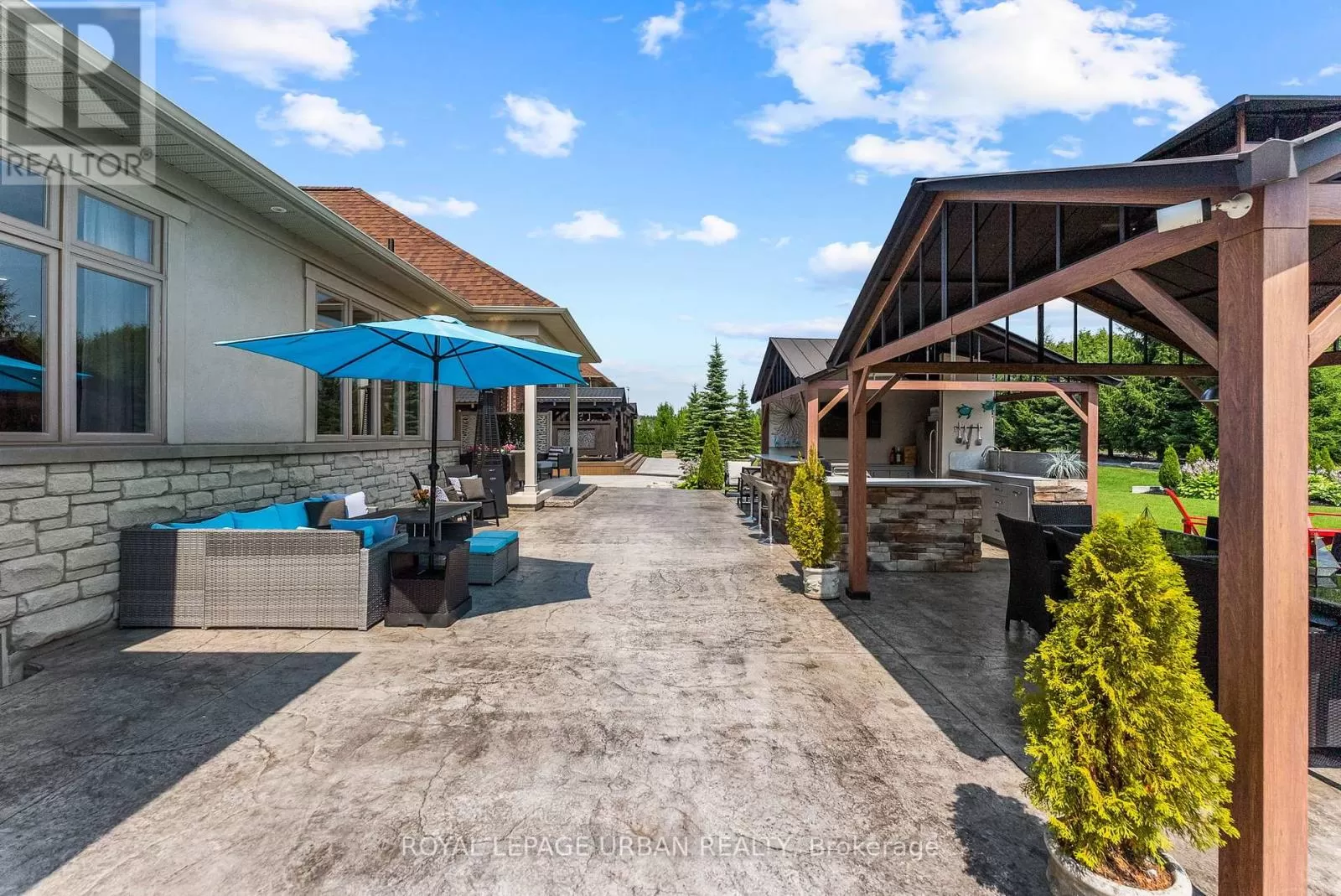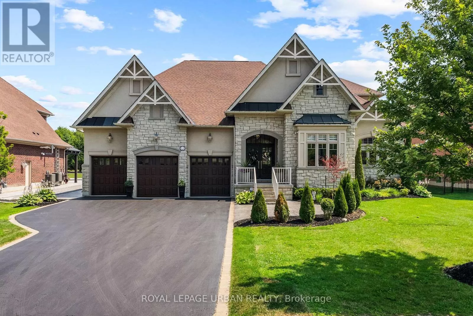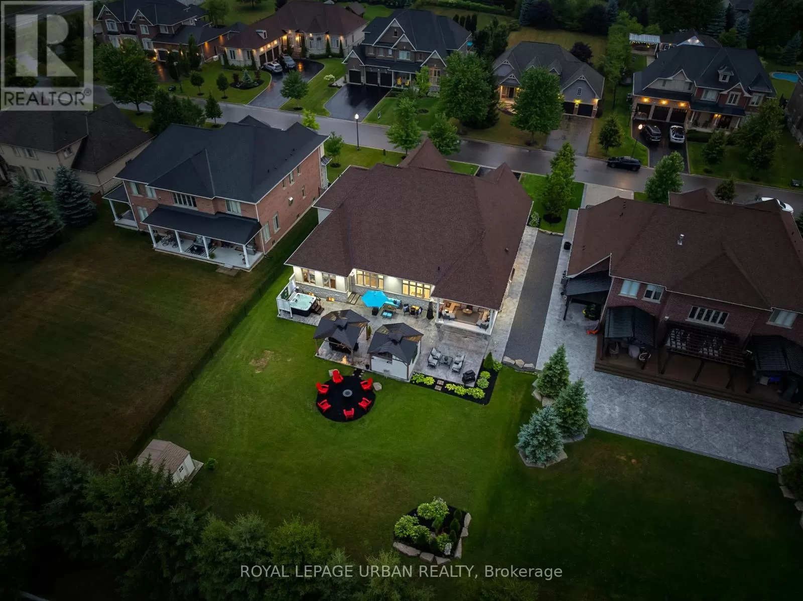 Brock Rd & Goodwood Rd Welcome to this luxurious 6-bedroom, 5-bath bungaloft, perfectly positioned on an impressive 85 x 205 ft lot within one of Uxbridge's most exclusive gated golf course communities. Offering over 6,000 sq. ft. of finished living space with soaring 10 ft ceilings throughout, this home blends timeless elegance with modern convenience.The main level showcases a chef-inspired kitchen with Sub-Zero and Wolf appliances, walk-in pantry, custom wall units, and a convenient main-floor laundry. Expansive principal rooms flow seamlessly, with spacious bedrooms featuring walk-in closets for ultimate comfort.The fully finished basement offers versatile living and entertainment spaces, ideal for hosting family and friends. Every detail has been thoughtfully upgraded, including stamped concrete walkway, accent walls and ceilings, pot lights, and an EV charger.Step outside to your private backyard retreat, complete with a hot tub, two gazebos, and professionally landscaped grounds perfect for outdoor living and entertaining.With parking for 9 vehicles and a 3-car garage, this home truly has it all.This is a rare opportunity to own a modern, upgraded residence in one of Uxbridge's most sought-after communities. (id:27476)