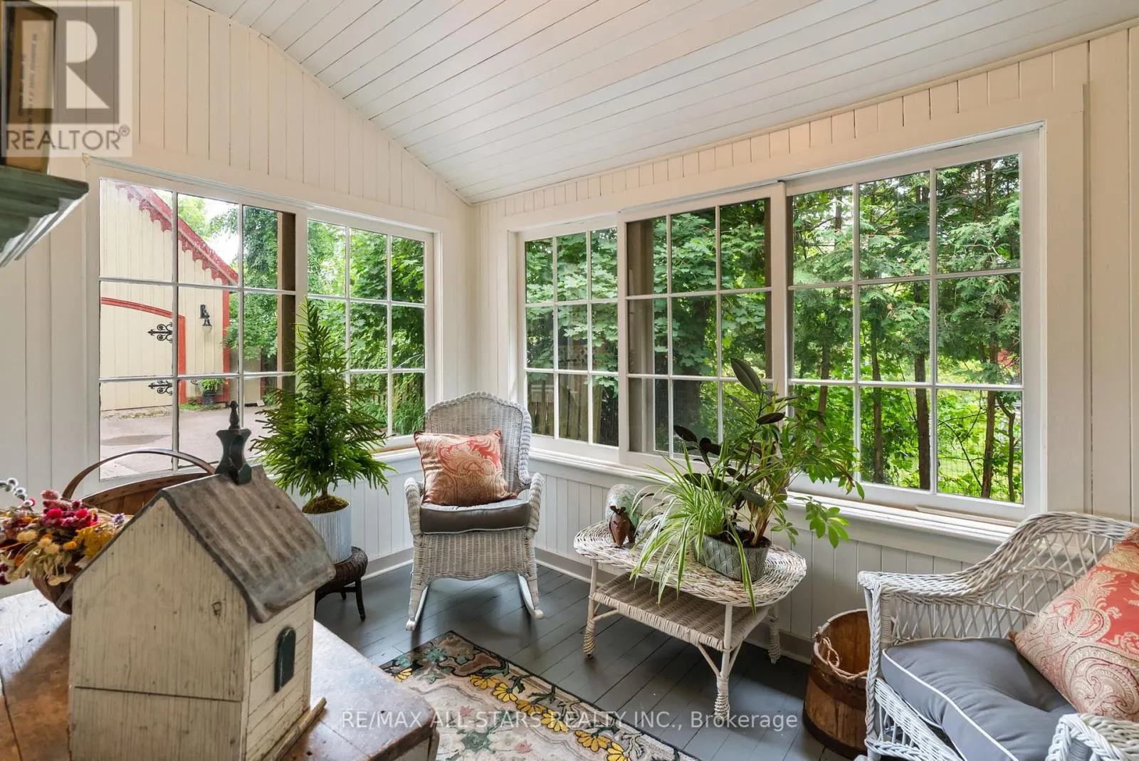 Cross Streets: Brock St E & Third Ave S. ** Directions: Brock St E just East of Third Ave S. Step into timeless charm at 122 Brock St E, a captivating 2,366 SqFt 1.5-storey century home steeped in Uxbridge history and lovingly maintained over the decades. Known as the 'Robert Mooney Residence' (c.1874), this one-of-a-kind property offers rich character, craftsmanship, and a lifestyle full of warmth and authenticity. Set on a mature, treed lot in the heart of town, the home welcomes you with a lovely front verandah, and upper balcony restored in 2022 with custom millwork, plus ornate period-style wrought iron fencing and gate which compliments the home's heritage aesthetic. A standout feature is the Garage (2013) approx. 40' x 24' with 19' cathedral ceilings, designed to compliment the period of the home with reclaimed doors, stained glass windows, and vintage hardware - it also showcases soffit lighting, a propane heater, 60-amp panel, 3-pc bath rough-in; An incredibly versatile space for a workshop, studio or storage area for cars or a boat. Inside the home you'll find the open-concept kitchen featuring a breakfast area and KitchenAid stainless steel appliances (2019), flowing into a charming sunroom ideal for your morning coffee. Formal living and dining rooms offer large windows and original trim, preserving the home's historic soul. Upstairs, the spacious primary bedroom features a 3-piece ensuite and two closets, including a walk-in. Two additional bedrooms plus a 4-piece bath with clawfoot tub, double sinks, and california shutters. Upper-level laundry includes washer, gas dryer, and laundry sink. The backyard is a quiet retreat with a very private back deck and covered side porch with access to exterior storage, perfect for tools or seasonal décor. This home is perfect for buyers who appreciate heritage, quality, and character - all just steps to shops, dining, and trails! (id:27476)