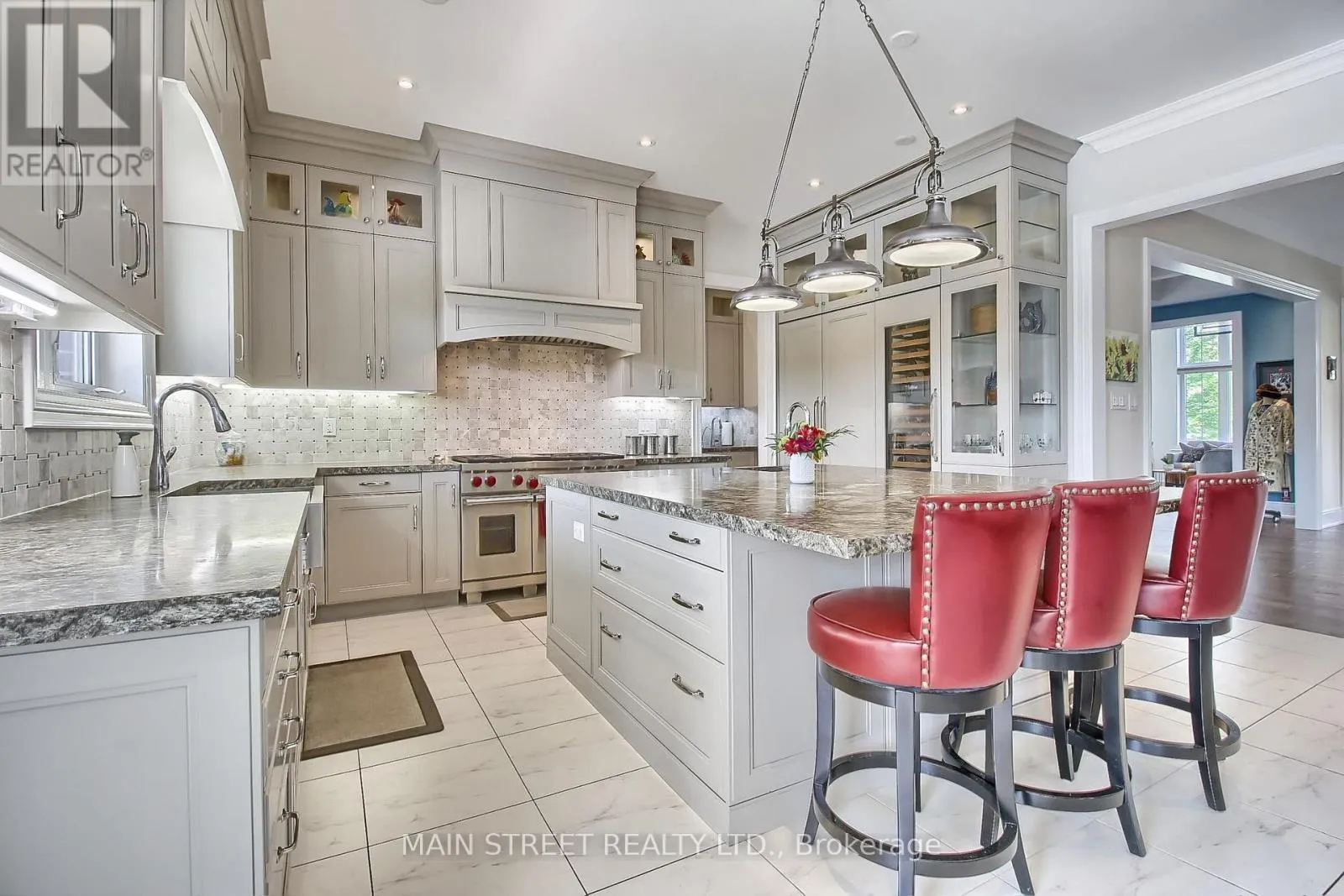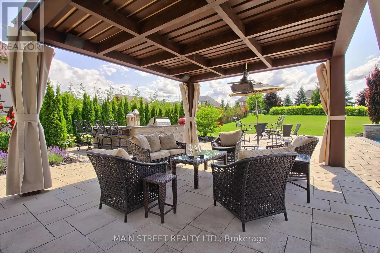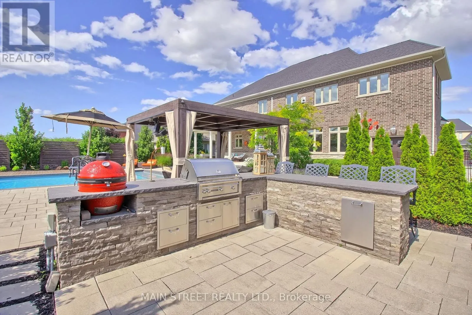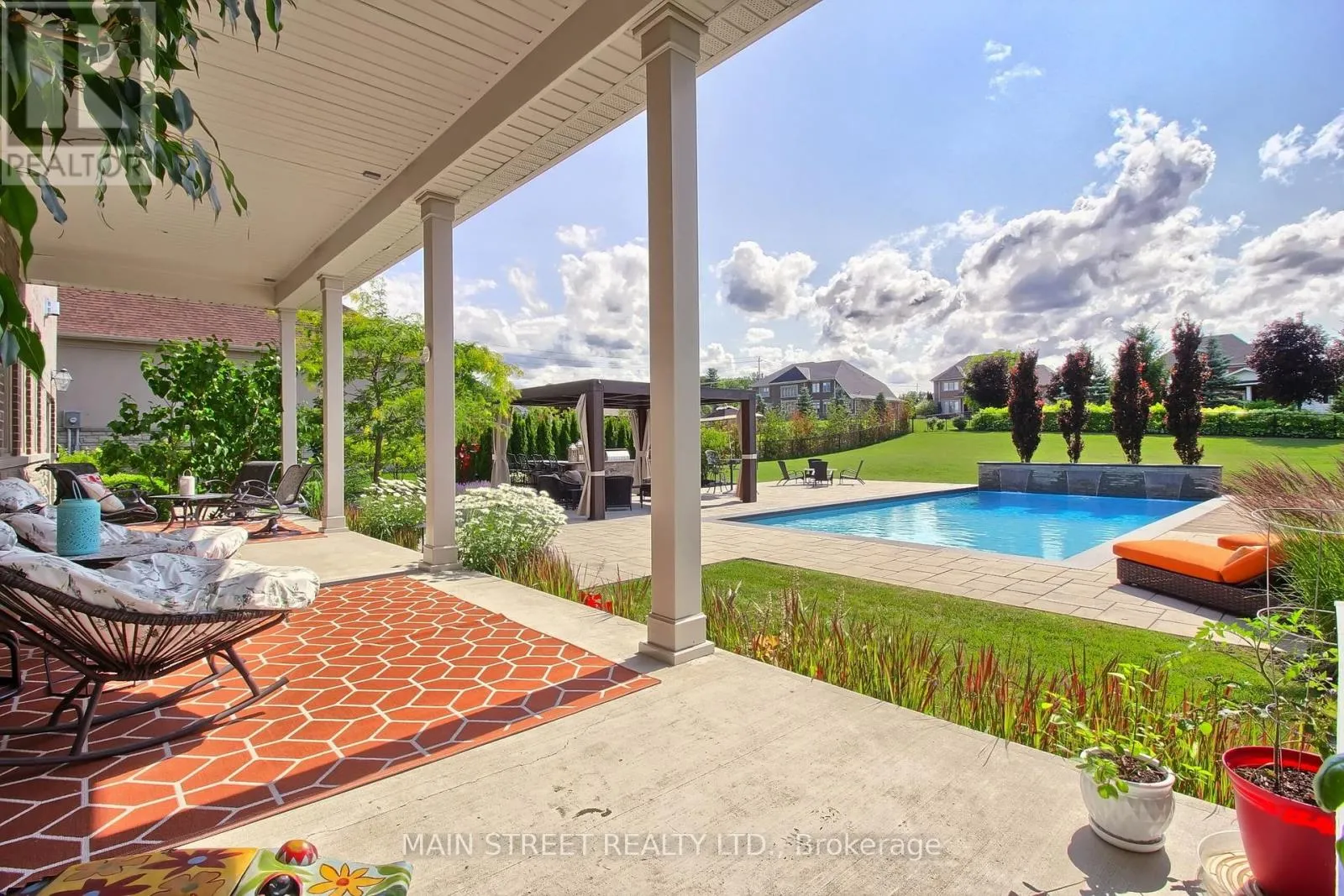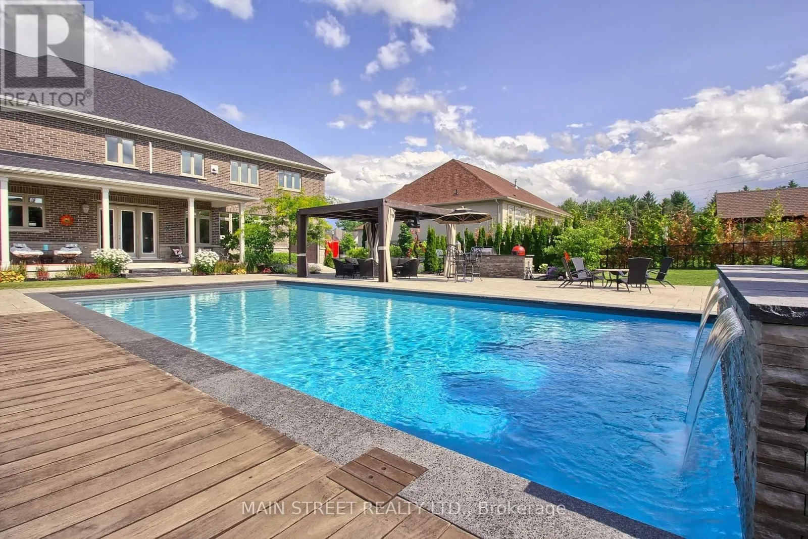 Cross Streets: Brock Rd. & Goodwood Rd. ** Directions: Enter through Brock Road Security Gatehouse. Welcome to this Spectacular Executive Residence nestled within the Exclusive Gated Golf Community of Wyndance Estates. At just under 5000 sf, this Luxurious Home epitomizes Upscale Living, showcasing extensive Features and Upgrades that truly set it apart. You will be captivated by the Grandeur of the Soaring 10 ft Ceilings that flow throughout the Main Fl & 2nd Fl Hall and 9 ft Ceilings in the Bedrooms and Basement. The Dining and Family Rms are adorned with Beautiful Waffle Ceilings, while the Living Rm boasts a breathtaking 15 ft Vaulted Ceiling, enhancing the bright and open atmosphere of the Main Floor. The heart of this home is the Fabulous Kitchen, designed for Culinary Enthusiasts and Entertainers alike. It features Luxurious Leathered Granite Counters, high-end Restaurant-Grade Appliances, a massive Island with a Breakfast Bar, and a Convenient Servery offering ample additional Storage, including a secondary Walk-in Refrigerator. The secluded Primary Retreat offers a Private Sanctuary and features a separate Sitting Area with a 2-sided Gas F/P, a large Dressing Rm/Closet with Custom Built-ins, and an Elegant Ensuite that delivers a Spa-like Experience. All other Bedrooms provide Comfort and Privacy, each with its own Ensuite Bath and W/I Closet. Stepping Outside, youll find a Sun-drenched Backyard with a massive 40 x 20 Saltwater Pool, feat an Illuminated Triple Waterfall and Tanning Deck. The outdoor Stone Kitchen, complete with a B/I Gas BBQ and Charcoal Smoker, offers the Perfect Setting for al fresco Dining. To top it off, a large Pergola equipped with Speakers and Lighting utilizes a B/I Gas Heater to extend the Outdoor Season. This Home doesn't just offer Exceptional Living Spaces, it also includes Exclusive Lifestyle Perks. As an Owner, you will enjoy the Privilege of a Deeded Platinum ClubLink Membership, granting you access to Exclusive Golf Opportunities. This isn't just an Amazing Home; it's an Extraordinary Lifestyle waiting to be Embraced! (id:27476)