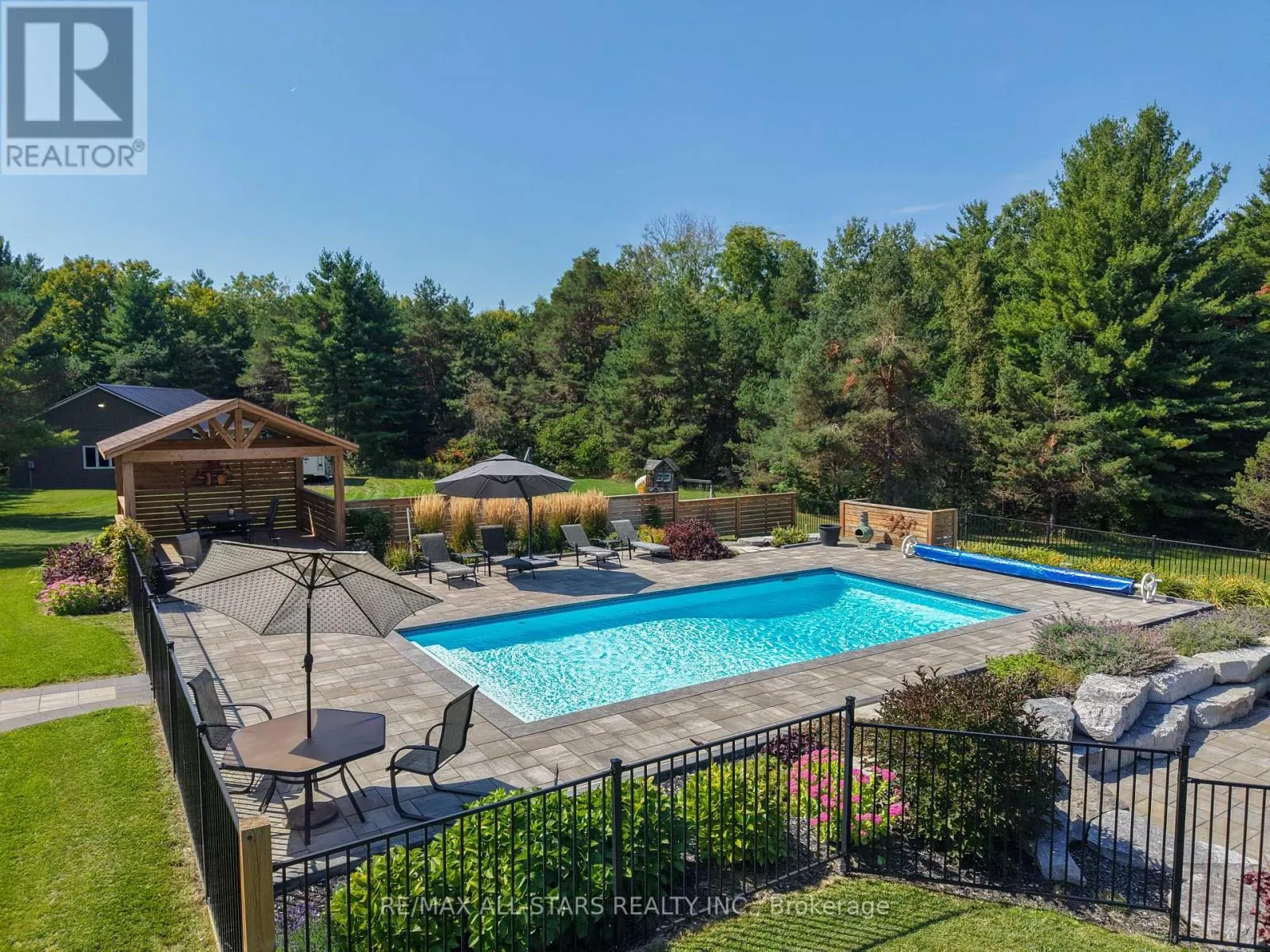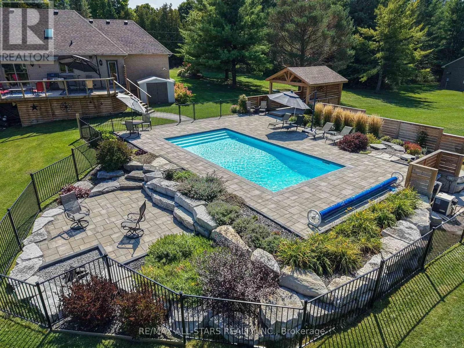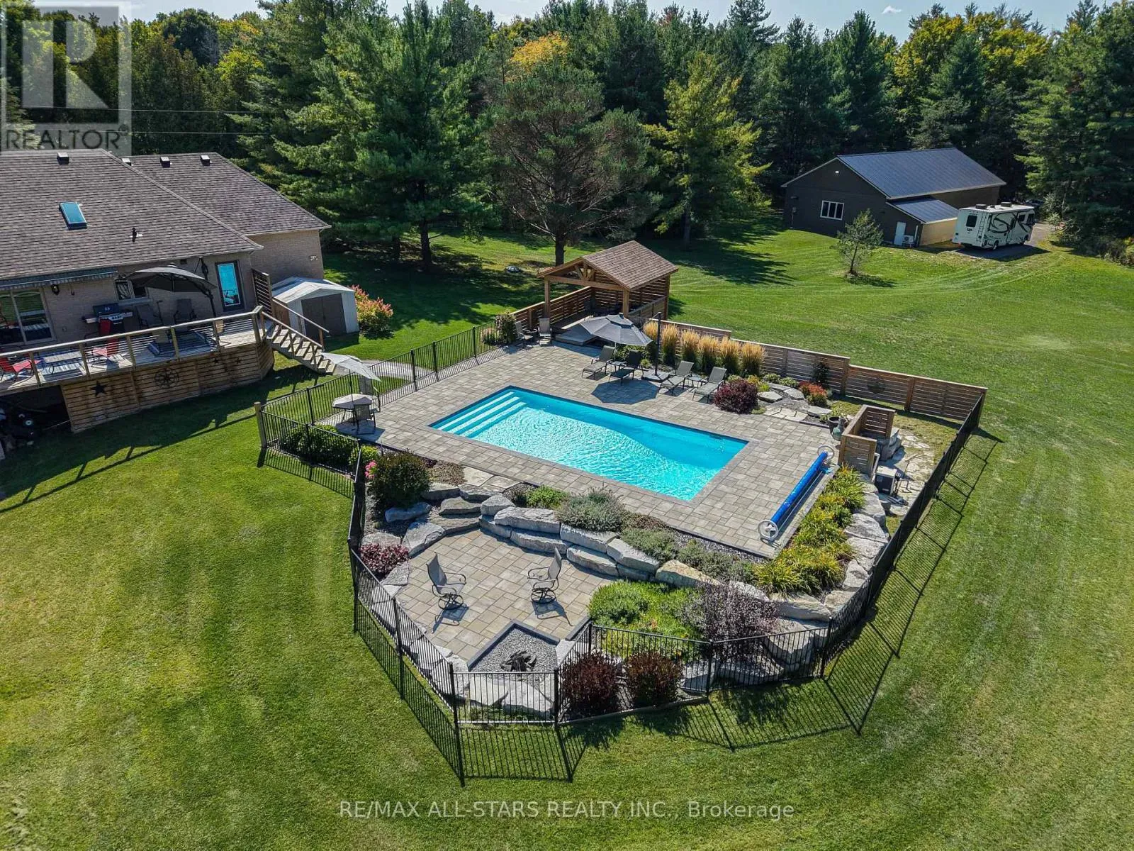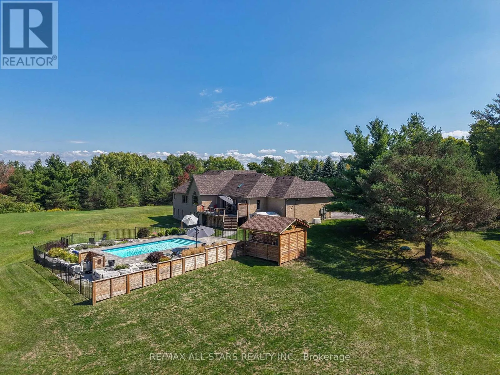 Cross Streets: Mount Albert Rd/ York Durham. ** Directions: Mount Albert Rd and York Durham. Magnificent 50 Acre Corner Parcel 4 Minutes East of Mount Albert. Spectacular Private Hilltop Setting With 2 Gated Driveways. This Beautifully Appointed & Spacious Bungalow Is Impressively & Extensively Renovated. The Home Overlooks A Private, Resort Inspired Pool/Patio (2020) With A Backdrop Of Sweeping Lawn Areas & Forest With Stream. Quality Constructed And Featuring An Open Concept Light Filled Interior With Lofty Ceilings, Wonderful Views and Many Custom Features Like The Luxurious Primary Ensuite. The Spacious Front Entry Has An Inviting Open Staircase To Well Executed Lower Level Suited To Separate Quarters Boasting A Bathroom, Picture Windows, Separate Access To The Garage Plus A Rear Walk-Out To Ground Level. Turn-Key Condition Inside And Out. Park Your R/V (With Full Power & Sewer Hookup) In The Industrial Style Shop Which Is A Car Enthusiast's /Trade Person's Dream! Lots Of Scope With A Rare & Incredible Package Such As This!! 400 Amp Hydro Service, Shop 64'x34'(14'Ceiling) With Separate Gated Driveway and Regrind Asphalt Parking Area, Office , Washroom, InsulatedPropane Heat. 20x35 Shelter With Concrete Floor, Updated Insulation, Heating Systems, Kitchen, Baths. (id:27476)
