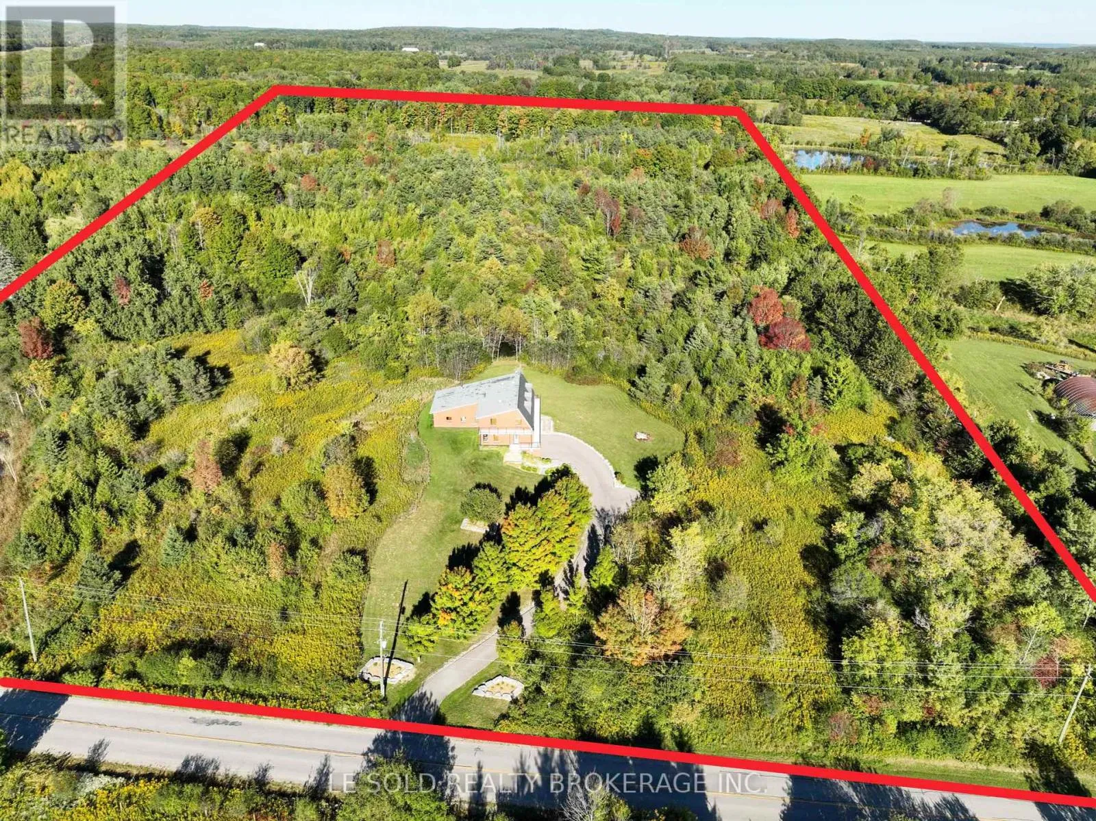 Concession Rd 4 / Webb Rd Seldom seen and available for sale, less than 10 minutes east of Stouffville. 6 Bedrooms, 5 Bathrooms, 2 Offices, 4200+ sq/ft, sitting on 25 acres of rolling mixed bush terrain and ponds. I beam and concrete structure, poured foundation basement, with above-grade concrete block walls to the roof, and brick exterior. Steel girder/steel pan/concrete floors above grade, steel trusses and roof, steel stud walls, armoured coated wiring with 400 amp service. Wrap-around porches are concrete hollow core slabs with maintenance-free anodized aluminum railing. An oversized 2 car heated garage is in the walkout basement that has direct access to a large workshop and office which sets itself up for a home-based business and is ideal for contractors/trades. Multi-generational family living is an option. Located across the road from Coppinwood Golf Club. Less than 10 minutes East of Stouffville, Old Elm Go Station, Hwy 407, numerous conservation hiking trails, and within 15 minutes, there are 14 Private/Public Golf Courses and skiing. (id:27476)