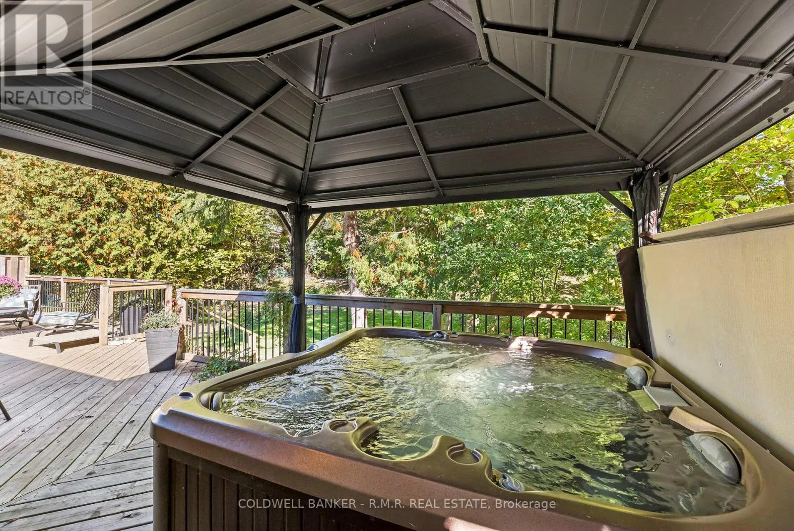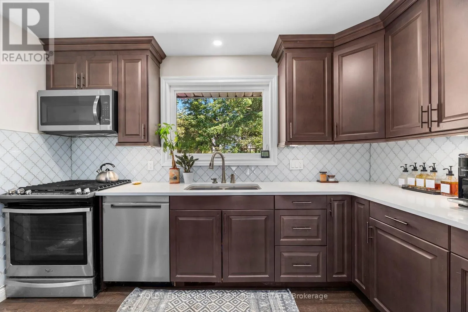 Cross Streets: Main Street N and Toronto Street N. ** Directions: North on Main St from Brock St to intersection of Main St N and Toronto St. Welcome to 77 Main St N, Uxbridge, a beautifully renovated raised solid brick bungalow set on a generous 66 ft x 165 ft lot in a prime location. Professionally updated between 2017 and 2019, this move-in ready home blends modern elegance with everyday comfort. The open-concept living and dining area features pot lights, a large window, and a walkout to the deck, perfect for entertaining. At the heart of the home, the gourmet kitchen impresses with maple cabinetry, quartz countertops, a sleek glass tile backsplash, and stainless steel appliances. The main level offers three bedrooms, including a primary with direct access to the backyard, along with a spa-like bathroom complete with a glass-enclosed shower and separate soaking tub.The finished lower level expands the living space and is ideal for a nanny or in-law suite, offering an above-grade window, fireplace, second kitchen, bonus room with walk-in closet, full bathroom, and laundry room with garage access. Extensive upgrades include newer windows, luxury vinyl plank flooring, interior doors, trim, lighting, fireplace, entrance system, garage door, HVAC and water softener. Step outside to enjoy a private backyard oasis featuring a deck, hot tub and gazebo, a perfect setting for gatherings or quiet evenings. With a paved driveway, inviting front porch, and armor stone landscaping, this home delivers fantastic curb appeal. Conveniently located within walking distance to downtown Uxbridges shops, restaurants, recreation, and scenic trails, and offering easy access to the 407 (20 minutes) and 401 (30 minutes), this property is an ideal blend of style, comfort, and location. (id:27476)