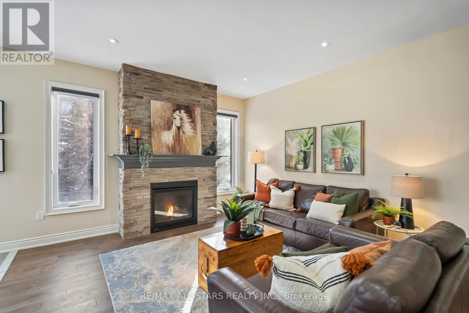 Main Street and Oakside Drive Curb appeal is the first thing you notice with this beautiful 4 bedroom bungaloft on prestigious Os James Hunt Court. With rich red brick and a neutral stone facade, interlock walkway and natural stone steps you are welcomed with immediate warmth. Entering the home you'll appreciate the open concept layout across the back of the house including the living room with gas fireplace featuring cultured stone veneer and framed within 2 large windows, the spacious kitchen with stainless steel appliances and quartz countertops and the dining area which walks out to the deck through the patio slider. The principal suite includes a 5 pc ensuite with built in soaker tub and glass shower enclosure and a spacious walk-in closet with wardrobe. The 2nd Bedroom overlooks the front with a gorgeous arched window and has semi-ensuite access to the 4pc main bathroom. Laundry is conveniently located on the main floor while two additional closets provide ample storage for linens and jackets near the foyer. The upper level features two additional large bedrooms with closet organizers and a third full bathroom. The lower level is unfinished, you can visualize the potential with the wide open space and above-grade windows, and includes a rough-in for an additional bathroom. The landscaped backyard features a raised composite deck (permitted 2017 per MPAC) and interlock patio seating area which continues to wrap around to the gate and walkway to the front of the house. **EXTRAS** POTL $277.57 includes street snow removal and garbage/recycle/compost waste removal - full inclusions to be confirmed with the Status Certificate. (id:27476)
