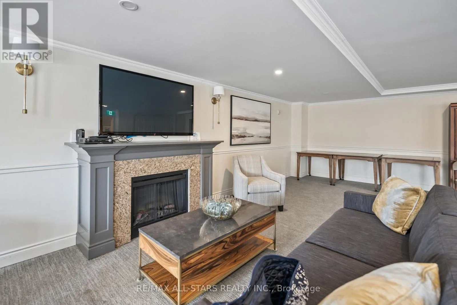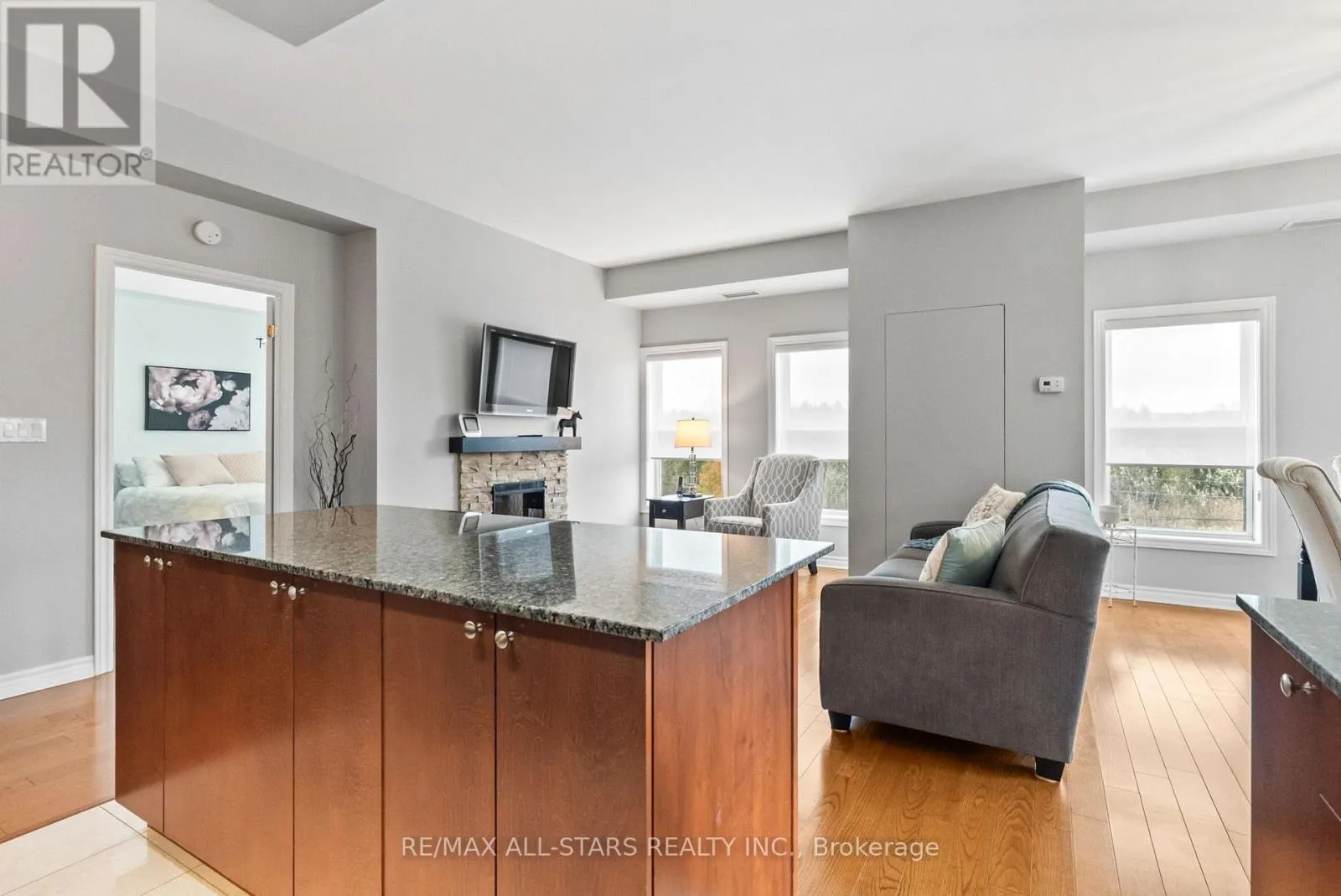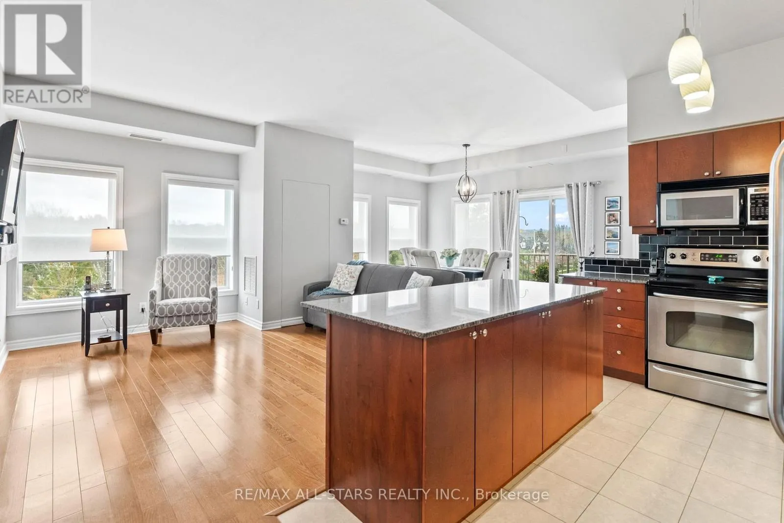 Cross Streets: Toronto St and Campbell Dr. ** Directions: Toronto St to Campbell Drive and Left onto James Hill Crt. Visitor Parking is near the front of the building and to the North side. Welcome to Bridgewater Condominiums! This beautifully maintained 3rd-floor corner unit offers 1,131 sq. ft. (per MPAC) of stylish, comfortable living with 9' ceilings, two bedrooms, and two full baths. Enjoy the convenience of two deeded underground storage lockers and a premium, wide parking space with walls on each side. Condo fees of $767.95 include water (including hot water) and common elements.Step inside the Unit to a spacious foyer featuring a stylish sliding door for pantry storage and a front hall closet. The warm, inviting kitchen boasts granite countertops, a black subway tile backsplash, and stainless steel appliances (Dishwasher 2022). The bright eat-in dining area and cozy reading nook are filled with natural light from large windows and a patio slider leading to your private balcony. The open living area features an electric fireplace, perfect for relaxing or entertaining.The large primary suite easily accommodates a king-sized bed and includes two closets, with organizers, and a 4-piece ensuite with a walk-in shower and tub. The second bedroom offers a generous closet, while the updated second full bath (2021) includes a Bath Fitter walk-in shower and in-suite laundry with washer and dryer (2021). Custom roller shades (2020) and abundant storage throughout complete this move-in-ready condo. Bridgewater residents enjoy a lively community with social gatherings and amenities including a grand lobby, secure entrance, party/recreation room with kitchen, car wash and workshop areas, garbage chute on each floor, visitor parking, and a gazebo with BBQ. A rare find offering comfort, community, and convenience-all in one exceptional package! See Features attached to Listing! Rare 2 Storage Units deeded with unit. (id:27476)