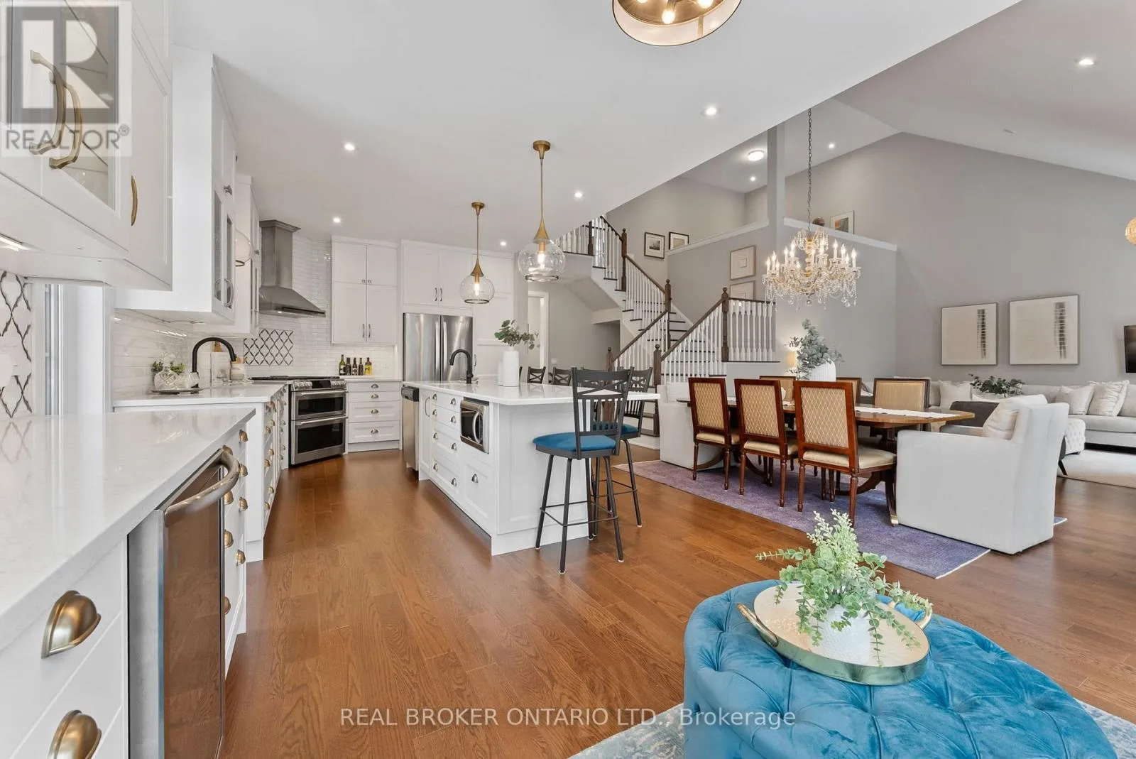 Elgin Park Dr & Toronto St S Whether you're downsizing from a larger property that's become too much to maintain, or simply searching for the perfect home in one of Uxbridge's best locations - this is the one. Welcome to Winding Trail, a highly sought-after enclave in the heart of Uxbridge where luxury and low-maintenance living meet. From the moment you step inside, you'll be impressed by the sense of space, natural light, and soaring 20-foot cathedral ceilings that create an immediate WOW factor. This home is deceiving - not only in size, but in the exceptional finishes, craftsmanship, and thoughtful design touches throughout. Completely updated and customized, this end-unit bungalow townhome is truly one-of-a-kind. The owners thoughtfully modified the original builder floorplans to create a layout unlike anything else on the street - combining elegance, function, and comfort in perfect balance. With over 3,000 sq. ft. of finished living space, this home features 9-foot ceilings, hardwood throughout, and a fully custom kitchen with a large island, coffee bar, and sitting area overlooking the ravine. The main floor primary bedroom (currently used as a sitting room/office) allows for complete main floor living. This pairs beautifully with a mudroom and main floor laundry offering direct access to the two-car garage. An incredible open loft area separates the two floors making the perfect office or sitting area. Upstairs, discover two generous bedrooms, including a second primary suite with a five-piece ensuite, and another bedroom with an office nook and three-piece bath. The fully finished walkout basement extends the living space with full-size windows and doors, a large recreation room with dry bar and games area, an additional bedroom with full-size windows and closet, a three-piece bath, and ample storage. Backing onto a peaceful ravine in the Trail Capital of Canada, and just steps from Wooden Sticks Golf Course, this property offers an unmatched blend of luxury, privacy, and convenience. (id:27476)