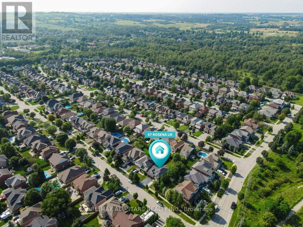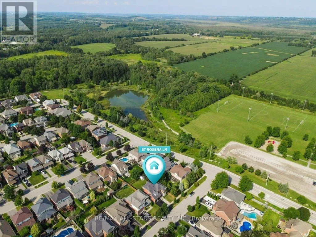 Cross Streets: Rosena and Herrema Blvd. ** Directions: North on Herrema Blvd, Left on Rosena. Welcome to 67 Rosena Lane, a beautifully updated 2,600 sq. ft. 4-bedroom, 3-bathroom home in the sought-after Barton Farm community. With its generous layout and thoughtful upgrades, this home is perfectly suited for a large or growing family. The open-concept main floor boasts 9-ft ceilings, a spacious living and dining area, and a stylishly upgraded kitchen with new quartz countertops, sink, backsplash, and refreshed finishes. The kitchen flows seamlessly into the inviting family room with a gas fireplace, ideal for gatherings and entertaining. Upstairs, you'll find brand-new hardwood throughout, leading to a generous primary suite with a completely renovated spa-like 5-piece ensuite featuring a separate shower, soaking tub, and his-and-hers closets. Three additional bedrooms provide plenty of space for family or guests, all complemented by the home's fresh finishes. Additional updates include a fully remodeled main-floor powder room, refinished staircase with new railings and balusters, and a refreshed primary bedroom with smooth ceilings, updated lighting, and fresh paint. Smart home technology adds convenience for lighting and thermostat control. The unfinished basement, complete with a bathroom rough-in, offers an incredible opportunity to expand your living space and tailor it to your family's needs, whether as a recreation area, home gym, or additional bedrooms. Outside, enjoy a beautifully landscaped private backyard with a patio ideal for summer relaxation. A 2-car garage and extended driveway provide ample parking. Situated close to scenic walking trails, top-rated schools, parks, and town amenities, this move-in ready home blends modern style, comfort, and an unbeatable location. (id:27476)