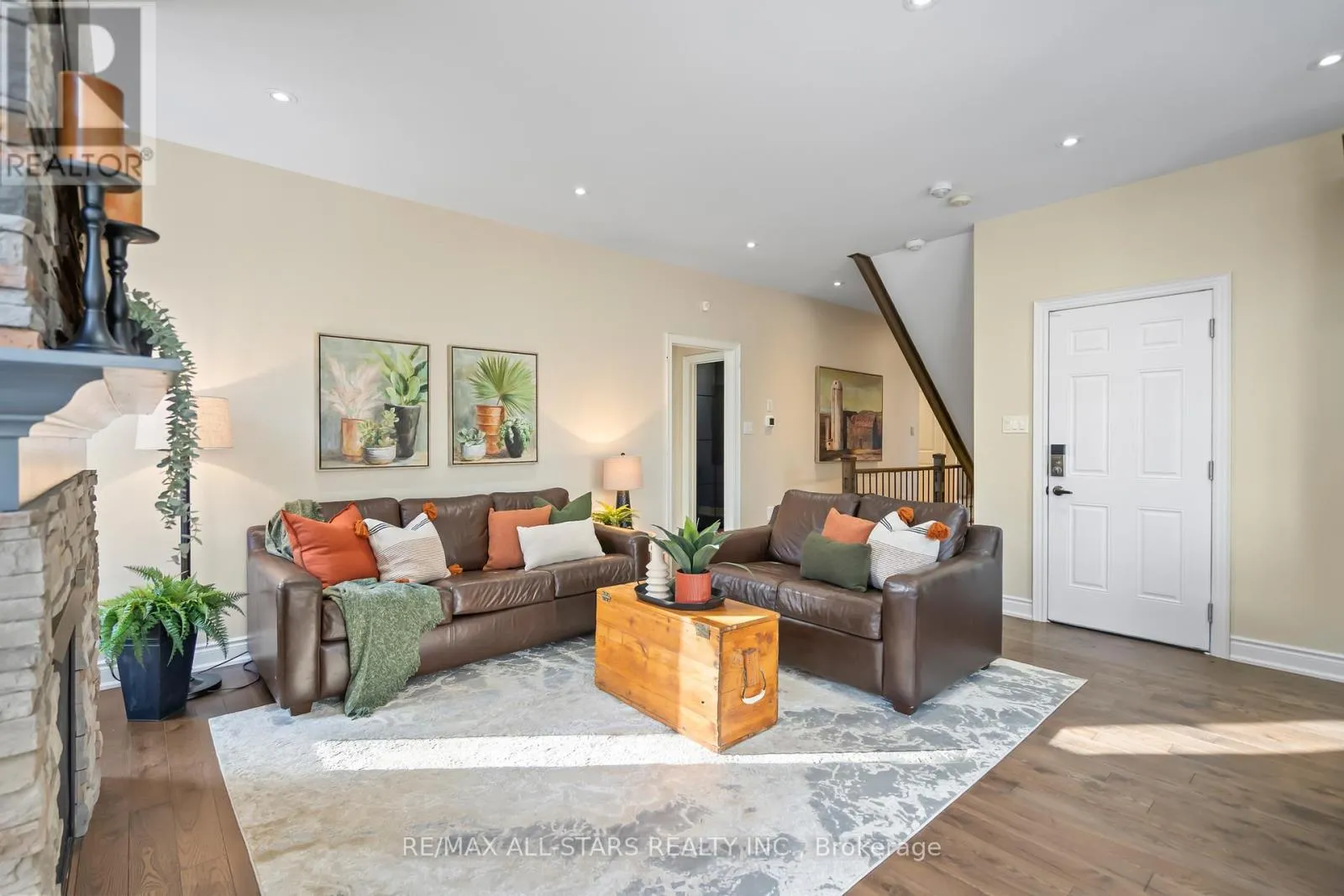 Main Street and Oakside Drive Curb appeal is the first thing you notice with this beautiful 4 bedroom bungaloft on prestigious Os James Hunt Court. With rich red brick and a neutral stone facade, interlock walkway and natural stone steps you are welcomed with immediate warmth. Entering the home you'll appreciate the open concept layout across the back of the house including the living room with gas fireplace featuring cultured stone veneer and framed within 2 large windows, the spacious kitchen with stainless steel appliances and quartz countertops and the dining area which walks out to the deck through the patio slider. The principal suite includes a 5 pc ensuite with built in soaker tub and glass shower enclosure and a spacious walk-in closet with wardrobe. The 2nd Bedroom overlooks the front with a gorgeous arched window and has semi-ensuite access to the 4pc main bathroom. Laundry is conveniently located on the main floor while two additional closets provide ample storage for linens and jackets near the foyer. The upper level features two additional large bedrooms with closet organizers and a third full bathroom. The lower level is unfinished, you can visualize the potential with the wide open space and above-grade windows, and includes a rough-in for an additional bathroom. The landscaped backyard features a raised composite deck (permitted 2017 per MPAC) and interlock patio seating area which continues to wrap around to the gate and walkway to the front of the house. **EXTRAS** POTL $277.57 includes street snow removal and garbage/recycle/compost waste removal - full inclusions to be confirmed with the Status Certificate. (id:27476)