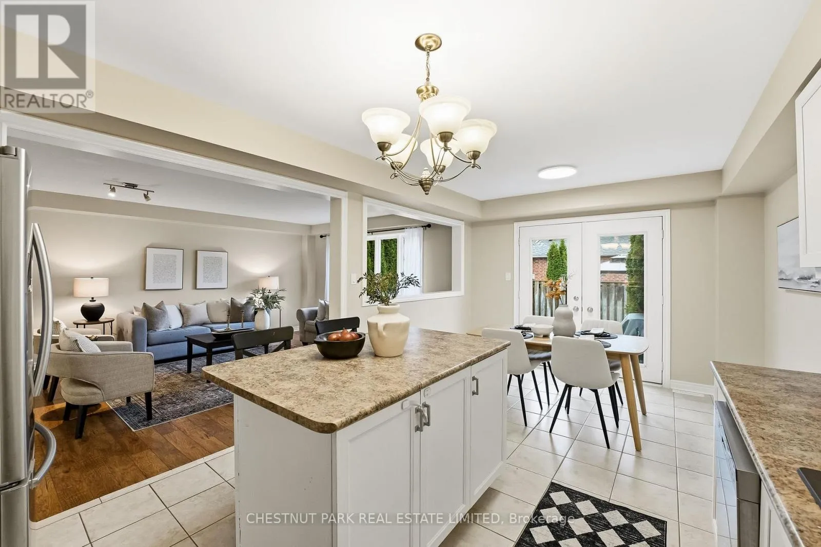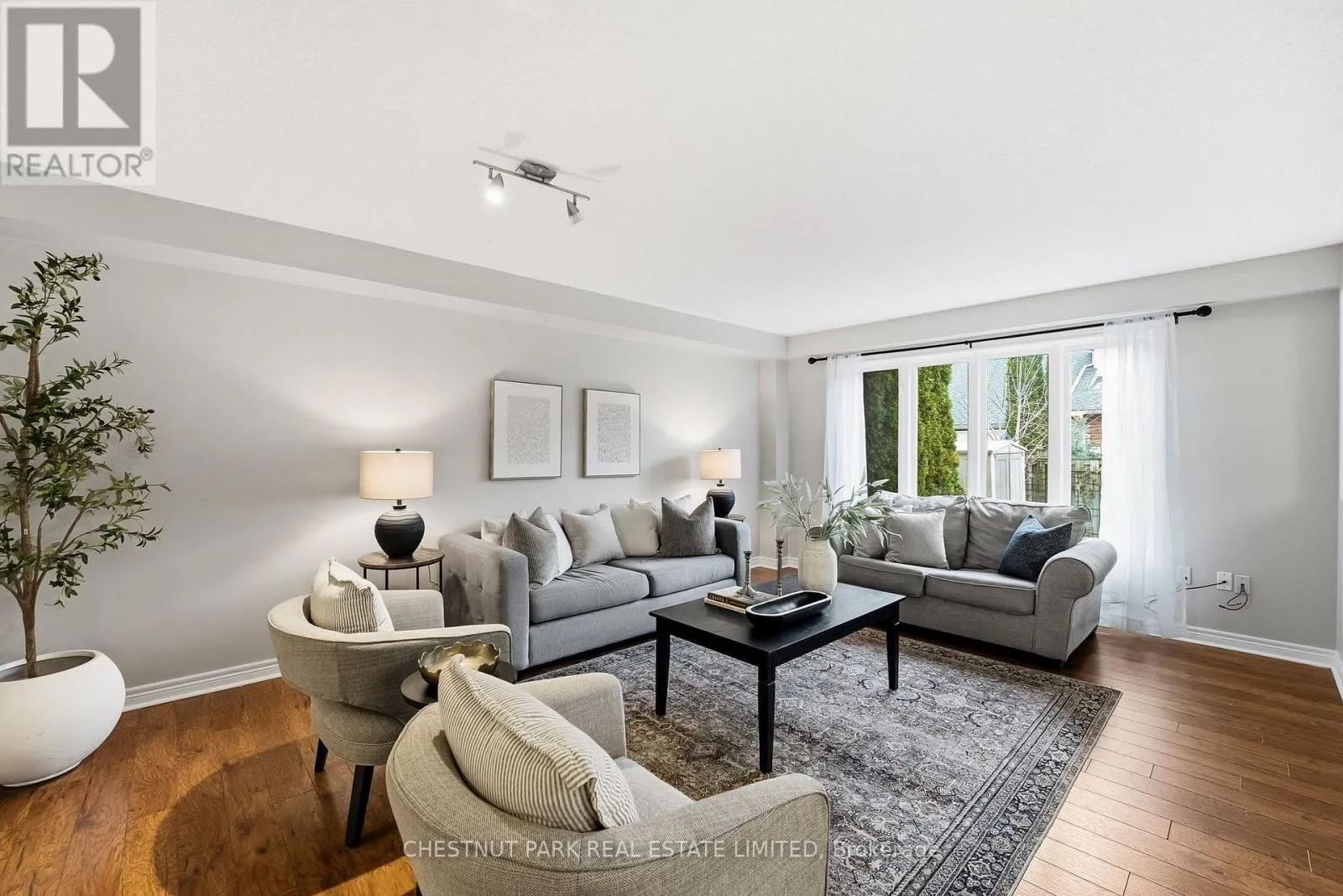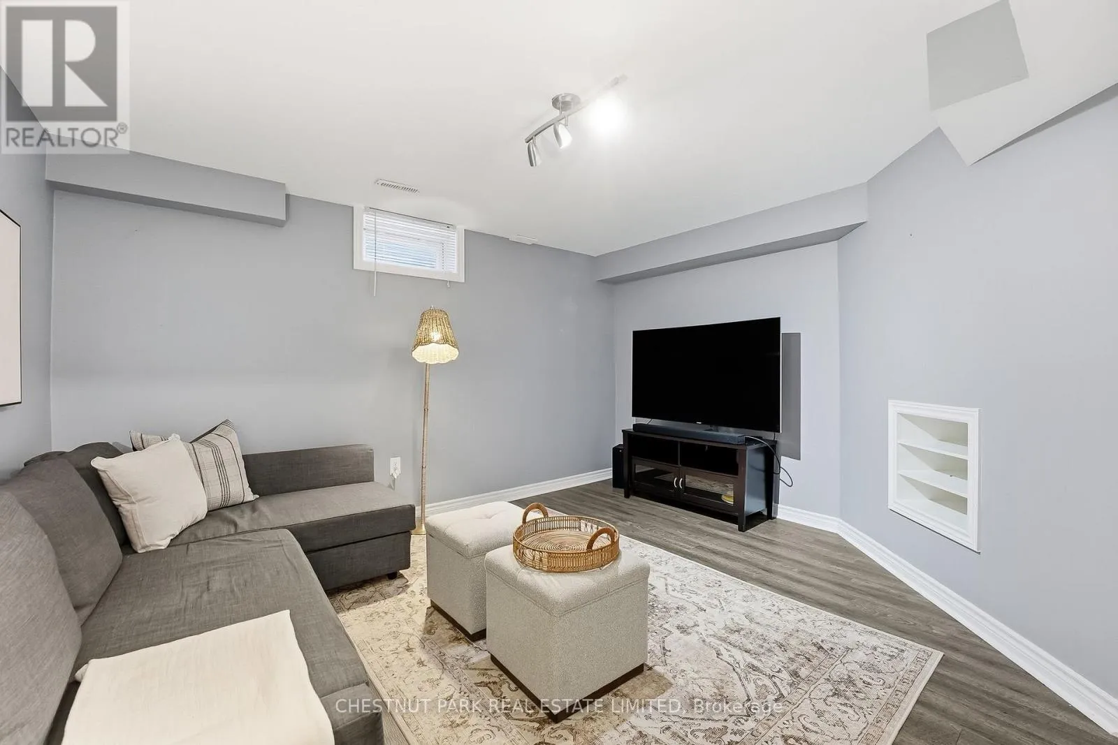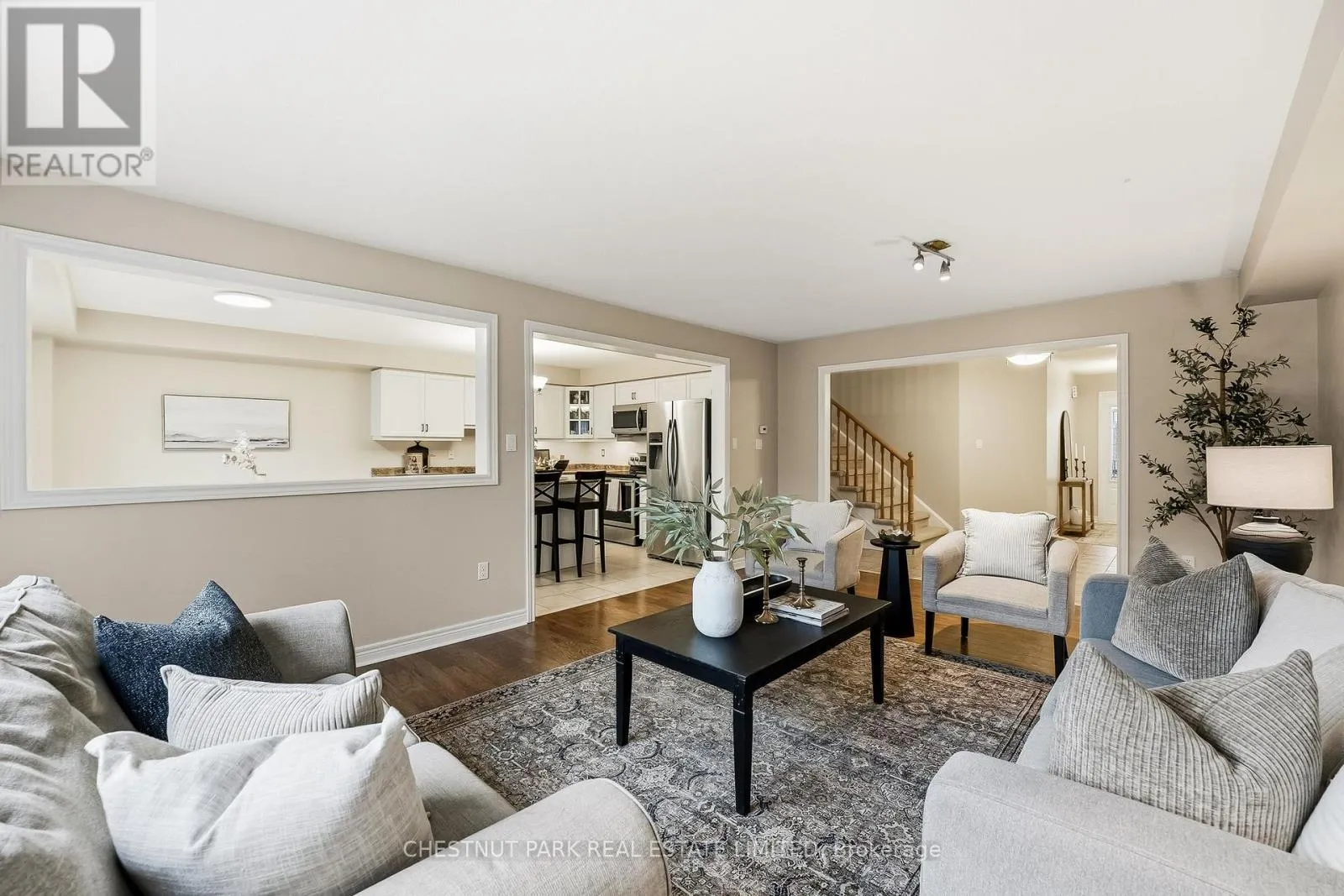 Cross Streets: Oakside Dr & Apple Tree Cres. ** Directions: North on Centre St, East on Oakside, Left on Apple Tree. Bright 3-Bed, 3-Bath Freehold Townhome with Nearly 2,000 Sq. Ft. + Finished Basement.Thoughtfully designed and filled with natural light, this home stands out with its rare second-level family room-a feature seldom found in this category. This 250 sq. ft. bonus space expands the layout in a meaningful way, offering exceptional flexibility as a media room, playroom, home office, or additional lounge-space that growing families rarely find in a townhome. The main floor features an open-concept layout with a generous living area and an updated kitchen complete with stainless steel appliances, a centre island with breakfast bar, and a walkout to the fully fenced backyard. The south-facing patio, with a direct BBQ gas line, makes outdoor dining effortless. Upstairs, the primary bedroom offers his-and-hers double closets, while second-floor laundry adds everyday convenience. Laminate flooring runs throughout, and interior access to the double-car garage enhances functionality. Additional upgrades include a new AC (2022) and a replaced walkway (2020). With its finished basement, ample storage, and walking-distance access to Maple Bridge Trail, this home delivers comfort, flexibility, and modern living in a connected, family-friendly community. (id:27476)