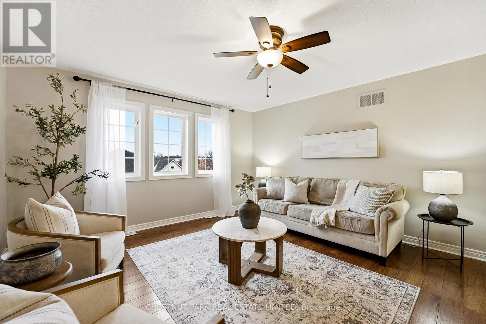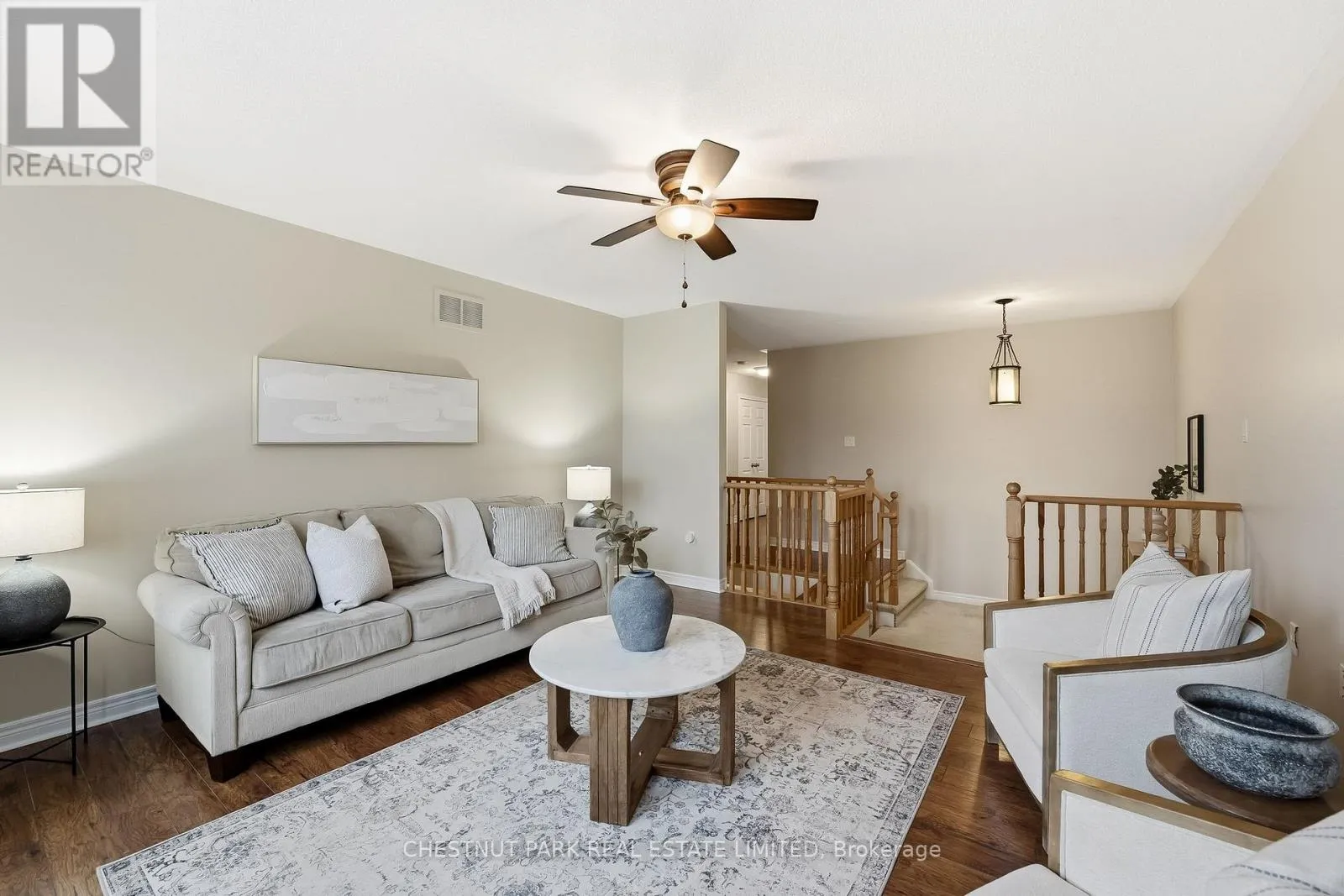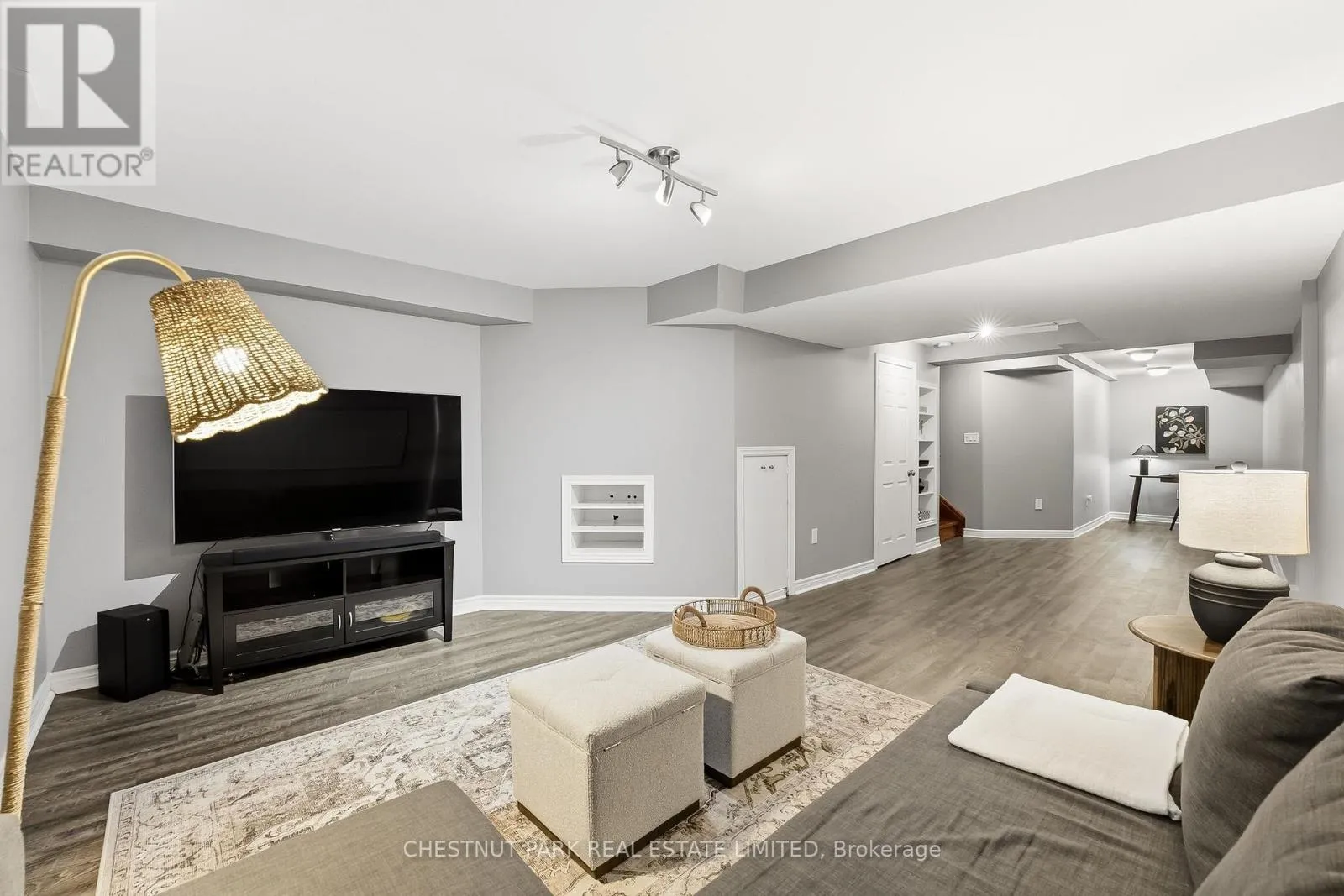 Cross Streets: Oakside Dr & Apple Tree Cres. ** Directions: North on Centre St, East on Oakside, Left on Apple Tree. Bright 3-Bed, 3-Bath Freehold Townhome with Nearly 2,000 Sq. Ft. + Finished Basement.Thoughtfully designed and filled with natural light, this home stands out with its rare second-level family room-a feature seldom found in this category. This 250 sq. ft. bonus space expands the layout in a meaningful way, offering exceptional flexibility as a media room, playroom, home office, or additional lounge-space that growing families rarely find in a townhome. The main floor features an open-concept layout with a generous living area and an updated kitchen complete with stainless steel appliances, a centre island with breakfast bar, and a walkout to the fully fenced backyard. The south-facing patio, with a direct BBQ gas line, makes outdoor dining effortless. Upstairs, the primary bedroom offers his-and-hers double closets, while second-floor laundry adds everyday convenience. Laminate flooring runs throughout, and interior access to the double-car garage enhances functionality. Additional upgrades include a new AC (2022) and a replaced walkway (2020). With its finished basement, ample storage, and walking-distance access to Maple Bridge Trail, this home delivers comfort, flexibility, and modern living in a connected, family-friendly community. (id:27476)