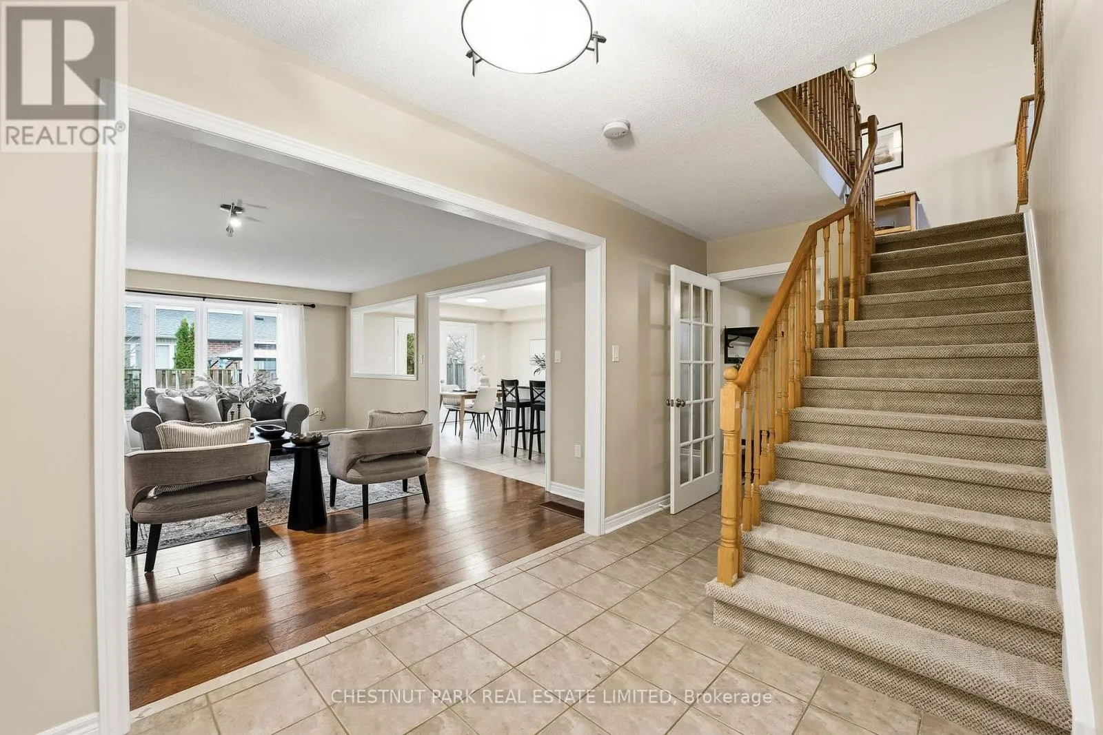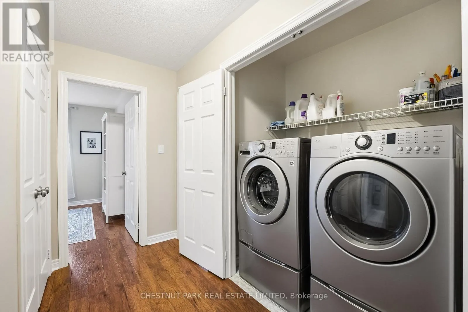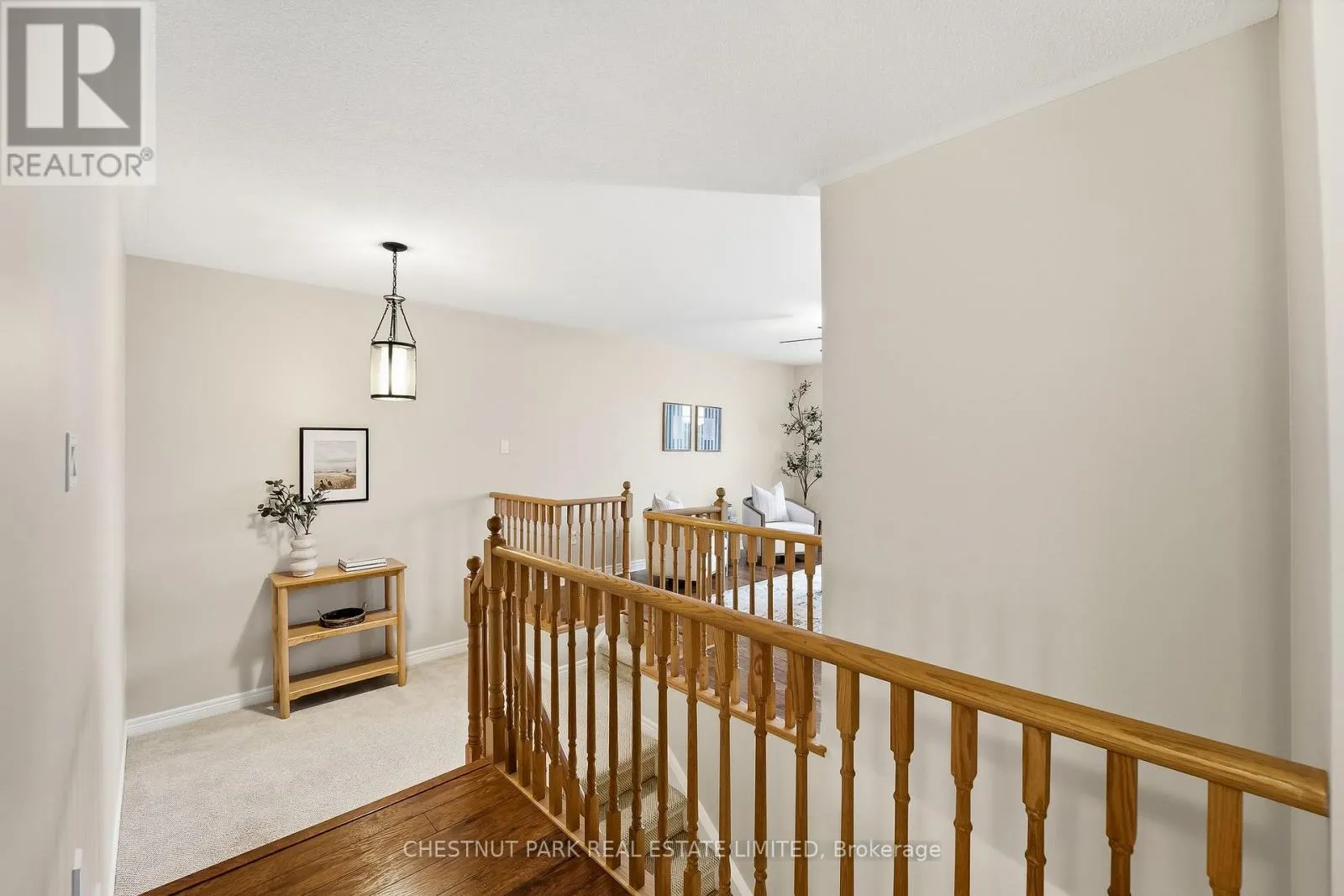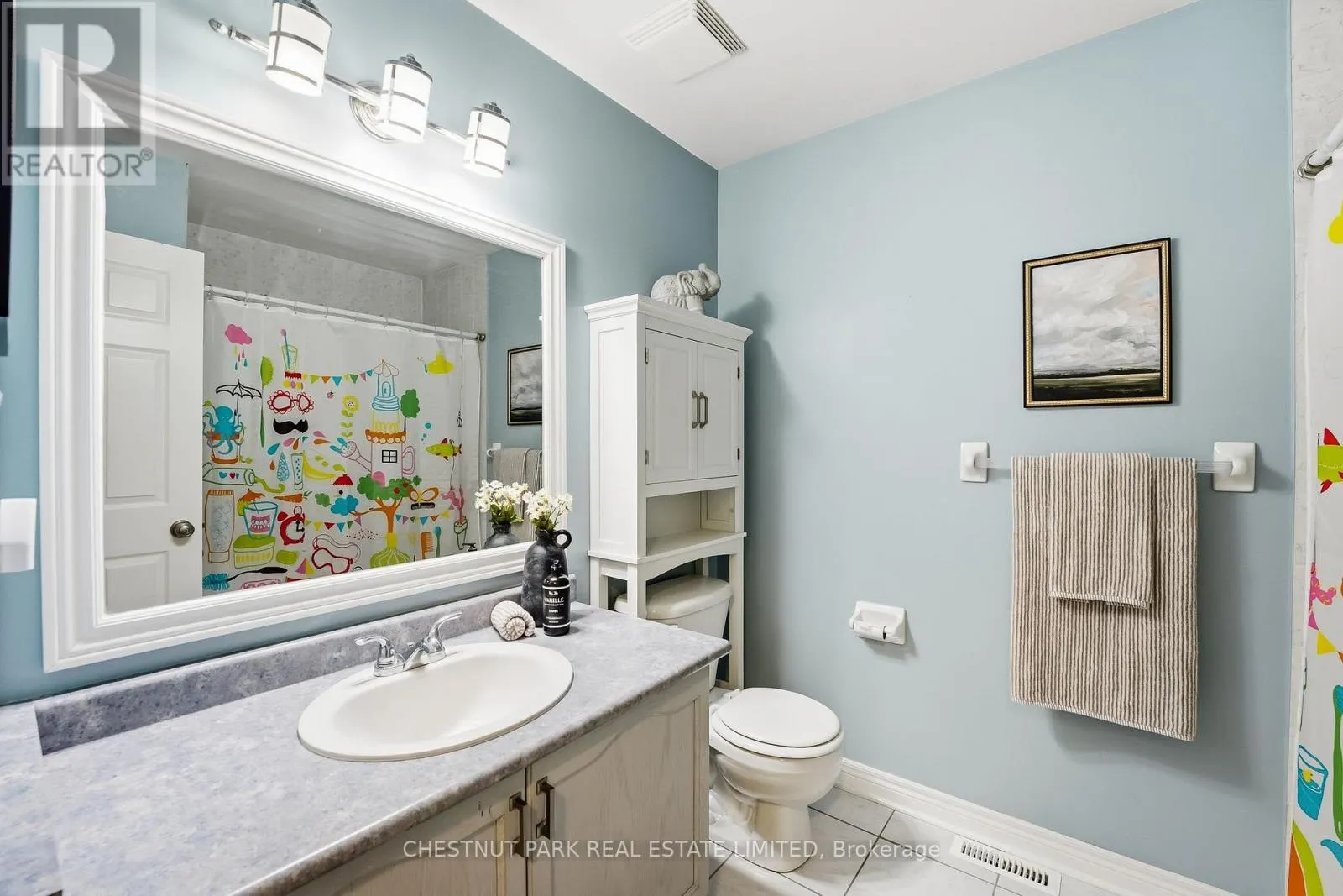 Cross Streets: Oakside Dr & Apple Tree Cres. ** Directions: North on Centre St, East on Oakside, Left on Apple Tree. Bright 3-Bed, 3-Bath Freehold Townhome with Nearly 2,000 Sq. Ft. + Finished Basement.Thoughtfully designed and filled with natural light, this home stands out with its rare second-level family room-a feature seldom found in this category. This 250 sq. ft. bonus space expands the layout in a meaningful way, offering exceptional flexibility as a media room, playroom, home office, or additional lounge-space that growing families rarely find in a townhome. The main floor features an open-concept layout with a generous living area and an updated kitchen complete with stainless steel appliances, a centre island with breakfast bar, and a walkout to the fully fenced backyard. The south-facing patio, with a direct BBQ gas line, makes outdoor dining effortless. Upstairs, the primary bedroom offers his-and-hers double closets, while second-floor laundry adds everyday convenience. Laminate flooring runs throughout, and interior access to the double-car garage enhances functionality. Additional upgrades include a new AC (2022) and a replaced walkway (2020). With its finished basement, ample storage, and walking-distance access to Maple Bridge Trail, this home delivers comfort, flexibility, and modern living in a connected, family-friendly community. (id:27476)