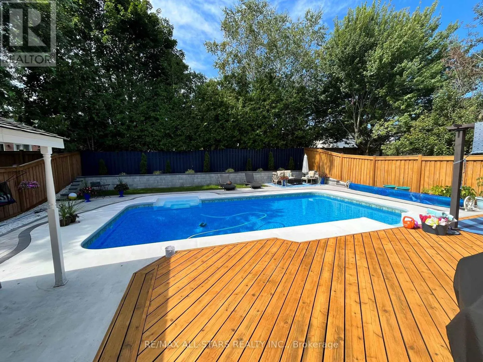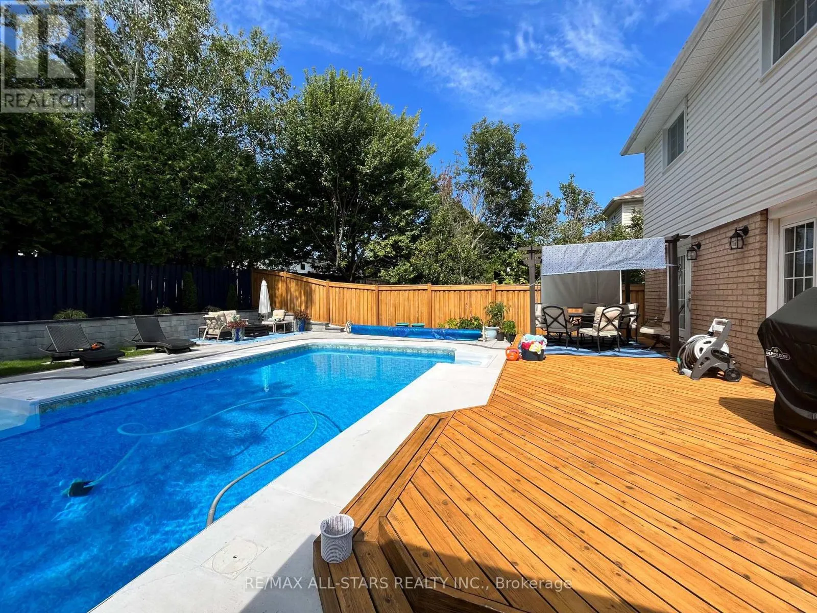 Cross Streets: Brock St. / South Balsam. ** Directions: South Balsam Street to McGuire Cres. Welcome to 43 McGuire Crescent, a beautifully updated 4+1-bedroom, 3+1-bathroom family home in sought-after west Uxbridge. Located on a quiet crescent just a short walk to schools, the arena, splash pad, downtown shopping, and the scenic Butternut Trail, this home offers the perfect blend of community and lifestyle. Impressive curb appeal upgrades include a high-quality black entry door, replaced bay window, rebuilt front porch and Gemstone accent facade lighting. Inside, the bright open-concept layout is ideal for modern family living and entertaining. The stunning all-white kitchen boasts stone countertops, custom backsplash, and a generous size center island overlooking the dining area with wet bar. The space flows seamlessly into the spacious family room with gas fireplace, crown molding, and paneled feature wall. Dual garden doors provide easy access to the deck for effortless indoor-outdoor living. A sun-filled home office off the front entry offers an ideal work-from-home setup. The finished basement adds valuable living space with a large recreation room, games/exercise area, spacious fifth bedroom with wall-to-wall closet, and stylish 3-piece bath. Plumbing is roughed-in for a future wet bar or kitchenette, offering excellent second-suite potential. Step outside to your private sun-drenched west exposure backyard retreat. The 16' x 32' pool with staircase entry and spillover spa anchors this resort-like setting. Recent upgrades include pool liner, gas heater, safety cover, solar blanket, replaced fencing and deck, Permacon retaining wall, landscape lighting and a stone slab patio with river stone border. A charming board-and-batten pool house serves as change room and equipment space. The expansive deck features a natural gas BBQ line and pergola with shades and insect screens for shaded comfort. Move-in ready and designed for both everyday living and summer entertaining, this is a rare opportunity in one of Uxbridge's most desirable neighbourhoods. (id:27476)