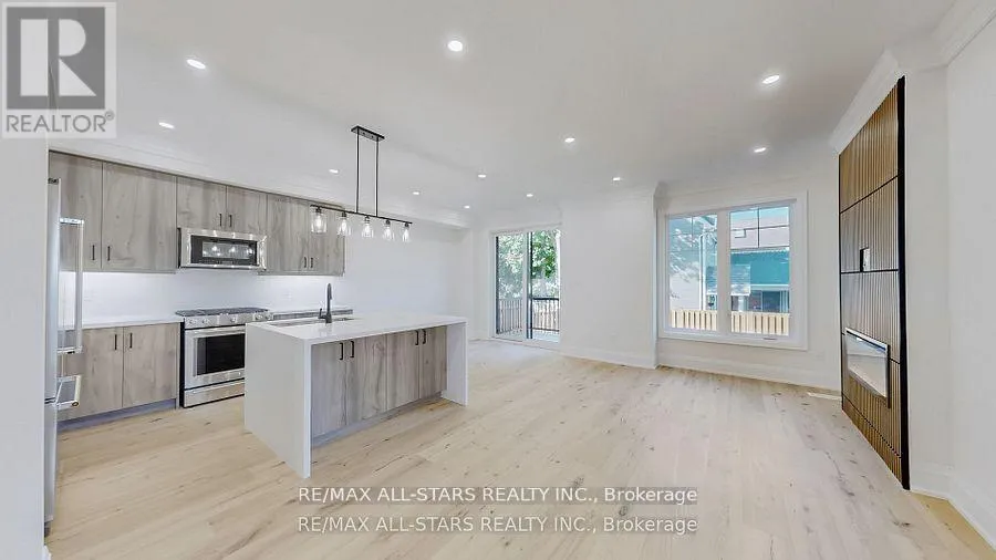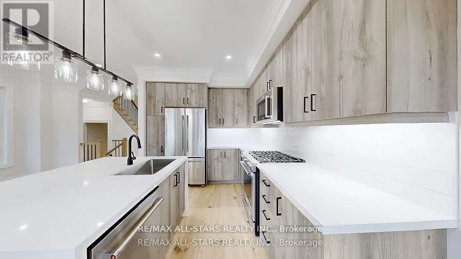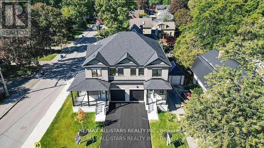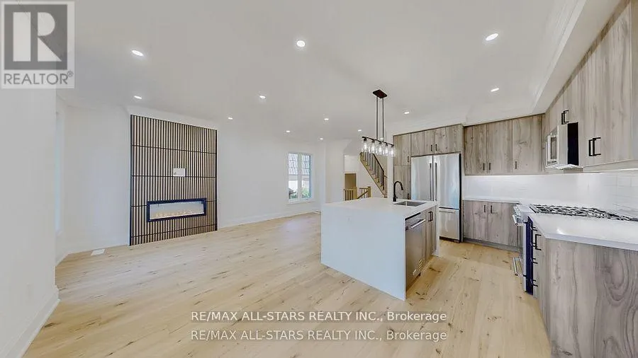 Cross Streets: Brock St, E / Third Ave. S. ** Directions: Brock St, E. to right on Third Ave, N. When only "brand new" will do! This custom-built "freehold" semi by top-ranked Tarion builder Coral Creek Homes offers 2,400 sq ft of thoughtfully designed living space. The fully finished basement features above-grade windows, plush carpet, a spacious rec area, 3-piece bath, and ample storage. The maintenance-free brick and stone exterior is complemented by a paved driveway, sodded yard, and 6' rear privacy fence. Step out from the kitchen to the deck with direct BBQ gas line-perfect for entertaining. Inside, 9' ceilings enhance the open, bright feel. Upgraded 7 3/4" hardwood and large porcelain tile flow throughout. Stylish trim includes 7" baseboards, 3" casings, 7' doors, and 7" crown molding on main floor, hallway, and primary bedroom. Oak stairs with black steel pickets add architectural flair. Modern black fixtures, matte hardware, and LED pot lights complete the modern aesthetic look. The family room boasts a 42" electric fireplace within a wood feature wall setting and is pre-wired for a flat screen TV. Upstairs, three bedrooms include a luxurious primary suite with hardwood floors, large windows, walk-in closet with organizer, crown molding, and sleek 5-piece ensuite. The conveniently positioned second-floor laundry offers an LG washer/dryer, quartz folding counter, cabinetry, sink, and tile floor. The bright, stylish kitchen overlooks family and dining areas with a quartz waterfall island, subway tile backsplash, valence lighting, soft-close cabinets, and KitchenAid appliances. Located within easy walking distance to Uxbridge High School, Joseph Gould Public School, parks, Uxpool, curling club, and downtown shopping, this home also includes a 7-year Tarion New Home Warranty. Call this beauty home and enjoy style, comfort, and peace of mind all in one. (id:27476)