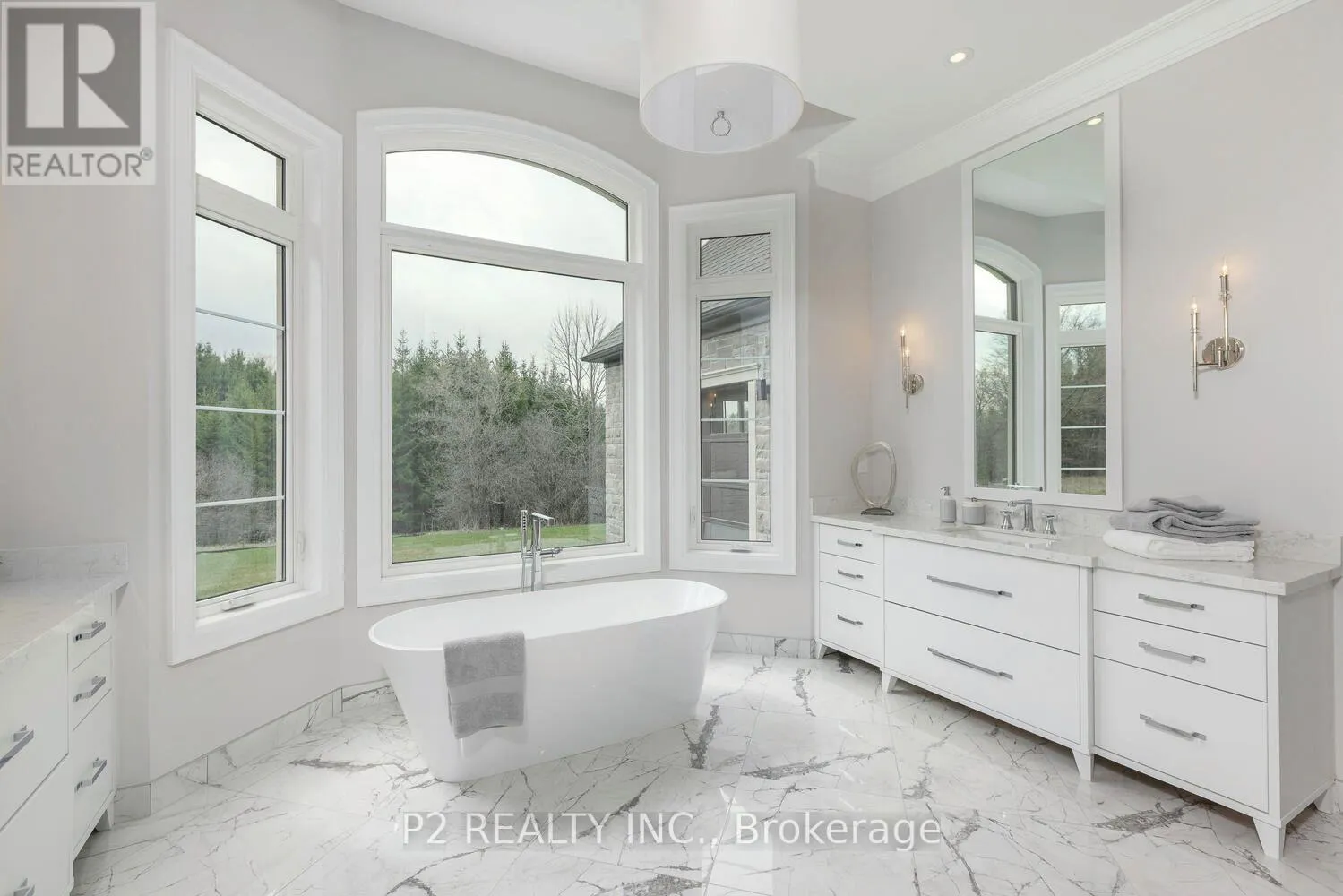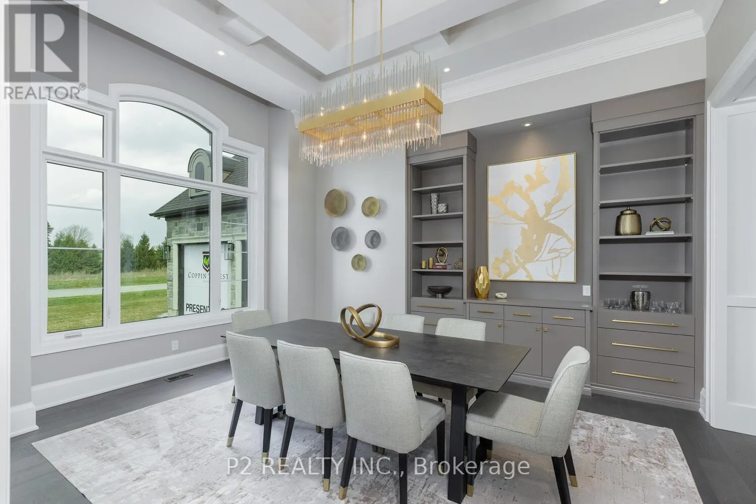 Concession Rd 4/ Goodwood Rd Coppin Forest Estates is a boutique collection of luxury estate homes on expansive 1 to 4 acre lots, offering a rare pre-construction opportunity in the heart of Uxbridge's sought-after Goodwood community. Introducing the Inverness Model (Elevation A). An architectural masterpiece spanning approximately 4,050 sq. ft., on a 2.14 acre lot, thoughtfully crafted by Oxford Developments and set within the exclusive Coppin Forest Estates community in Goodwood, Uxbridge. This striking bungaloft blends timeless design with modern sophistication, a rare opportunity to own an estate home surrounded by nature, rolling hills, and luxury custom residences. The main level showcases soaring 10-ft ceilings, expansive living and dining spaces with open-to-above volume, and a seamless flow into the designer kitchen, complete with extended-height Canadian-made cabinetry, quartz countertops, a generous breakfast area, and a walk-in pantry with optional servery. An oversized mudroom with laundry adds practical elegance, connecting directly to the garage. This home offers 5 spacious bedrooms and 4 well-appointed bathrooms, including a main floor primary retreat with walk-in closet and spa-inspired ensuite. Premium finishes include: 5 prefinished hardwood flooring, large-format 12"x24" porcelain tile (as per plan), 7 -1/4" baseboards, quartz surfaces in all bathrooms and laundry room, crown moulding, and 20 interior pot lights. Ceilings soar to 9 feet on the second level and throughout the basement. Steps to premiere golf clubs, scenic nature trails, and a short drive to boutique shopping and amenities. EXTRAS: Upgraded 8' interior doors on main level * Elegant veranda * Open-to-above ceilings in living room and dining room * Tarion Warranty included * Closings starting in 2027. *** Photos are renders and from model home*** (id:27476)