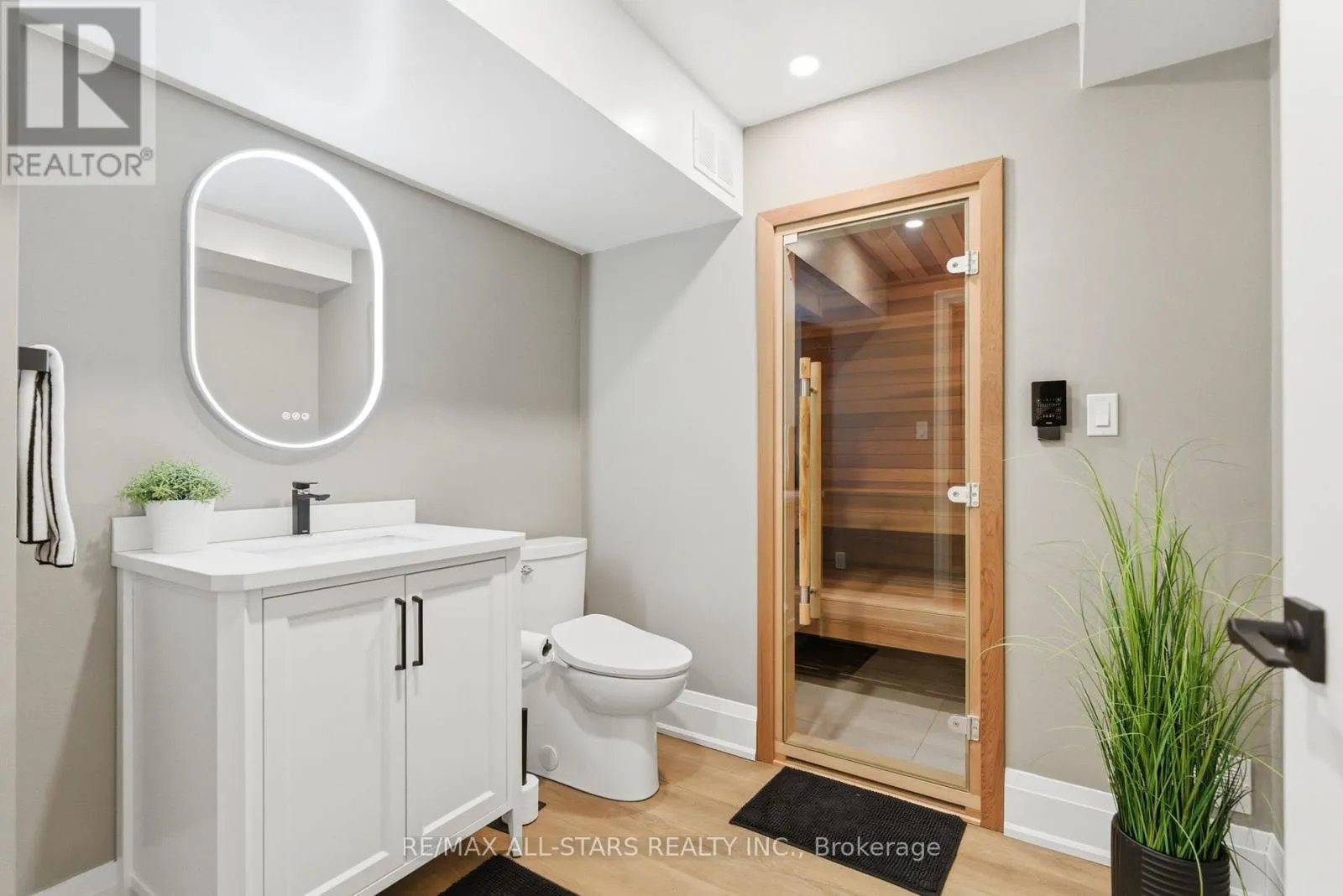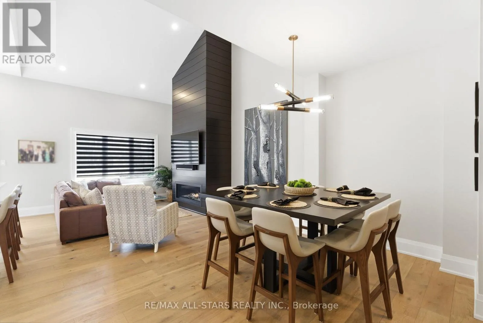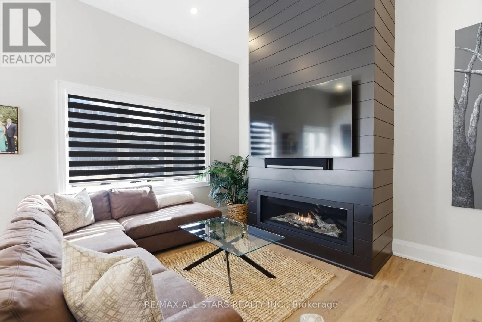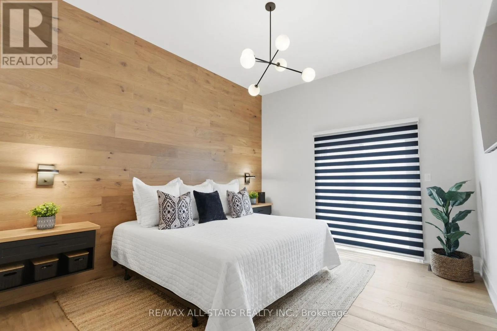 Brock St East/ Nelkydd Ln This home is the definition of upgraded living. Thoughtfully designed from top to bottom, every space showcases elevated finishes, smart features, and carefully selected details. The main floor welcomes you w/ a living room centred around a Napoleon gas fireplace, shiplap accent wall, and automatic blinds. The kitchen is designed for everyday living and entertaining, w/ quartz counters, a large island w/ extension, two pull-out pantry systems, under-cabinet lighting, and a walkout to the private backyard retreat. The premium appliance package includes a Sub-Zero refrigerator/freezer, Sub-Zero wine fridge, Miele dishwasher, and a suite of Wolf professional appliances. The main floor bedroom features a double closet w/ automatic blinds and organizer, while the nearby 3pc bathroom offers heated floors, a quartz vanity, LED mirror, heated bidet toilet seat, and a glass walk-in shower. The laundry room includes heated tile flooring and built-in cabinetry. The primary suite serves as a private retreat w/ built-in end tables, accent wall, walk-in closet w/ organizers, automatic blinds, and a sliding door to the composite deck w/ hot tub. The ensuite features heated flooring, double vanity w/ quartz counters, glass shower, LED mirrors, and heated bidet toilet seat. Upstairs, the loft offers a dedicated desk area, alongside a large bedroom w/ automatic blinds and a walk-in closet. The 4pc bathroom continues the home's refined design w/ heated floors, quartz vanity, LED mirror, heated bidet toilet seat, and tub. The finished basement adds a home gym w/ specialty flooring, mirrored walls, and a feature wall, plus a private theatre room w/ theatre seating, built-in cabinetry, a dry bar, and automatic blinds. A large bedroom w/ built-in desk and a 2pc bathroom w/ private sauna, quartz vanity, LED mirror, and heated bidet toilet seat complete the level. Outside, upgrades include composite decking, glass railings, a sunken hot tub, gas hookups, irrigation, and composite fencing. (id:27476)
