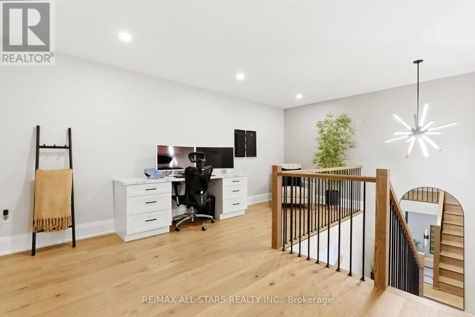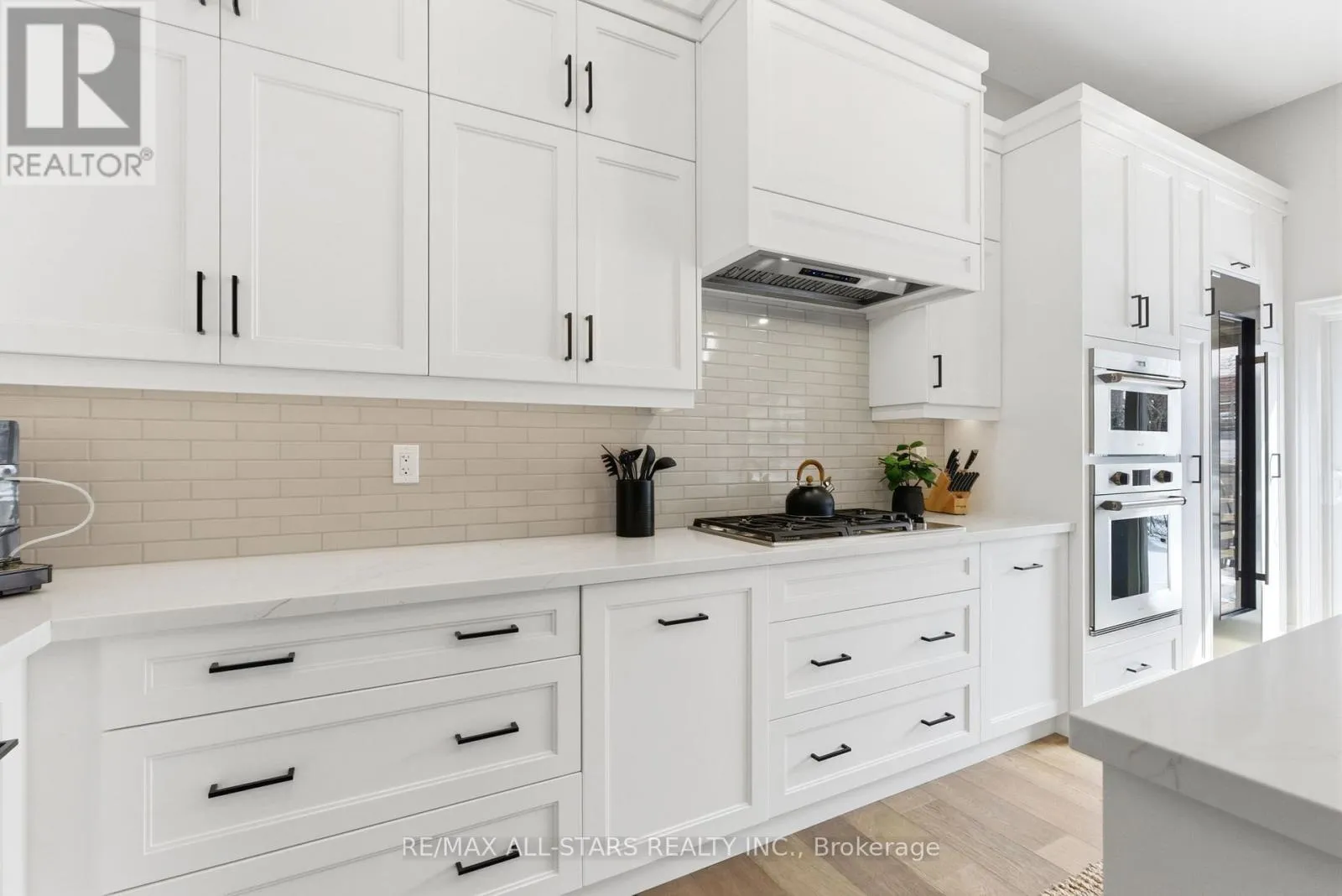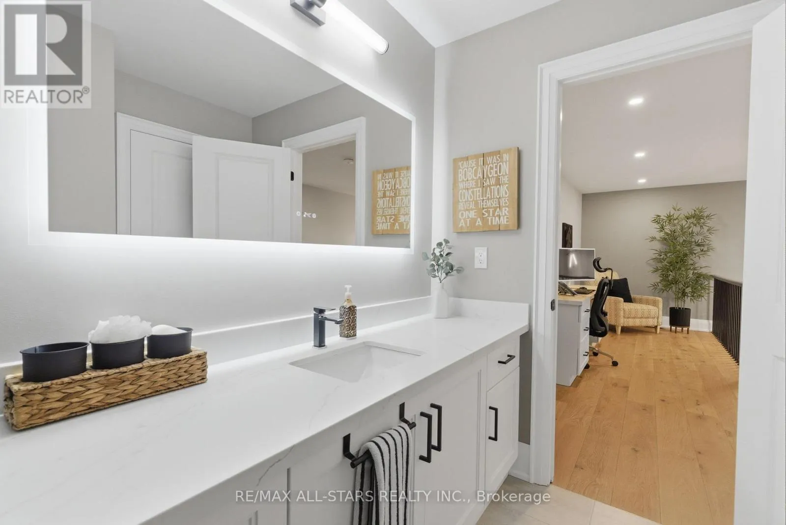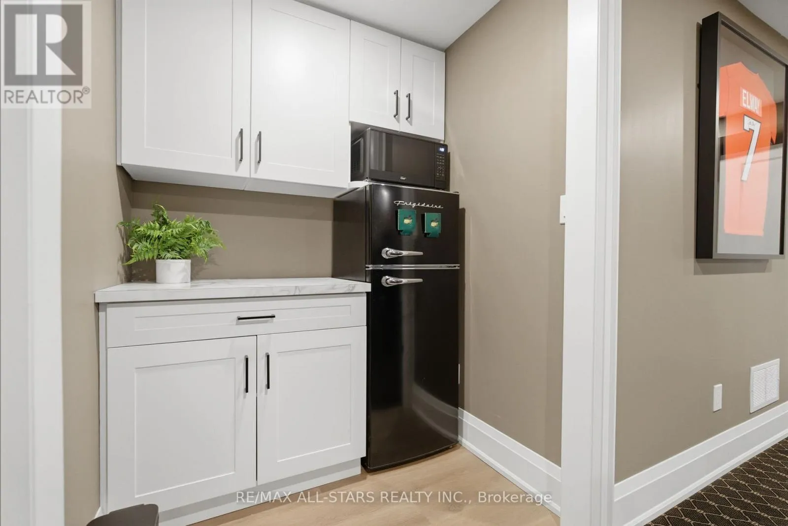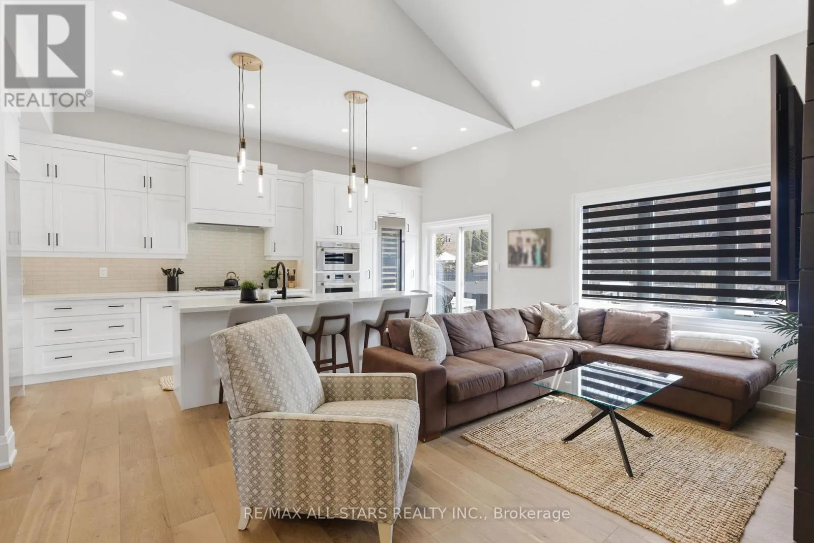 Brock St East/ Nelkydd Ln This home is the definition of upgraded living. Thoughtfully designed from top to bottom, every space showcases elevated finishes, smart features, and carefully selected details. The main floor welcomes you w/ a living room centred around a Napoleon gas fireplace, shiplap accent wall, and automatic blinds. The kitchen is designed for everyday living and entertaining, w/ quartz counters, a large island w/ extension, two pull-out pantry systems, under-cabinet lighting, and a walkout to the private backyard retreat. The premium appliance package includes a Sub-Zero refrigerator/freezer, Sub-Zero wine fridge, Miele dishwasher, and a suite of Wolf professional appliances. The main floor bedroom features a double closet w/ automatic blinds and organizer, while the nearby 3pc bathroom offers heated floors, a quartz vanity, LED mirror, heated bidet toilet seat, and a glass walk-in shower. The laundry room includes heated tile flooring and built-in cabinetry. The primary suite serves as a private retreat w/ built-in end tables, accent wall, walk-in closet w/ organizers, automatic blinds, and a sliding door to the composite deck w/ hot tub. The ensuite features heated flooring, double vanity w/ quartz counters, glass shower, LED mirrors, and heated bidet toilet seat. Upstairs, the loft offers a dedicated desk area, alongside a large bedroom w/ automatic blinds and a walk-in closet. The 4pc bathroom continues the home's refined design w/ heated floors, quartz vanity, LED mirror, heated bidet toilet seat, and tub. The finished basement adds a home gym w/ specialty flooring, mirrored walls, and a feature wall, plus a private theatre room w/ theatre seating, built-in cabinetry, a dry bar, and automatic blinds. A large bedroom w/ built-in desk and a 2pc bathroom w/ private sauna, quartz vanity, LED mirror, and heated bidet toilet seat complete the level. Outside, upgrades include composite decking, glass railings, a sunken hot tub, gas hookups, irrigation, and composite fencing. (id:27476)