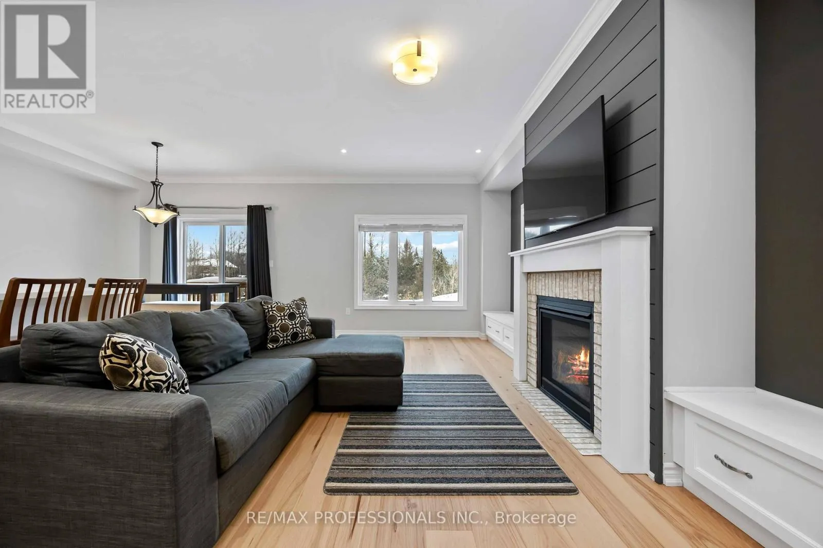 Cross Streets: Toronto St S | Cemetery Rd. ** Directions: Toronto St to Cemetery Rd to Gord Matthews Way. Located in the heart of Uxbridge, this thoughtfully upgraded end-unit townhome delivers style, space, and unmatched privacy, backing onto protected green space for a tranquil setting. The home features 3 bedrooms and 4 bathrooms, with wide plank hardwood flooring throughout, & high-end finishes. The living room is warm and inviting, highlighted by a gas fireplace with custom-built in reading alcoves and storage on both sides. The chef-inspired kitchen is beautifully finished with upgraded stainless steel appliances, quartz countertops, and a large island/breakfast bar. The second level offers a spacious primary suite with a walk-in closet, and a 5 piece ensuite bath. The two spacious secondary bedrooms are connected by a 5-piece Jack-and-Jill bath and complemented by conveniently situated upper-level laundry. The property features a finished basement with a separate side entrance, a 3-piece bathroom, and a complete kitchen rough-in-ideal for a future in-law suite. Enjoy a fenced, professionally landscaped backyard oasis, perfect for entertaining, and backing onto protected green space. Conveniently located close to charming shops, box stores, dining options, and all the amenities Uxbridge has to offer. Some photos are virtually staged. (id:27476)