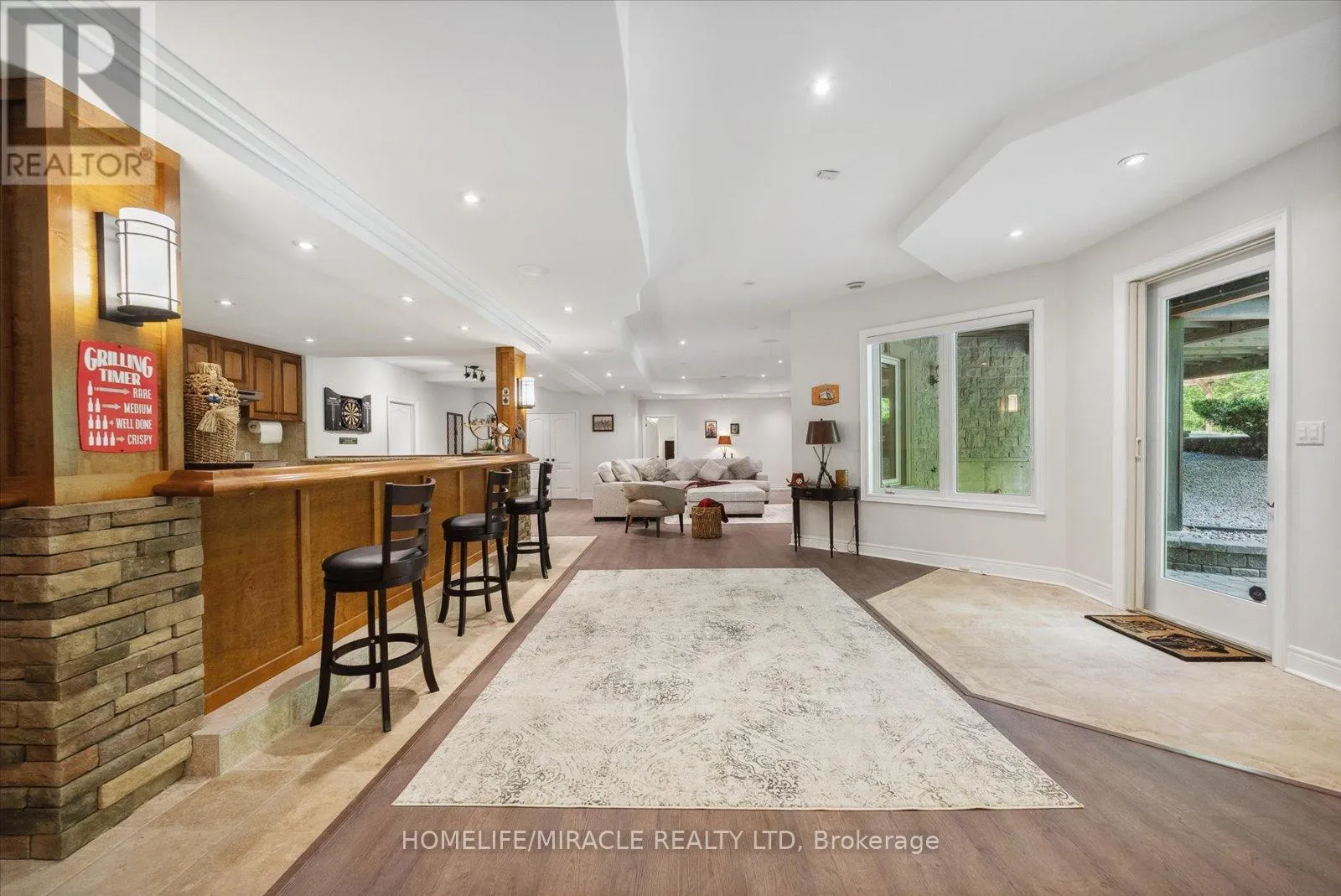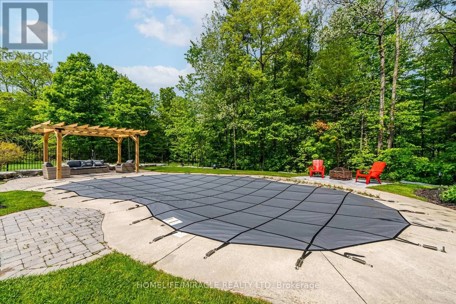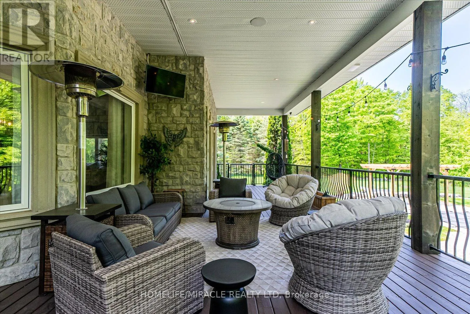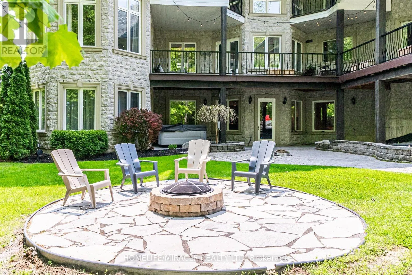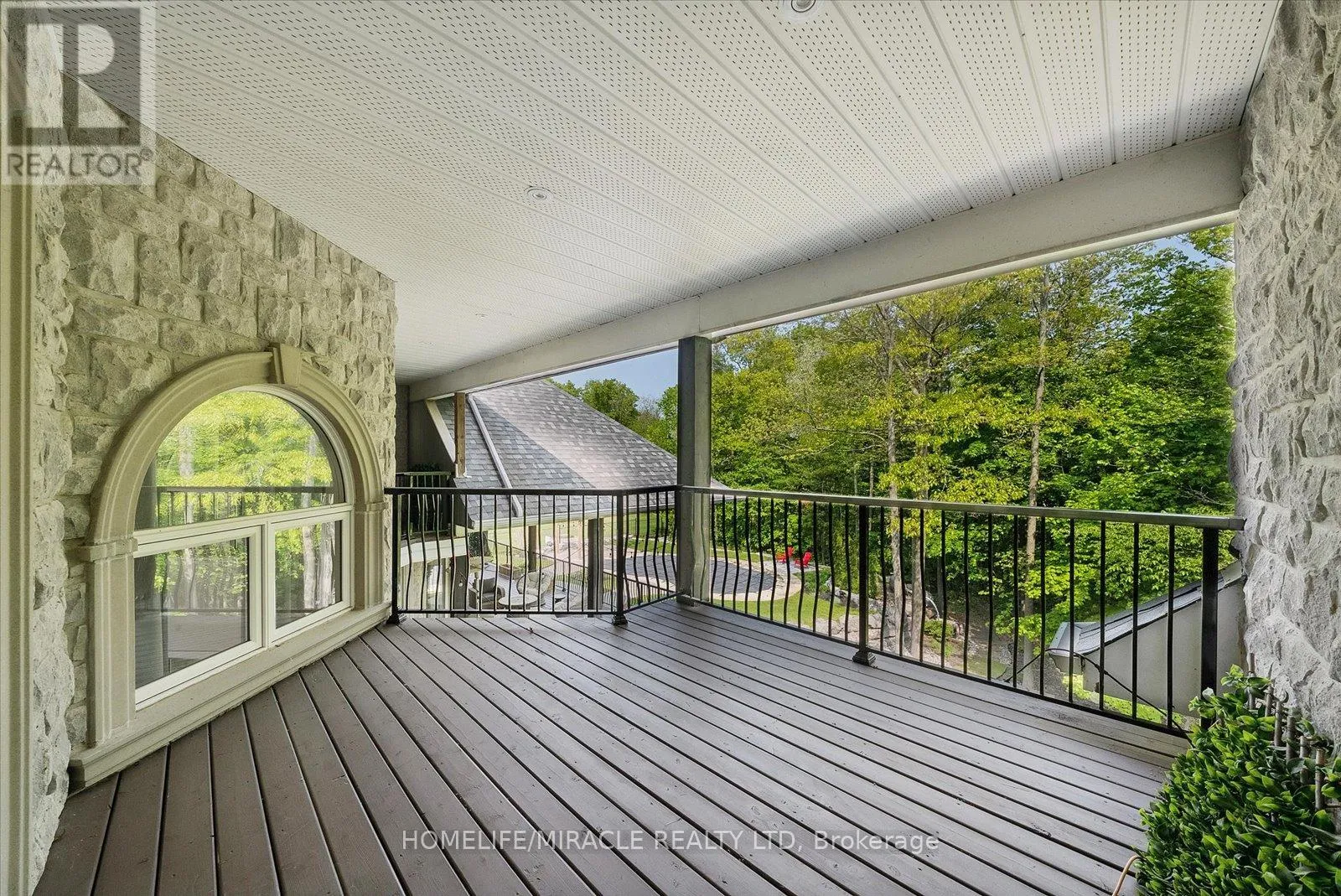 Cross Streets: Lake Ridge Road / Goodwood Road. ** Directions: Lakeridge Road Wagg Foxfire Chase Deer Run. Enjoy an elevated lifestyle in this stunning custom stone bungaloft estate offering 5210 sq ft of living above ground (8,200+ sq ft of total finished living space). Situated on a private 2.66-acre forested lot with west exposure, this 4+2 bedroom home is tucked away at the end of a quiet court at the highest point in prestigious Foxfire Estates, just minutes from downtown Uxbridge. Designed with breathtaking architecture, the home features soaring ceilings ranging from 10-20 ft on the main level, 9 ft on the second floor, and 9.6 ft in the fully finished walk-out basement. The main floor primary suite offers a luxurious retreat with a gas fireplace, walk-out to a covered deck, his and hers walk-in closets, a 6-piece ensuite, and access to a private office or nursery. Control-4 system smart Home technology, built-in speakers and a huge unfinished Storage Loft over the oversized 3 car Garage. The open-concept kitchen boasts quartz countertops, a centre island, walk-in pantry, and a spacious breakfast area with walk-out to an expansive covered deck. The family room features a waffle ceiling, window seating, and a gas fireplace, while the grand two-storey living room impresses with a floor-to-ceiling fireplace and oversized windows. A formal dining room with coffered ceilings completes the elegant main level. Upstairs, a loft with a floating hallway overlooks the living space and leads to three bedrooms, each with ensuite access, with two offering private balconies. The professionally finished walk-out basement includes an in-law suite, sauna, 3-piece bath, custom climate-controlled wine cellar, kitchen/bar, recreation and games areas, gym, and multiple walk-outs. Step outside to a true backyard oasis featuring an in-ground pool, hot tub, firepit, pergola, expansive patio, and natural forest surroundings. Located in the Trail Capital of Canada, this exceptional property offers the perfect blend of privacy, luxury, and convenient access to amenities, golf, and ski hills. (id:27476)