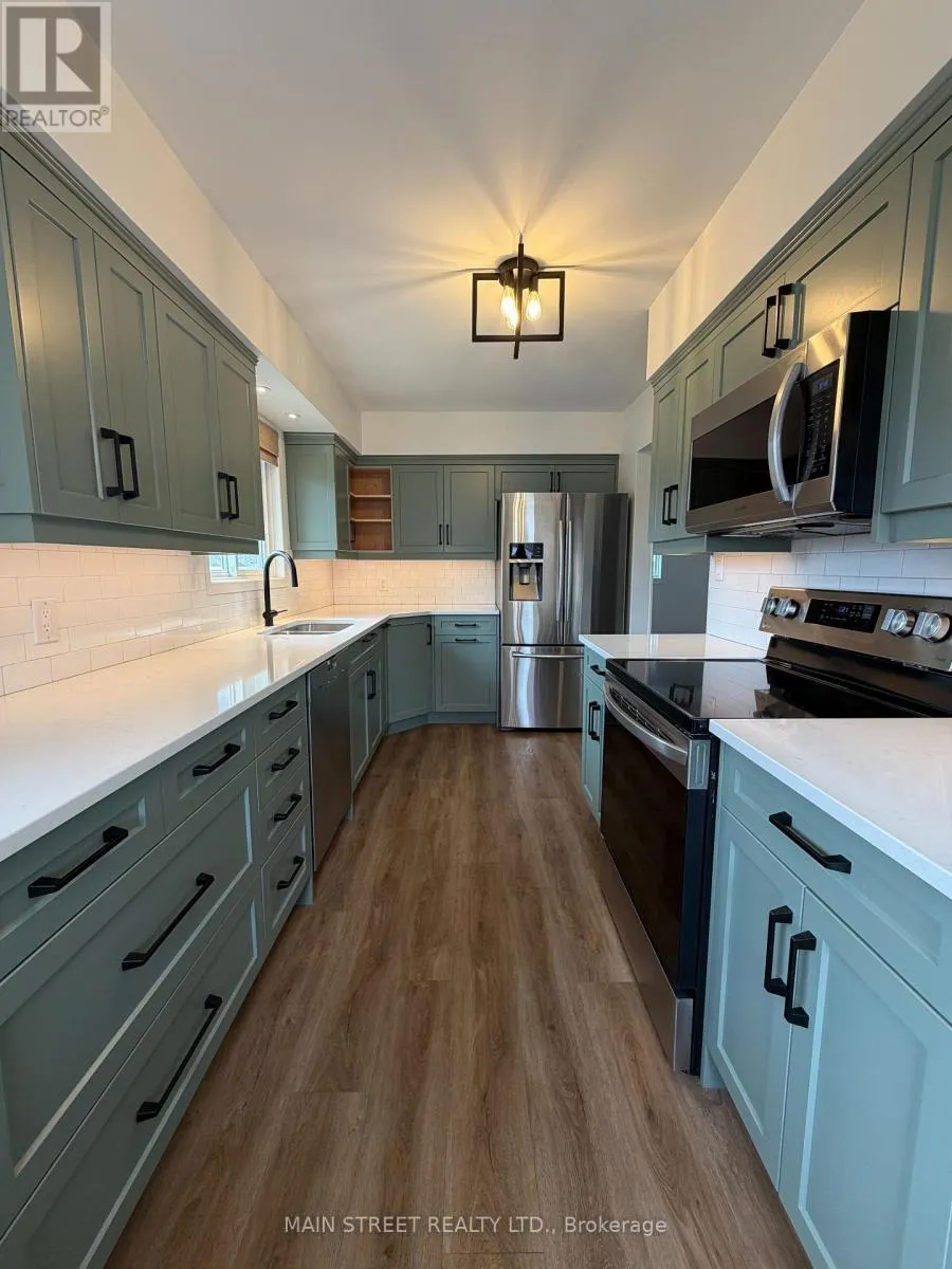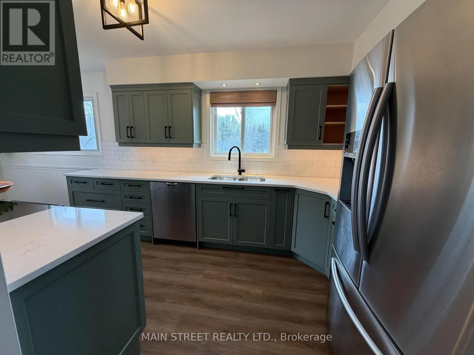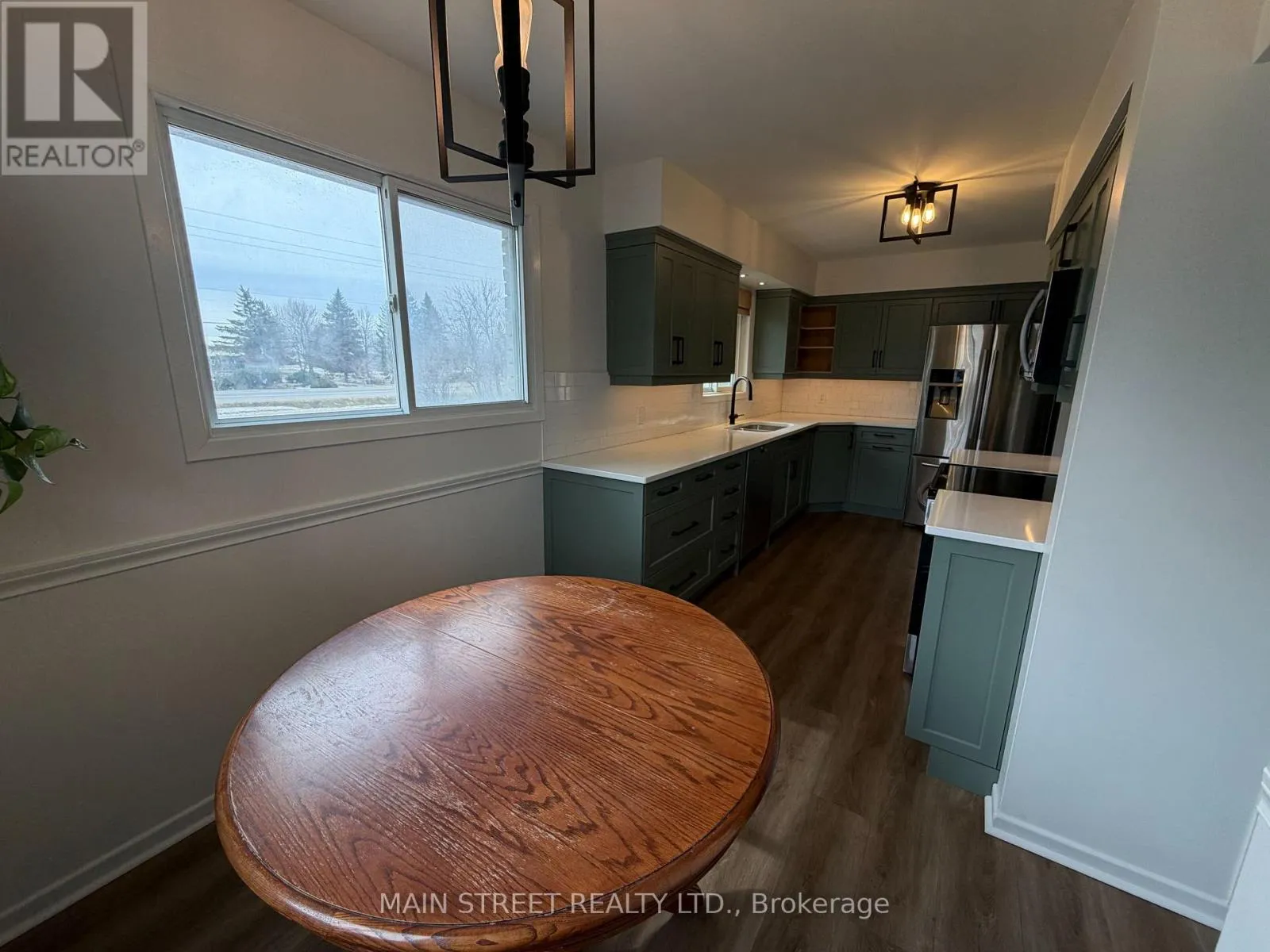 Cross Streets: Highway 47 and Goodwood Rd. ** Directions: Located between Conc 4 Uxbridge and Goodwood on North side. Rural Uxbridge Family Friendly Home Offering 3 bdrms 2 full baths. Included with the rent is heat, hydro, water, partial snow removal and grass cutting and internet! This home has been recently renovated with beautiful eat in kitchen with modern green cupboards and stainless steel appliances. Medium toned vinyl plank flooring gives a balance of modernity and warmth with woodlike design throughout for easy cleaning and continuity. Bright and spacious living room and dining room combined and easily could be used as office and living space featuring a propane fireplace. Main floor pantry/storage and access to single car garage and mandoor to backyard. Two bathrooms fully renovated with a 3 pc on main level and 5 pc on upper level. Laundry room is a full sized room with built-in water drainage/leak protection, washer, dryer and laundry sink and plenty of room for storage. 3 good sized bedrooms complete this unit. Landlords will be installing a fenced section to determine private space for tenant when weather improves. Hot tub is being removed when ground thaw allows. Home is located on site with operating business and buildings. Tenant has their own driveway section in front of garage for private parking and shared main driveway in from road that is plowed by landlord. (id:27476)