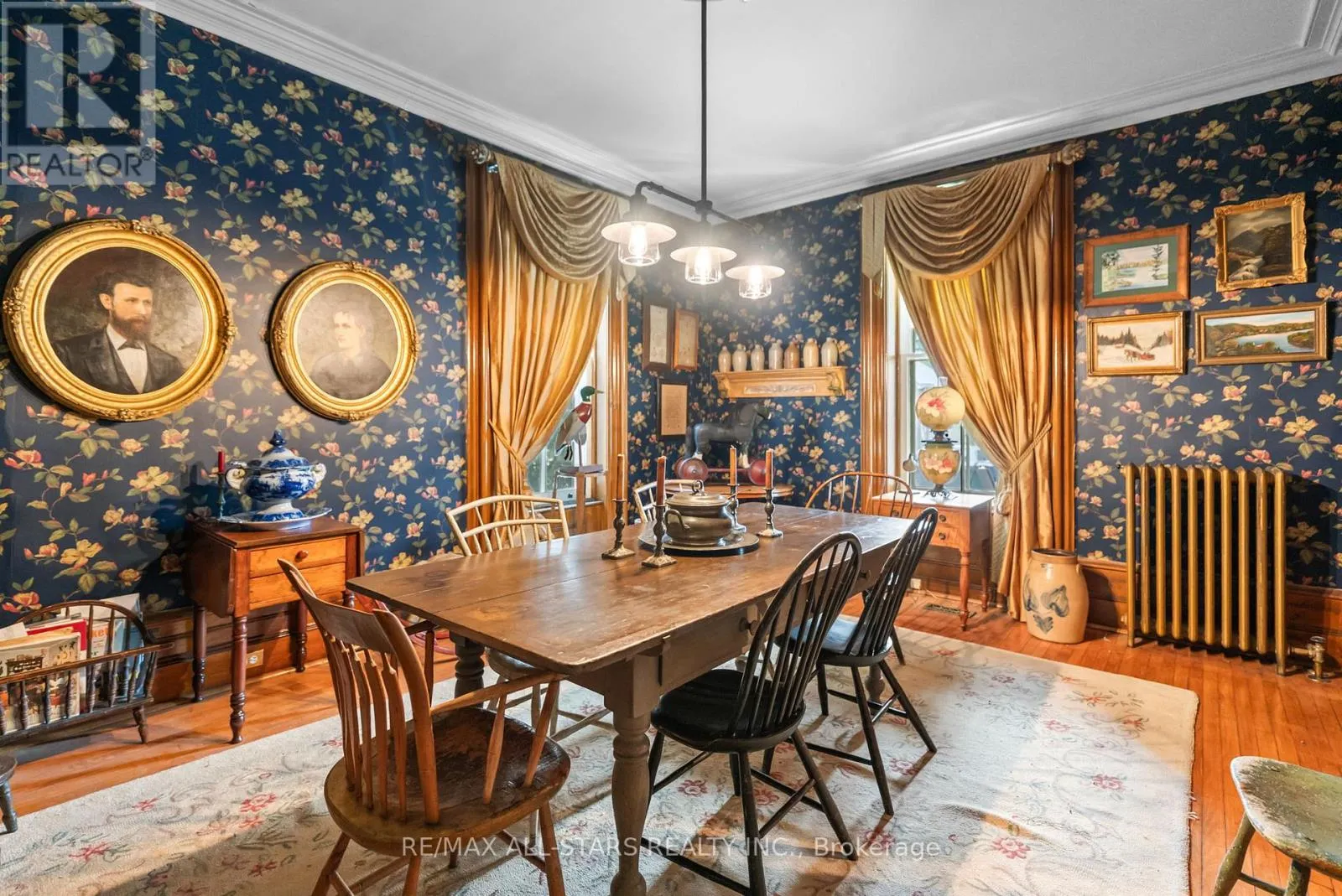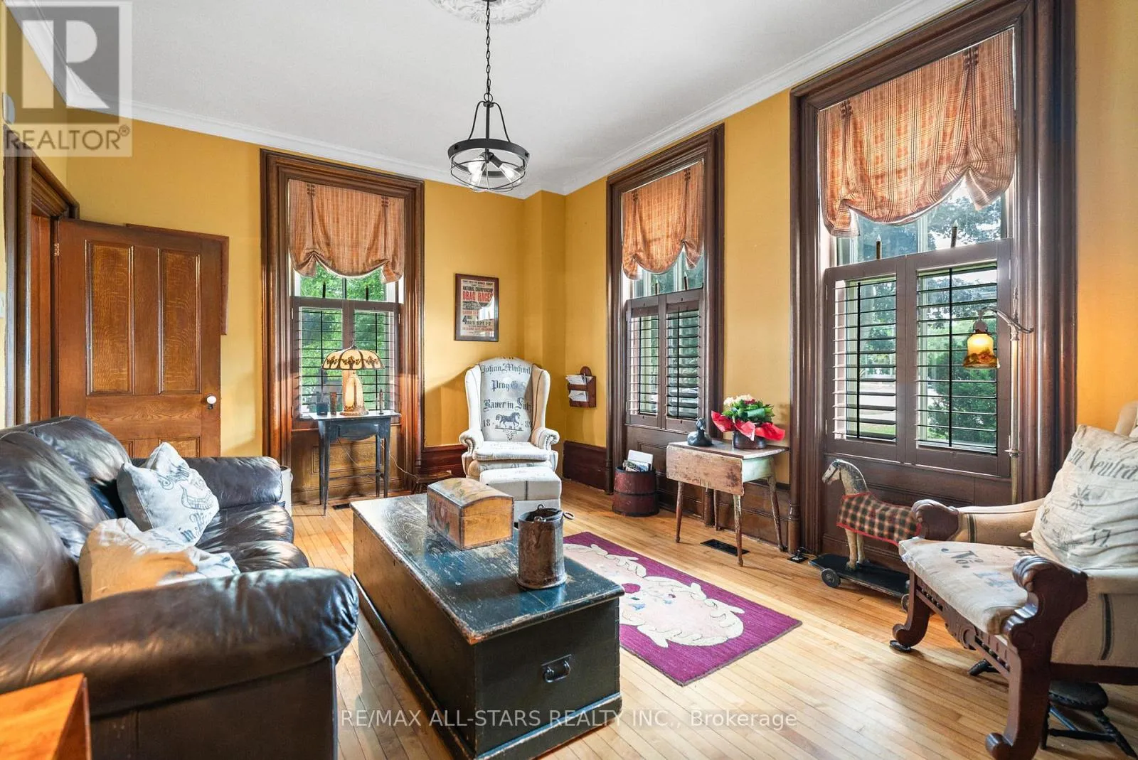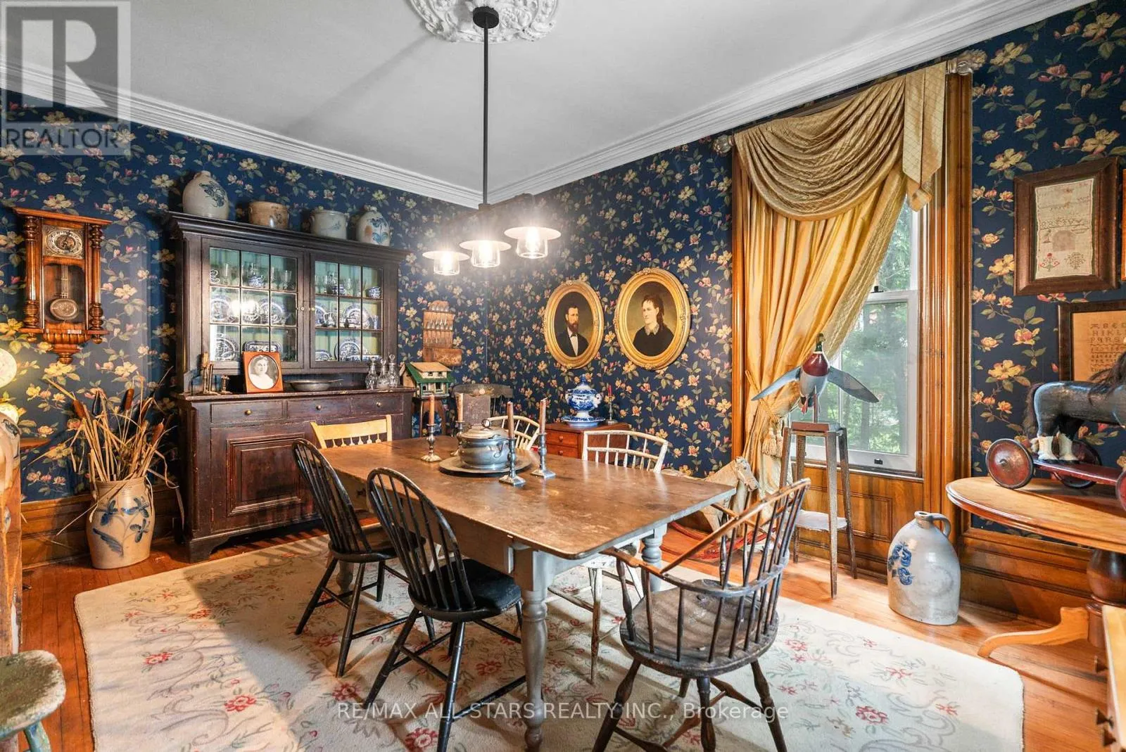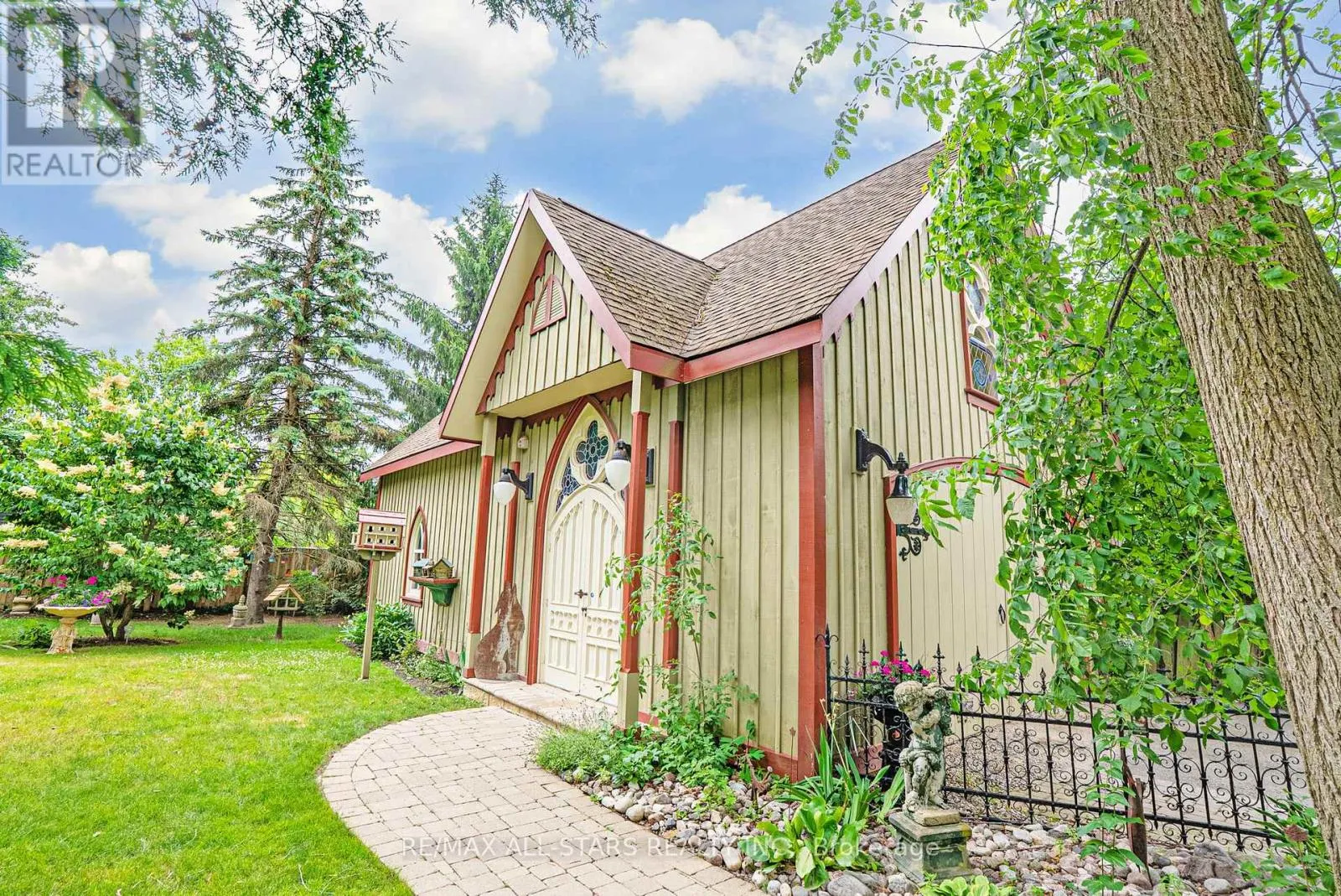 Cross Streets: Brock St E & Third Ave S. ** Directions: Brock St E just East of Third Ave S. Step into a bygone era with this beautifully preserved 1.5-storey century home, circa 1874, known as the "Robert Mooney Residence," set on a mature, tree-lined lot in the heart of Uxbridge. Rich in history and timeless appeal, this 3-bedroom, 2-bathroom home offers 2,366 sq.ft. of refined living space for those who value heritage, craftsmanship, and enduring character. From the moment you arrive, the ornate wrought iron fencing, classic proportions, and inviting porch hint at the story within. Inside, original details take centre stage-soaring ceilings, intricate wood trim, crown mouldings, ceiling medallions, and tall windows that fill the home with natural light. The formal living and dining rooms are elegant yet welcoming, perfect for gathering and entertaining in a setting that feels both grand and intimate. The heart of the home is a thoughtfully updated kitchen that blends modern function with classic style, opening to a sunlit breakfast area and a charming 3-season sunroom-ideal for slow mornings and relaxed evenings overlooking the private, treed backyard. Upstairs, the primary suite offers a peaceful retreat with a dormer window, walk-in closet with laundry, and a beautifully appointed ensuite. Additional bedrooms and a clawfoot tub bath continue the home's tradition of comfort and character. Outdoors, enjoy a serene setting with mature trees, a spacious deck, and covered porch, along with an impressive detached garage (approx. 40' x 24', built 2013) featuring a 19' cathedral ceiling, reclaimed doors, hardware, lighting, stained glass accents, and its own electrical panel-perfect for hobbyists or additional workspace. A rare opportunity to own a piece of Uxbridge history-where craftsmanship, charm, and lifestyle come together. (id:27476)