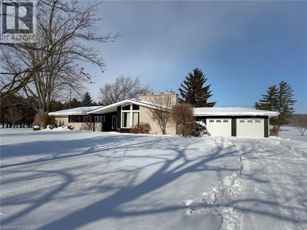 Highway 24 south of Scotland to Windham Road 3 to #867 just west of Kelvin Road on the north side of the road. Nestled on a recently severed 0.92-acre lot, this 1973 brick-and-wood sided ranch at 867 Windham Road 3, Vanessa, ON offers country living with modern potential. Surrounded by open fields and just 10 minutes southwest of Scotland and 30 minutes to Brantford, this spacious home blends timeless charm with room to grow. The 2,100 sq. ft. main level features a versatile mix of hardwood, laminate, and tile flooring, plus a bright, eat-in country kitchen boasting ample custom cabinetry, granite counters, an island, stainless steel appliances, and a generous dinette area. The adjacent formal dining room connects to a large living room highlighted by high ceilings, patio doors to the side patio, and a cozy gas fireplaceâperfect for gatherings and everyday living. A welcoming foyer with a coat closet sits just off the living room. The layout includes two comfortable guest bedrooms and a full 4-piece bathroom, while the primary suite invites privacy with its own 3-piece ensuite. A private side entrance with a convenient 2-piece bathroom and an open laundry area opens onto an attached covered patio. Downstairs, there is a finished bedroom area and a substantial unfinished portion offering tremendous potential for future expansion, along with a large utility area housing the furnace, water heater, water system, and electrical panel. A long private driveway leads to a spacious 2-car garage, seamlessly connected to the home by an outdoor covered patio. This property is ideal for a large or growing family seeking a tranquil rural setting without sacrificing proximity to essential amenities. Embrace the dream of country living with endless potentialâmake it yours today. (id:27476)