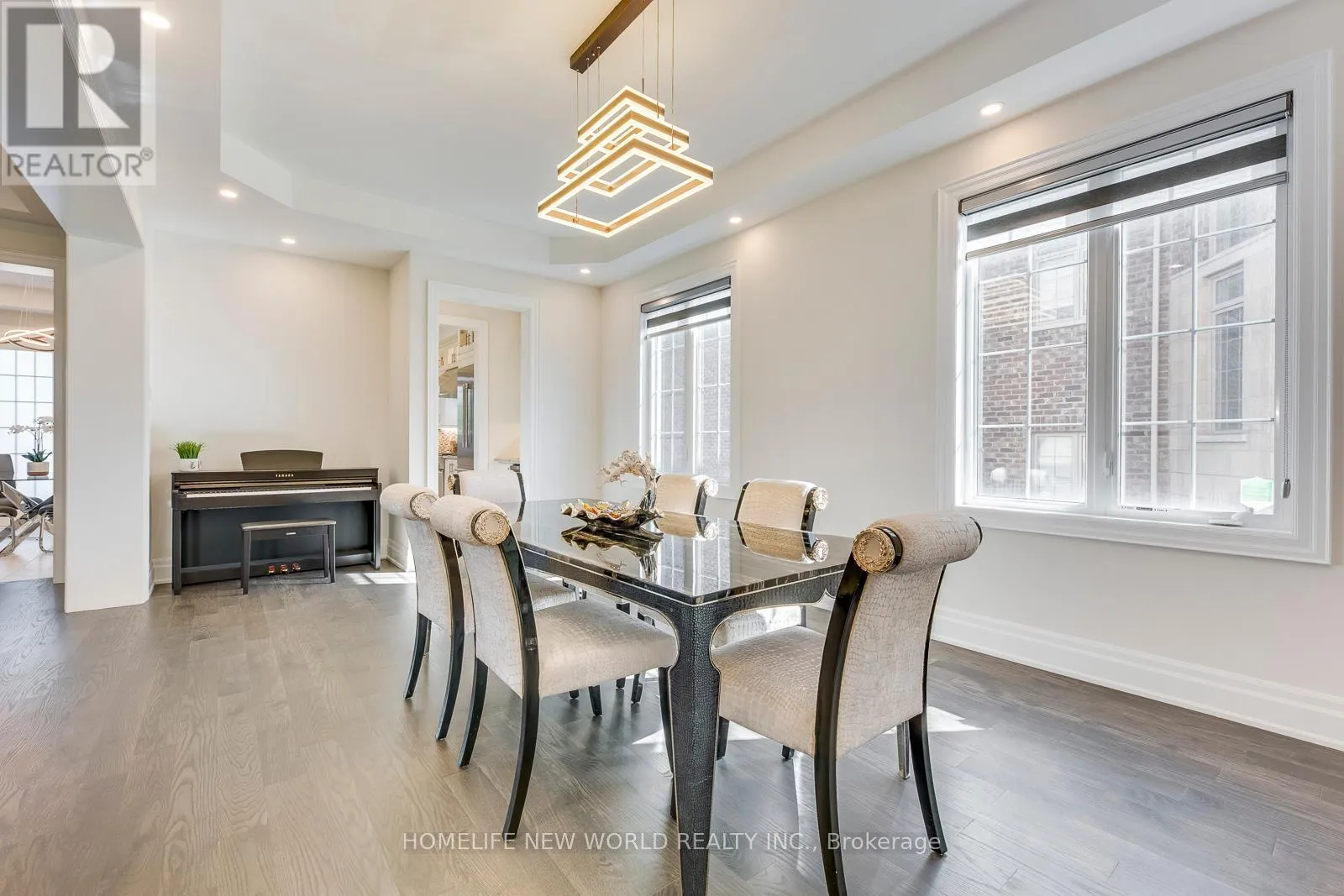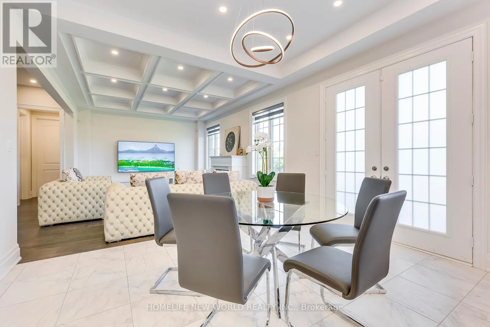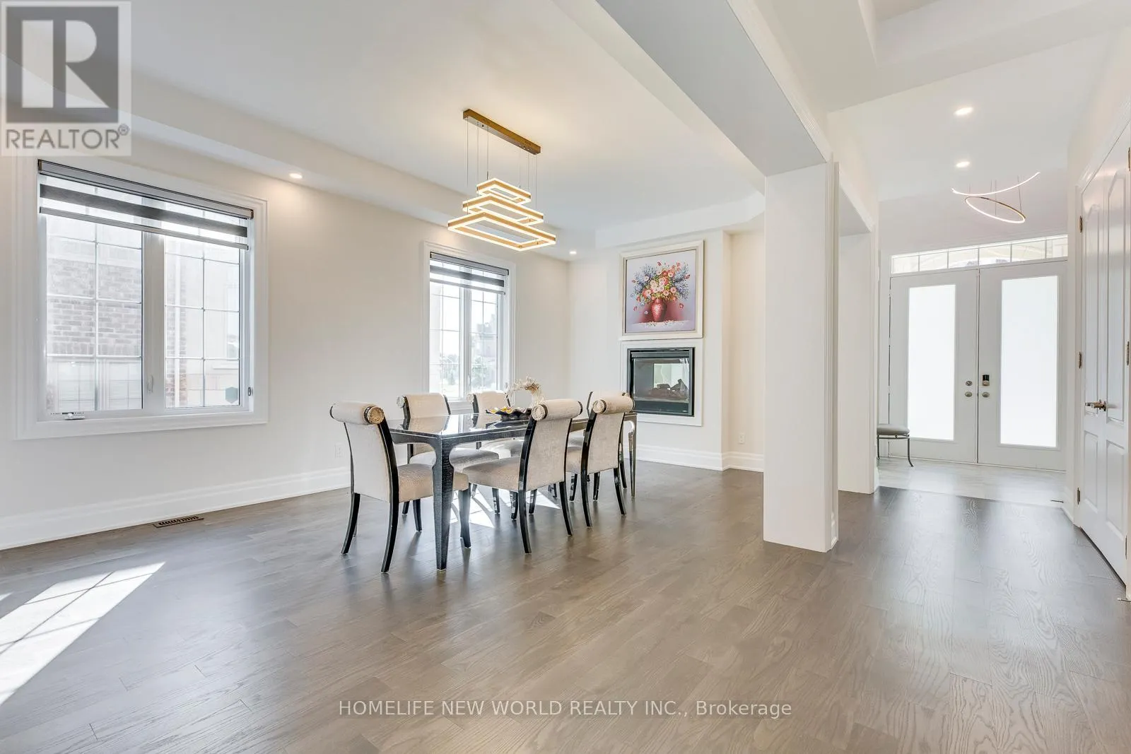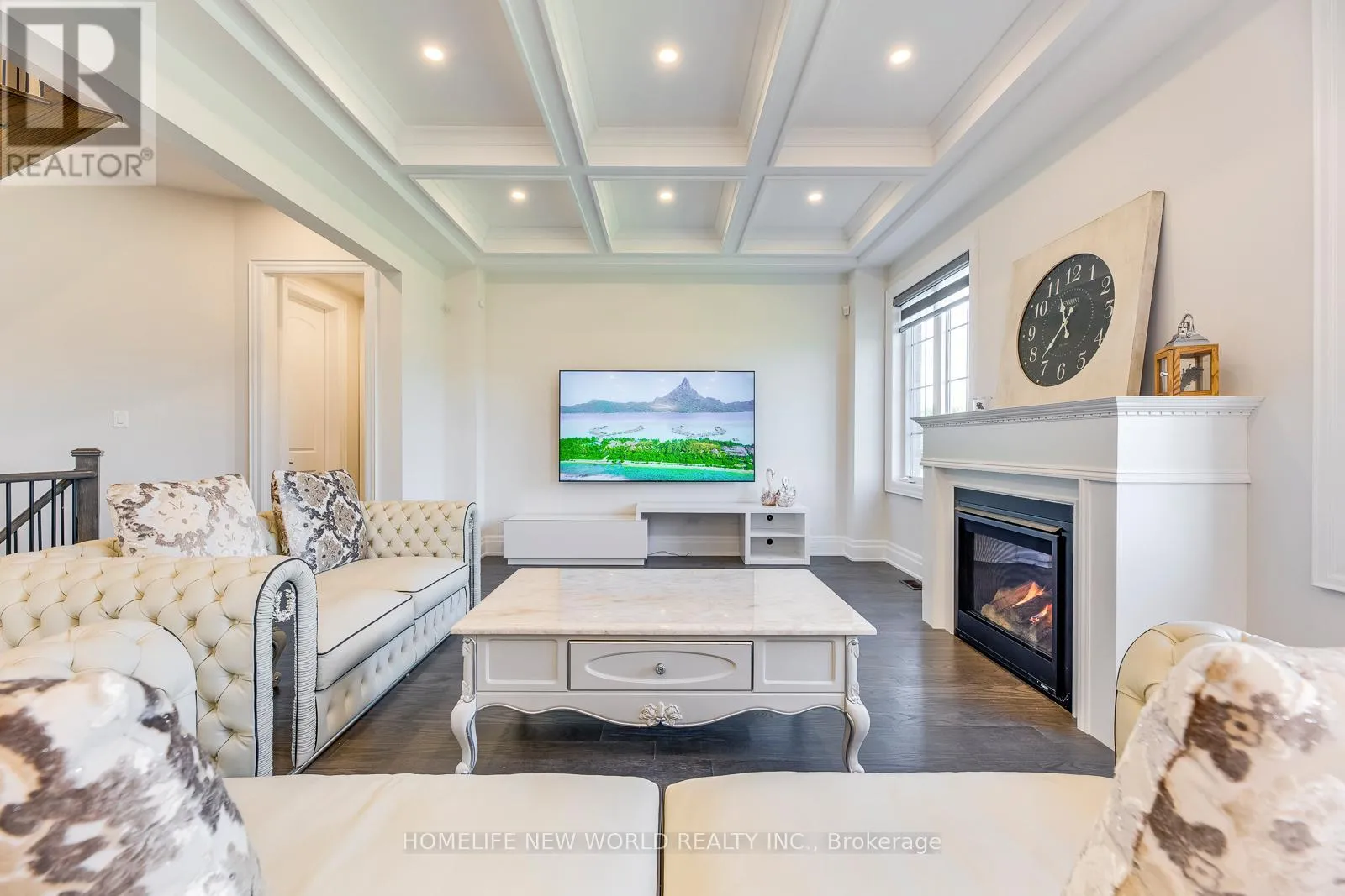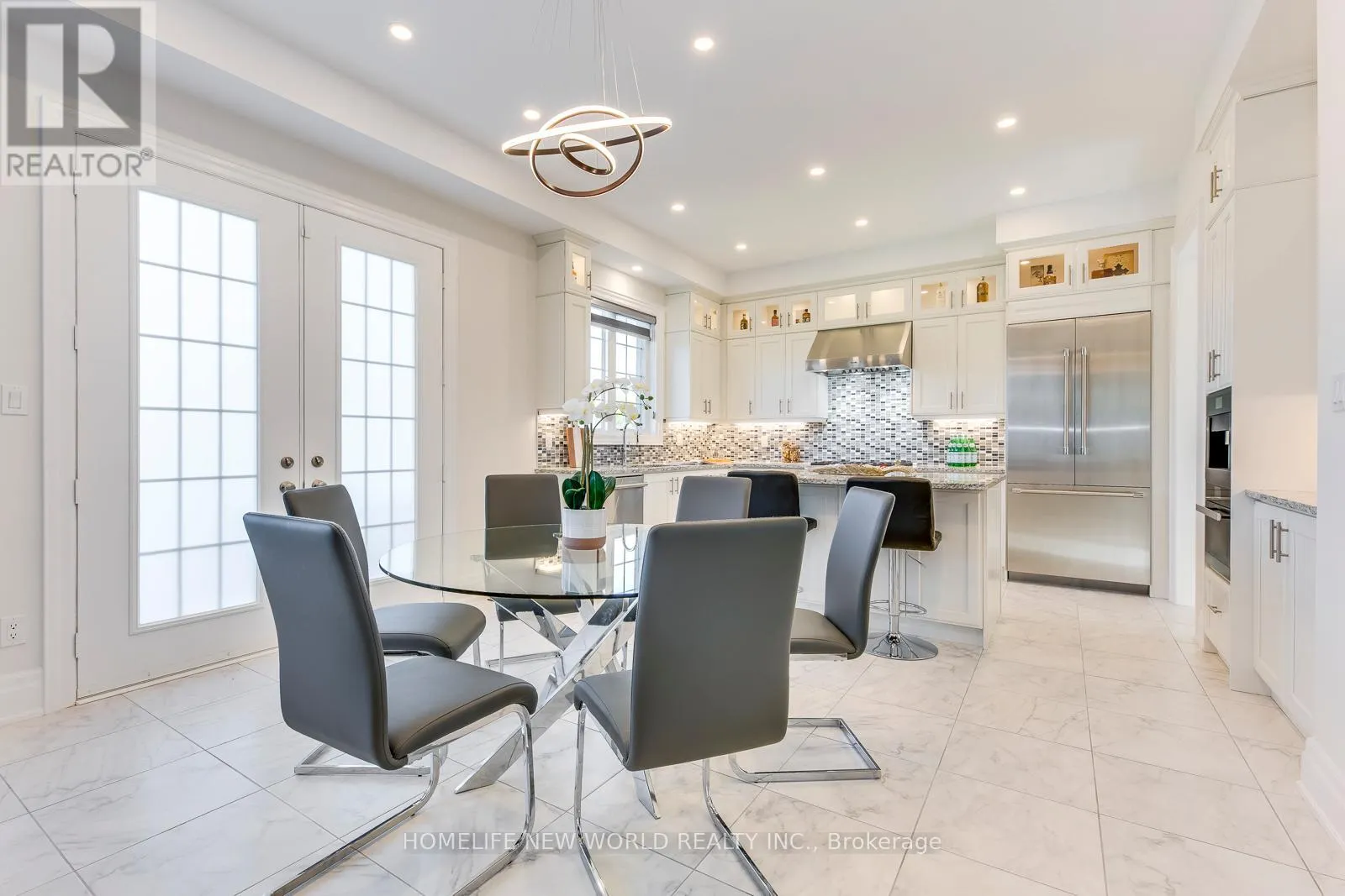 Hwy 27 & Major Mackenzie Drive Masterpiece Estate with magnificent lookout ravine lot that offers 6000 sq. ft. luxurious living space. The property comes with an oversized lot with 70ft X 133ft offers two and a half storeys with 5 bedrooms, 5.5 bathrooms, and unparalleled attention to detail throughout. 10 ceilings on main floor, 9 ceilings on 2nd floor, 8 on the 3rd floor, and 10 ceilings finished basement with vinyl flooring, a modern open bar with quartz countertop, built-in fridge, and modern wine cellar to show your expensive taste of wine is ideal for those who love to entertain. As you step into the property, immediately feature an open-to-above breathtaking modern rose gold custom chandelier. The office located on the right side of the foyer with a French door, custom waffle ceilings, and double-sided gas fireplace. Hardwood floors (above grade) and pot lights throughout the house. The gourmet kitchen comes with natural granite countertops and backsplash, under cabinet LED lighting, extended kitchen cabinets to the ceiling with glass doors and LED pot lights, boasts top-of-the-line brand new built-in Meile coffee machine & Meile dual steam and bake oven. Brand new built-in Thermadore fridge, Thermadore gas range, Thermadore hood & dishwasher as well as built-in wine fridge in the severy. Custom coffered ceilings in the great room. The master bedroom offers a 6 pieces ensuite with a double-sided temperature-controlled gas fireplace along with a extra large walk-in his and hers closet. The loft on the 3rd floor features a full ensuite bedroom and a Juliette balcony which is perfect for family that has an adolescence who may want their own private space in the house undisrupted. Interlock driveway leads to 3-car garage that all comes with garage door openers. Exterior pot lights around the house. New enclosed backyard fence. Close To Hwy 400, 407, and 427. Furniture inclusion available upon negotiation. (id:27476)