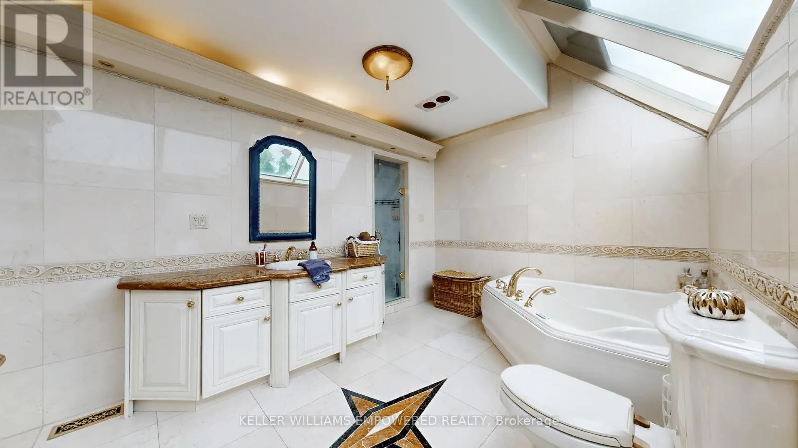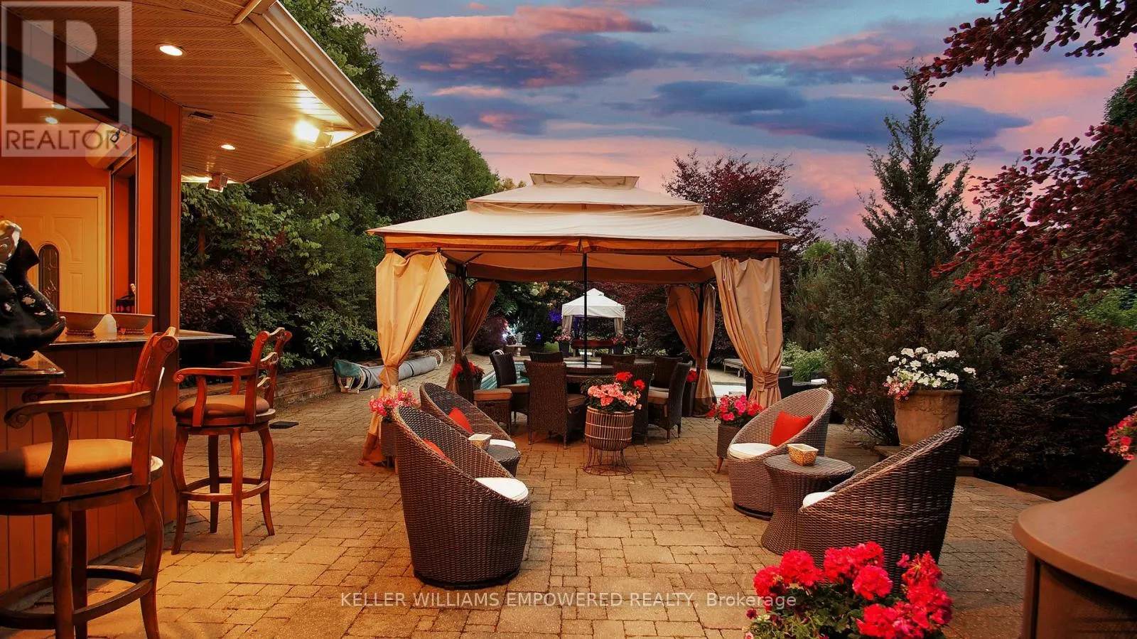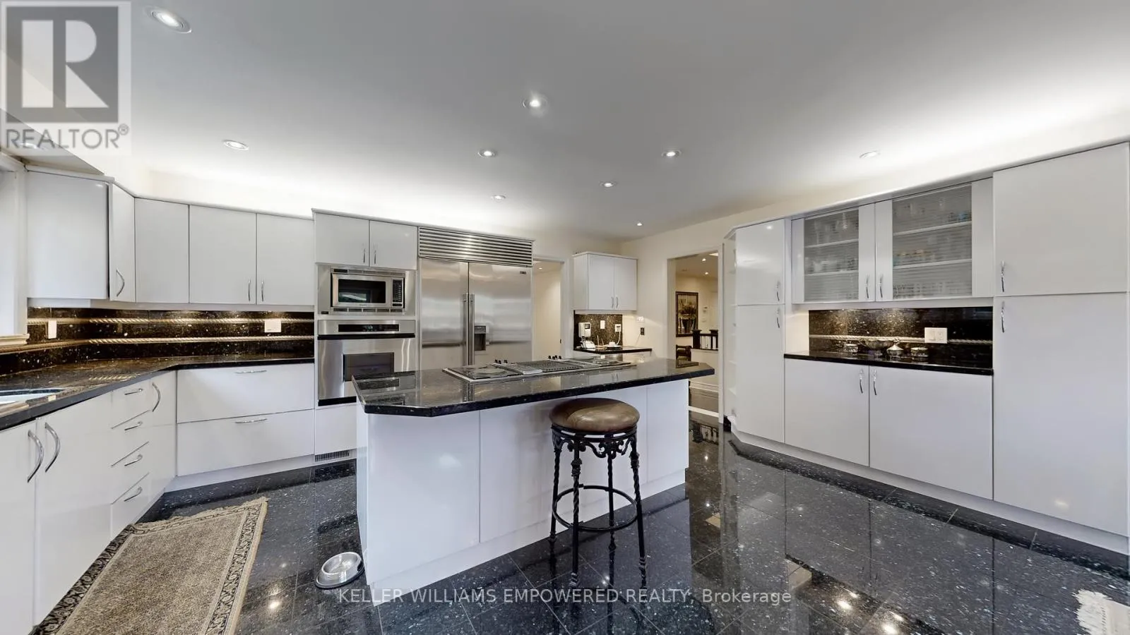 Cross Streets: Bathurst & Elgin Mills. ** Directions: Off the west side of Bathurst, North of Elgin Mills. Sitting on a fantastic 1.01 acres in prestigious Woodland Acres, this custom-built estate offers ultimate privacy, luxury finishes, and breathtaking views. This is a one-of-a-kind retreat offering unmatched comfort and natural beauty. The landscaped front grounds feature towering mature trees and lush perennial gardens with abundant privacy. In the rear, a true backyard oasis awaits with an inground pool, large gazebo, swing set, fantastic table space, and a fully equipped cabana with granite countertops, stainless steel fridge, smooth-top stove, two sinks, and a 3-piece bath with separate shower area. Multi-level stone patios, staggered gardens, and expansive lawns make this an entertainers dream. Inside, a grand 2-storey foyer with skylights and marble floors leads to elegant principal rooms, including a family room with a floor-to-ceiling fireplace and balcony walk-out, a living room with medallion ceiling and window bench, and a sunlit family room. The gourmet kitchen boasts Blue Pearl granite floors/counters, Sub-Zero and Miele appliances, a large island, and built-in desk, with a breakfast area that walks out to the rear patio. Upstairs, the primary suite features hardwood floors, a sitting area with balcony access, wood-burning fireplace, and a spa-like ensuite with Jacuzzi, His & Hers vanities, glass shower, and cathedral windows. The second bedroom has its own ensuite with glorious views of the rear grounds. Bedrooms three and four share an architecturally eye-catching bathroom, including a 5-pc marble bath with sloped glass roof. The second-floor laundry room adds convenience. The walk-out lower level offers a rec room with fireplace, steam sauna, 2-pc bath, and plenty of storage. Additional highlights include geothermal heating, European multi-lock windows, three fireplaces, French doors, pot lights, skylights, and multiple balconies. Walk to top-ranked St. Theresa CHS and drive to SAC, SAS, HTS, Lauremont, CDS & Vilanova. (id:27476)