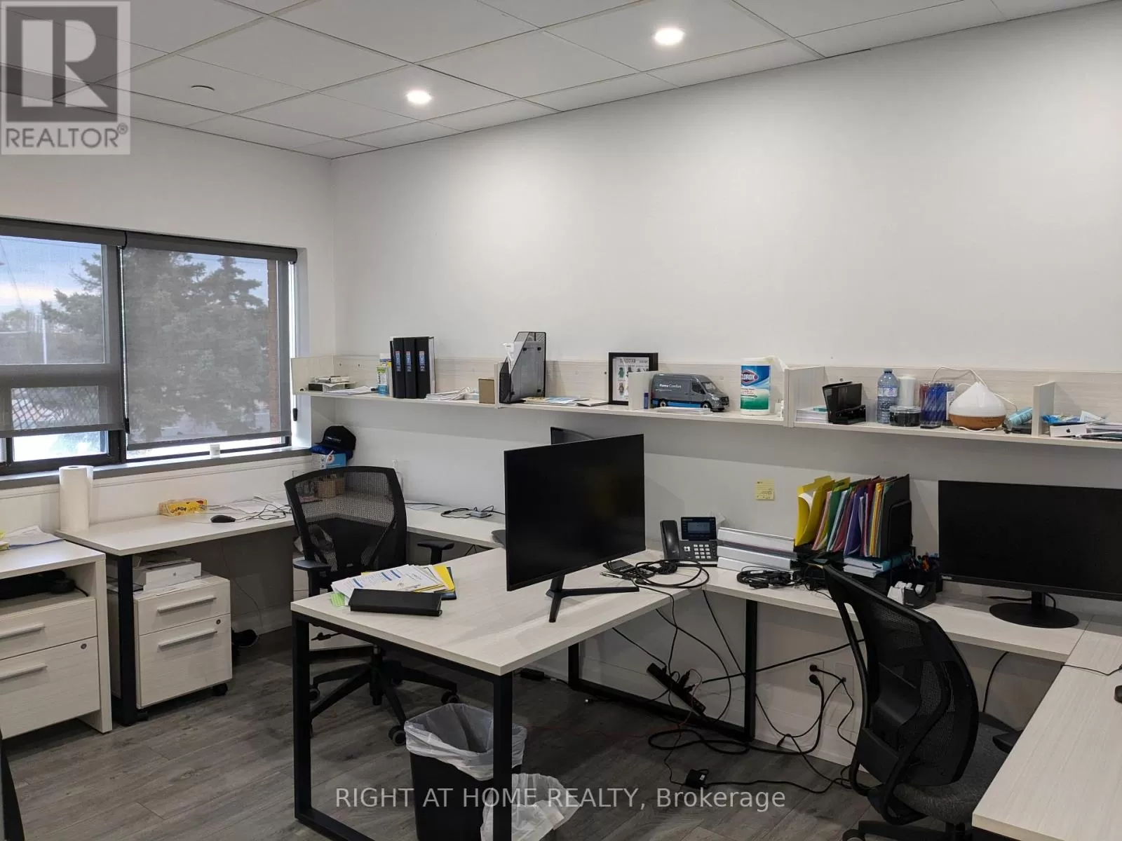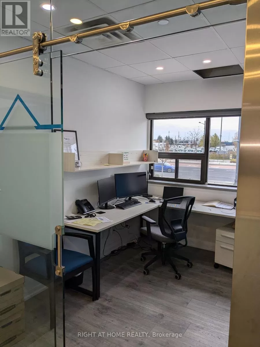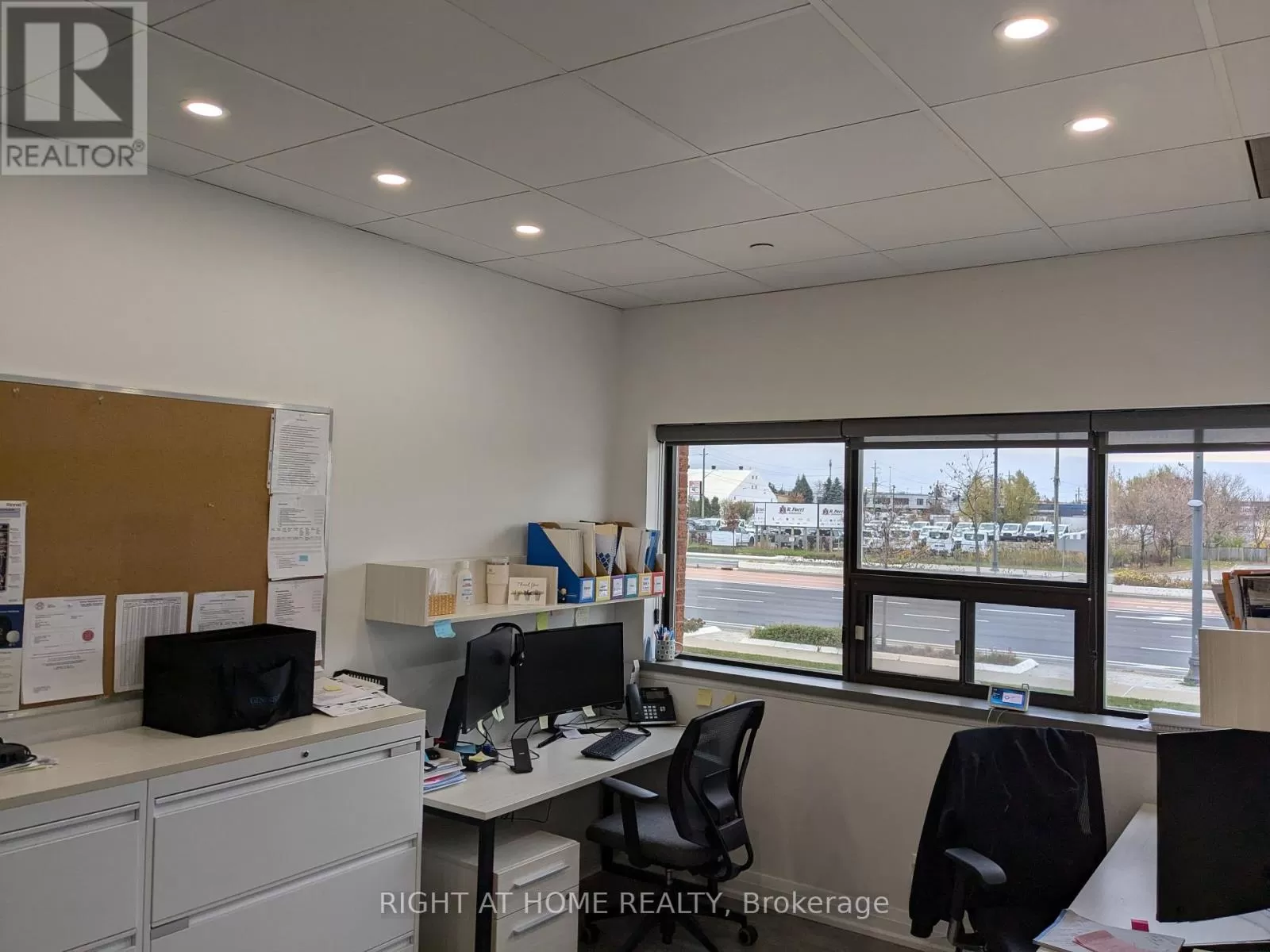 Cross Streets: Creditstone / Hwy 7. ** Directions: 7 to Creditstone to McCleary. Completely renovated double condo unit with Highway 7 exposure. Ideal for professional office, showroom, and warehousing. Great investment in an area with many new high rise developments. Bright and spacious with lots of windows. 3552 sqft over two levels. Multiple open concept work spaces, glass partitioned offices, and washrooms. Reception area, boardroom and kitchenette. Rooftop HVAC unit for office areas, gas heater for warehouse. 18 feet clear height in warehouse area. 2 large on grade roll up shipping doors. Spacious covered rear shipping area. EM1 zoning, ample power. Parking common and unreserved. Well managed complex. Property will be vacant on closing. Transit on doorstep, short walk to subway, close to Hwy 400 and 407. (id:27476)