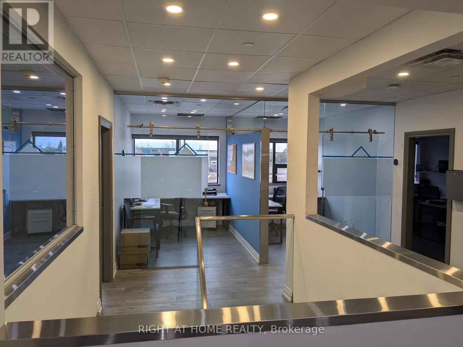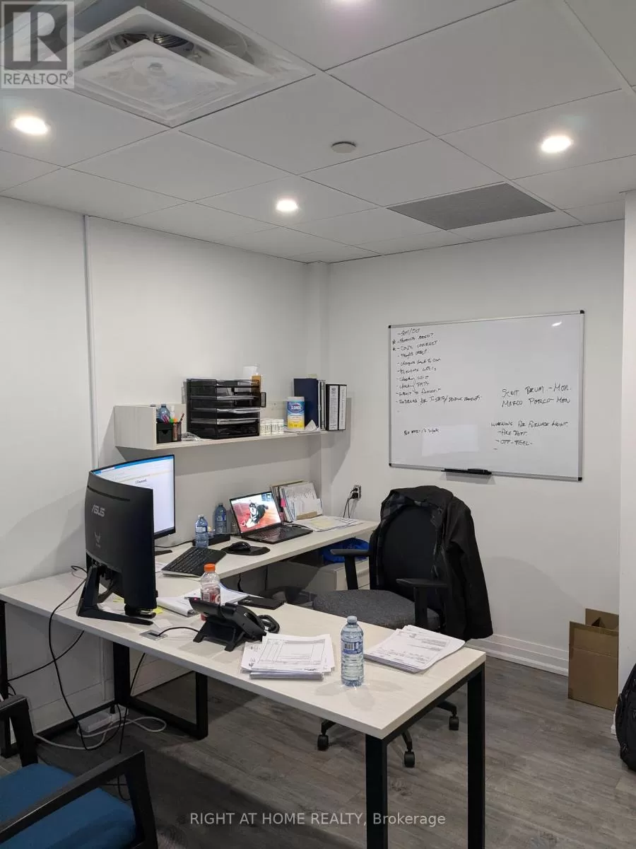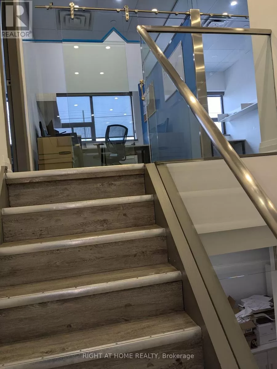 Cross Streets: Creditstone / Hwy 7. ** Directions: 7 to Creditstone to McCleary. Completely renovated double condo unit with Highway 7 exposure. Ideal for professional office, showroom, and warehousing. Great investment in an area with many new high rise developments. Bright and spacious with lots of windows. 3552 sqft over two levels. Multiple open concept work spaces, glass partitioned offices, and washrooms. Reception area, boardroom and kitchenette. Rooftop HVAC unit for office areas, gas heater for warehouse. 18 feet clear height in warehouse area. 2 large on grade roll up shipping doors. Spacious covered rear shipping area. EM1 zoning, ample power. Parking common and unreserved. Well managed complex. Property will be vacant on closing. Transit on doorstep, short walk to subway, close to Hwy 400 and 407. (id:27476)