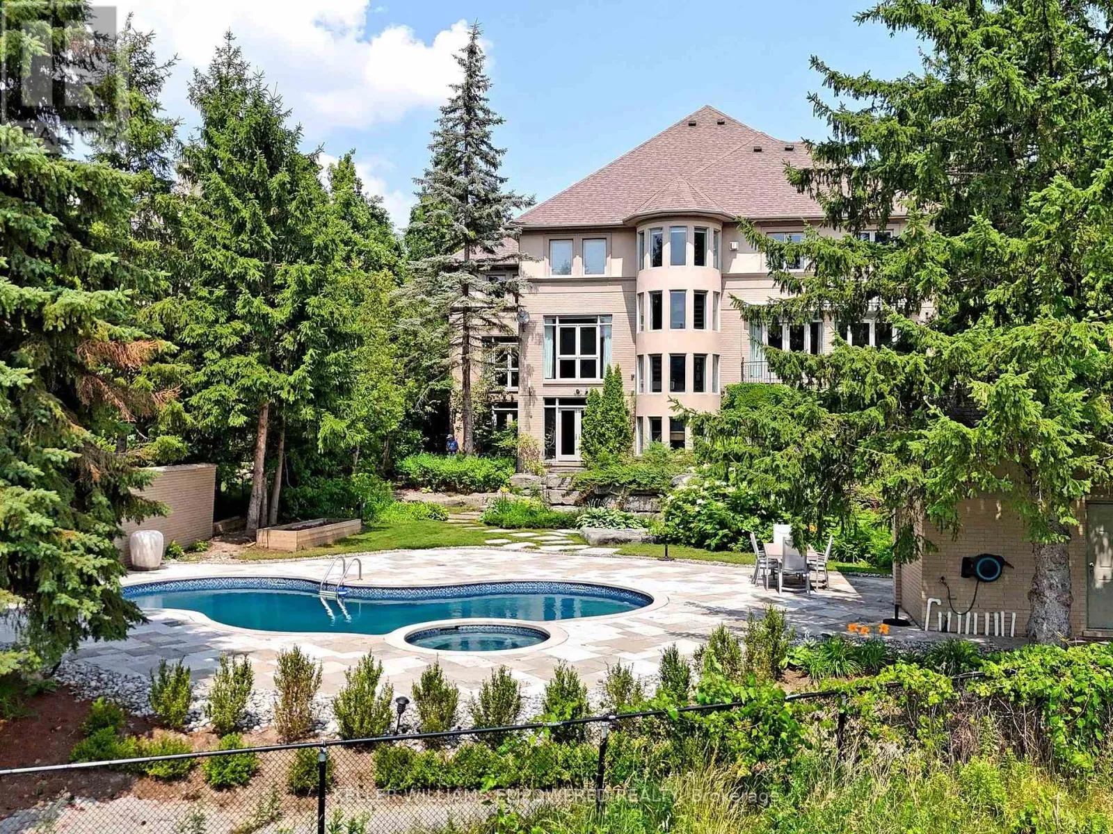 Vaughan Mills & Royal Park This home intertwines nature, architectural interest, and practical living seamlessly letting you live your ultimate lifestyle. A paradise backyard is created with a natural backdrop of the Humber River and meticulously crafted upper and lower entertainment areas boasting Muskoka Armour Rock boulders, stone walkways, outdoor speaker system, beautiful night lighting, and outdoor Cabana with facilities, change room with kitchenette! The home itself is approximately 6,000 square feet on the first and second floor alone, with approximately 2,500 square feet of finished lower level allowing for the perfect blend of show stopping architecture, creating "wow" factor for guests to enjoy, and practical living with your family allowing for separate spaces to find privacy and intimate spaces to bond. Upon entry the floating staircase provides a "sneak peek" of the Humber River views, awaiting you and drawing you into the Great Room which boasts double level ceiling height and fantastic views. Enjoy quiet time in your living room, as it has a double-sided fireplace. The kitchen is the perfect heat of the home with plenty of space, walk-out to rear grounds and workstation area. The first-floor study offers the perfect place to work with floor-to-ceiling built-in shelving and desk. The primary bedroom is the perfect getaway with fireplace and five-piece ensuite for you to unwind. Supporting bedrooms are all sizable with great ceiling heights and an abundance of natural light flooding into them. The lower level is a perfect getaway for your family and friends. Walk out to the rear grounds makes it easy to entertain and provides you with an additional level, and an abundance of natural light and views of your resort like backyard. Furniture Depicted in the Virtually Staged Photographs will not be Provided. (id:27476)