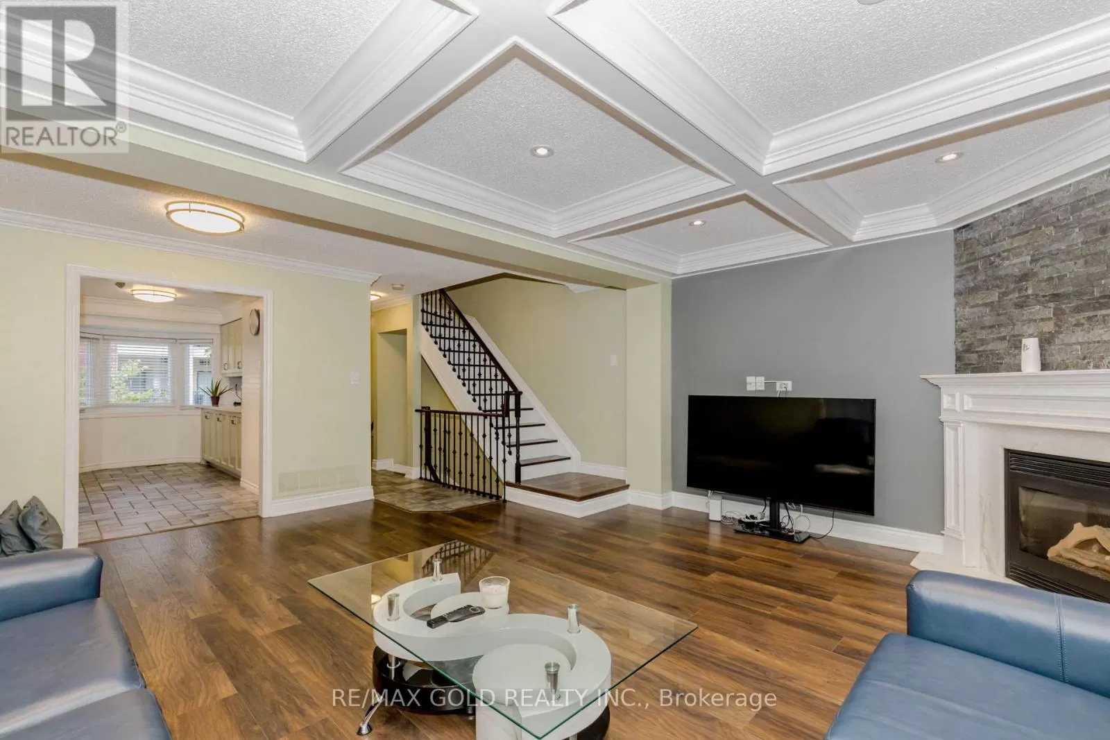 Cross Streets: Kipling/Woodbridge Avenue. ** Directions: Islington/Hwy 7/Kipling. Your Dream Home in Woodbridge: Modern & Move-In Ready!**Discover this fantastic end-unit condo townhouse in a super convenient Woodbridge location. It's been beautifully updated and is ready for you to move right in! Step inside to a bright, open living and dining area, perfect for relaxing or having friends over. You'll love the cozy gas fireplace and the extra-large windows that fill the space with sunlight. The coffered ceiling in the living room gives you a royal feel.Plus, there's a lovely, newly redone balcony with clear glass railings, great for enjoying your morning coffee or evening breeze. The kitchen is a chef's delight with all new upgrades and sleek stainless steel appliances. All bathrooms are also updated, including your private ensuite in the main bedroom, which even has a stylish accent wall. Need extra space? The ground floor has a big room with a charming bay window that can be a 4th bedroom, a fun rec room, or even a home office. You'll also appreciate the easy access with both front and back entry points. For your comfort and peace of mind, the furnace and AC are newer, and you get plenty of parking with a 1-car garage and space for 2 more cars in the driveway. This home offers the best of both worlds: the space and privacy of a townhouse, all in a prime Woodbridge spot close to everything. Come see it today! (id:27476)