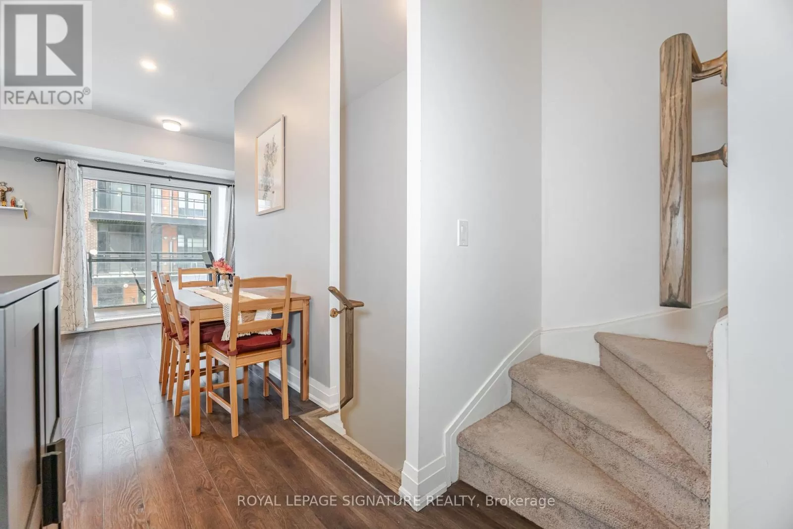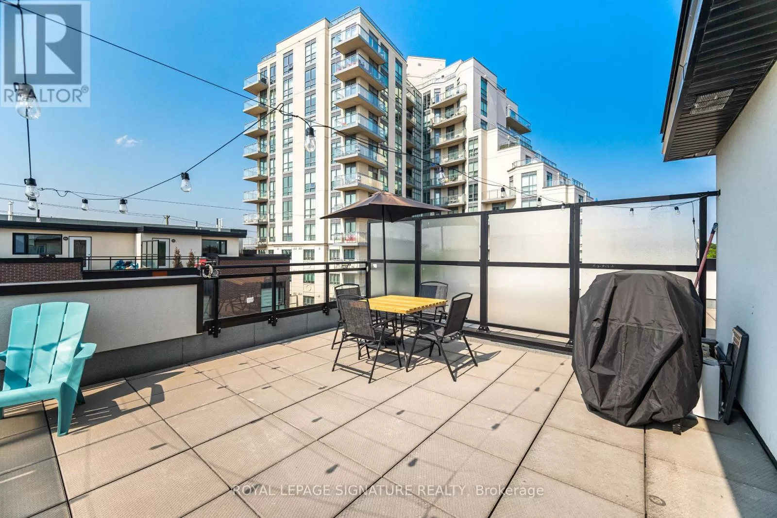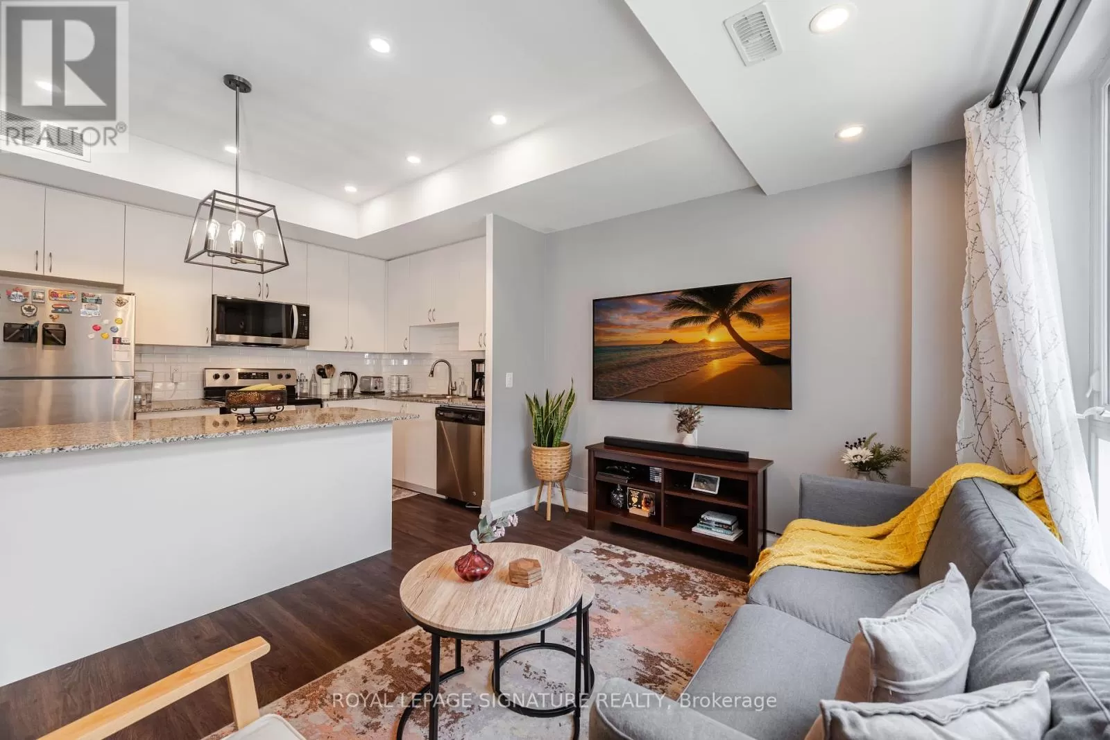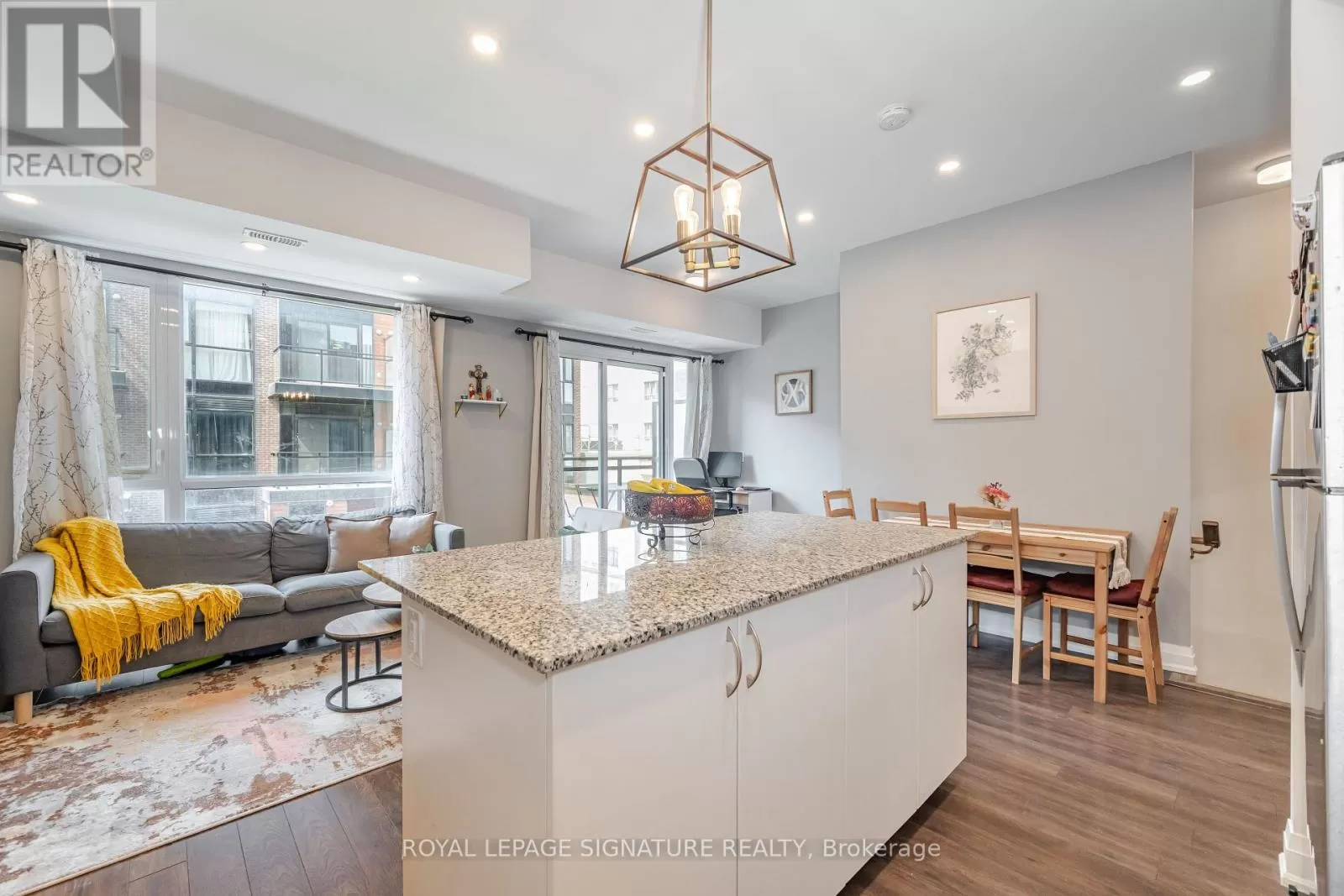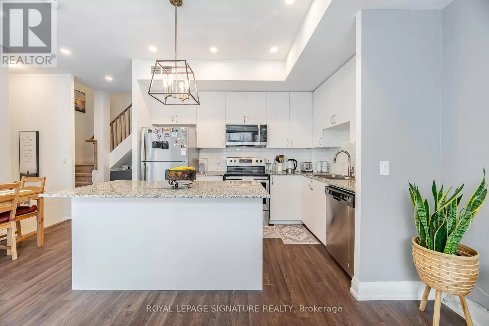 Cross Streets: Kipling & Highway 7. ** Directions: Kipling/Coles Ave. Modern 2-Bedroom Condo Townhouse with Private Rooftop Terrace in Prime Vaughan Location! Welcome to Oggi Boutique Towns, where contemporary style meets exceptional convenience! This bright and beautifully maintained 2-bedroom, 3-bathroom condo townhouse offers the perfect blend of comfort and modern living across three thoughtfully designed levels. One parking, a locker and underground visitors parking. Step inside to a luxurious entrance and an open-concept main floor featuring 10-foot ceilings,elegant engineered hardwood flooring, and pot lights throughout, creating an airy and sophisticated feel. The spacious kitchen is a chef's delight with quartz countertops, stainless steel appliances, ample storage, and a centre island with breakfast bar-ideal for casual dining or entertaining. The cozy living and dining areas flow seamlessly, with access to a private balcony and a powder room for guests. Upstairs, you'll find two generously sized bedrooms. The primary suite includes a walk-in closet and a spa-inspired ensuite bath, offering a private sanctuary to unwind. The second bedroom-currently set up as a guest room-is perfect for a home office, nursery, or guest suite. A second full bathroom completes this level for added convenience. Discover a rare find in the city - your very own private rooftop terrace!Located on the third level, this exclusive outdoor retreat is perfect for unwinding, summer BBQs, or entertaining guests under the stars. A true gem that's hard to come by! Enjoy the ease of one parking spot and one locker, along with unbeatable access to Highways400/407/427, Vaughan Metropolitan Centre subway, TTC, shopping, restaurants, libraries, and parks-all just steps from your door. This is more than just a home-it's a lifestyle. Don't miss the chance to call this stunning space your own! (id:27476)