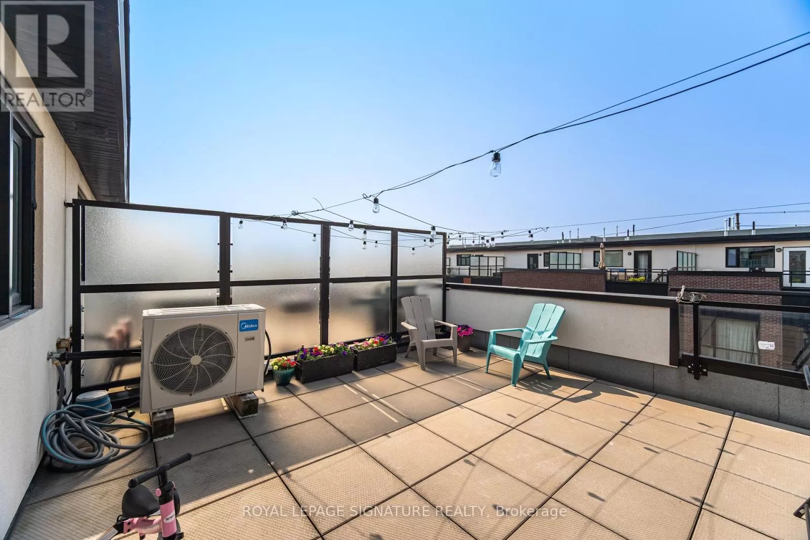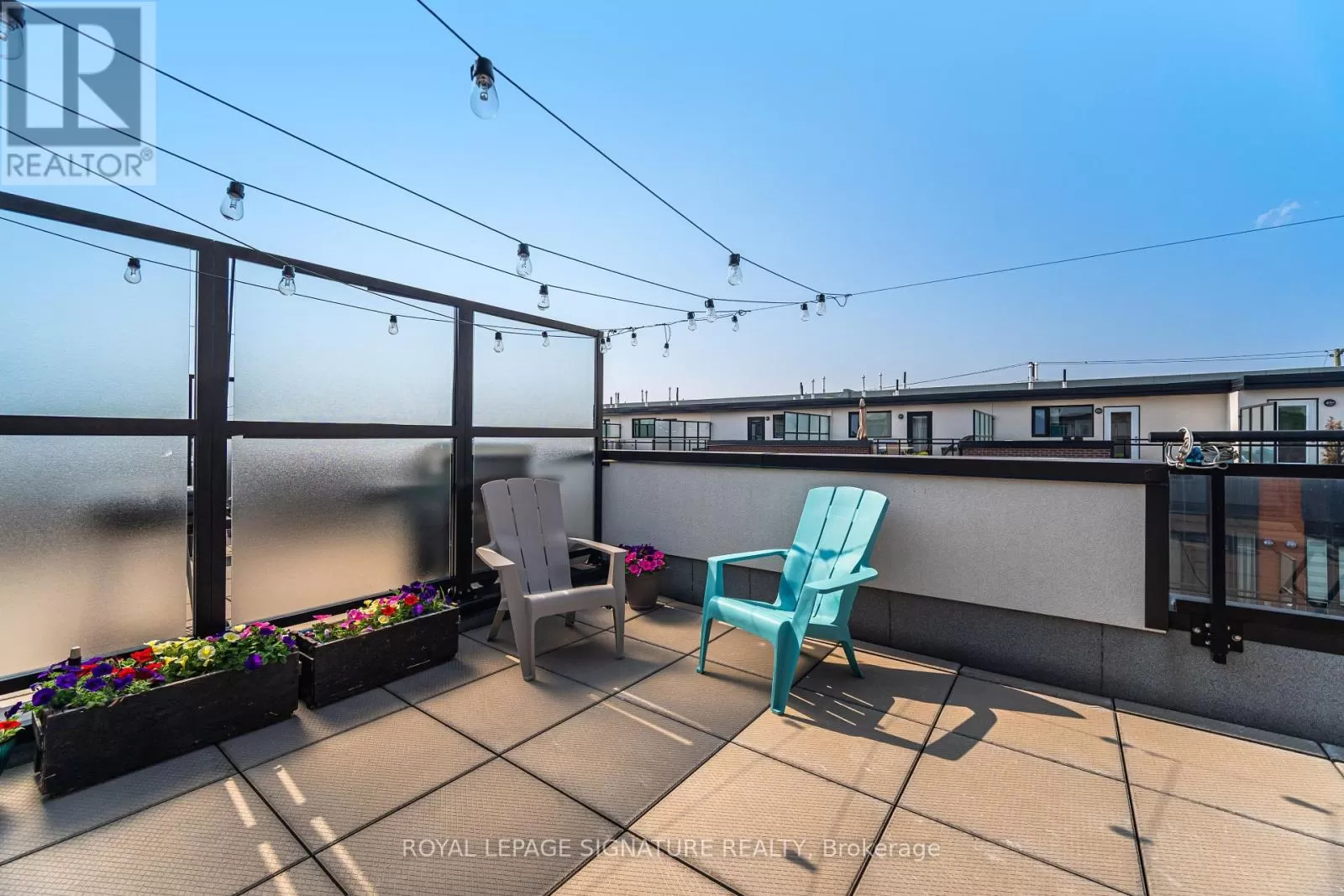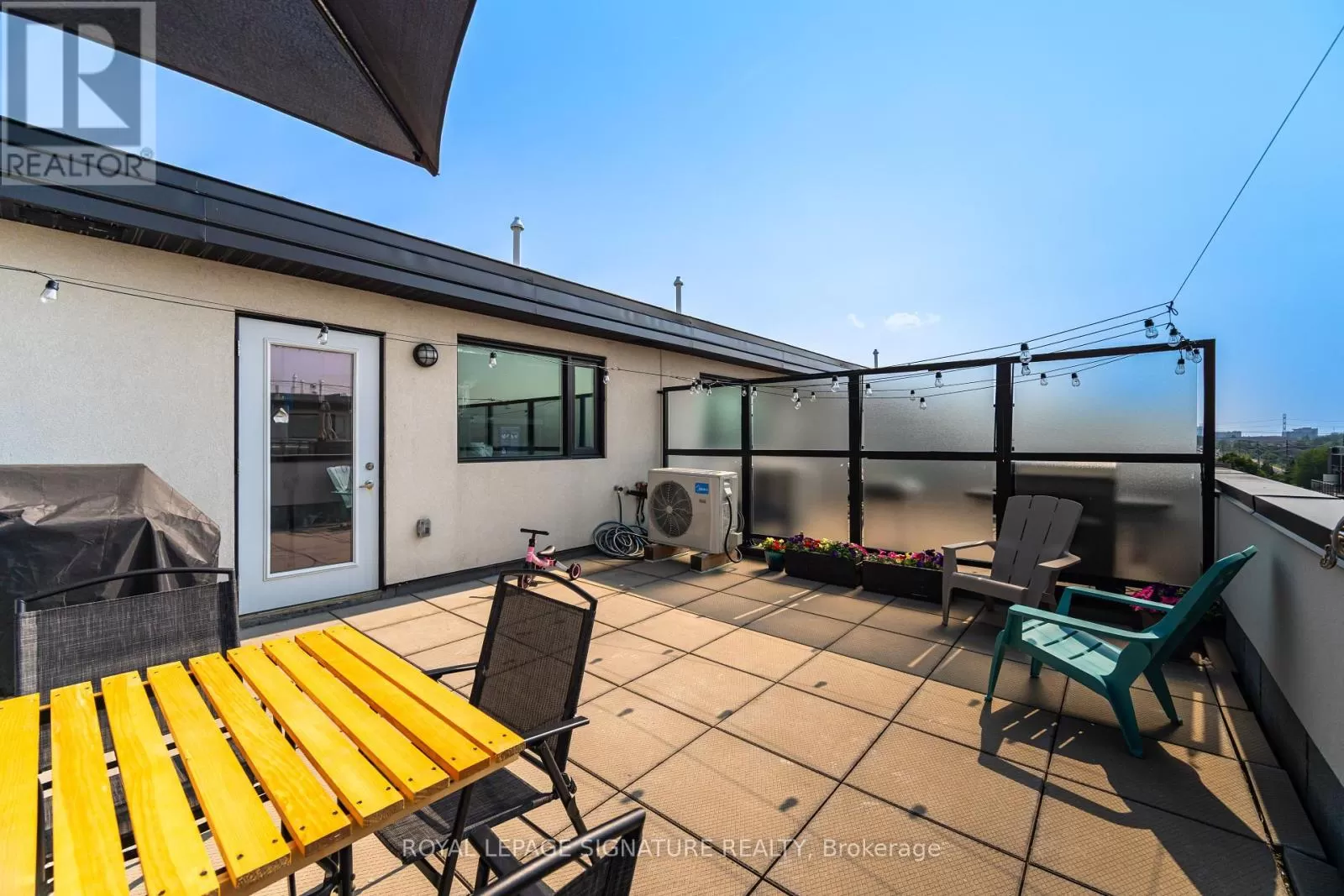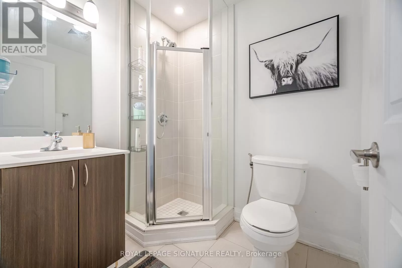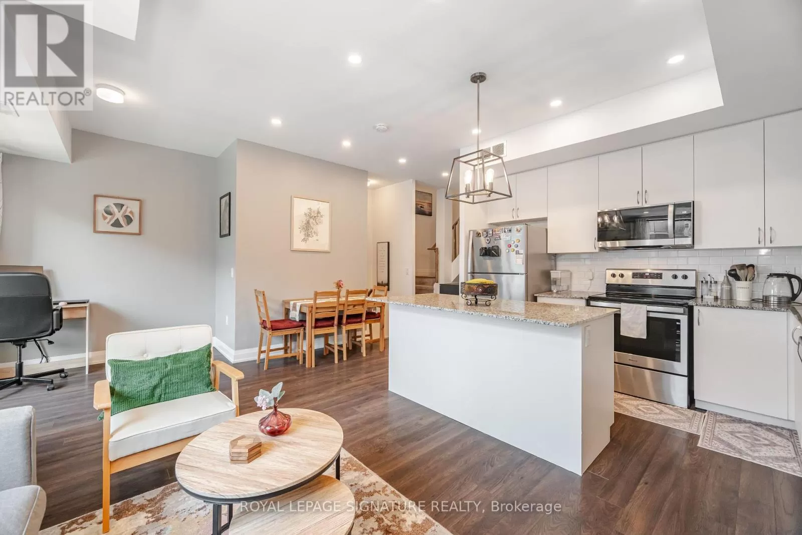 Cross Streets: Kipling & Highway 7. ** Directions: Kipling/Coles Ave. Modern 2-Bedroom Condo Townhouse with Private Rooftop Terrace in Prime Vaughan Location! Welcome to Oggi Boutique Towns, where contemporary style meets exceptional convenience! This bright and beautifully maintained 2-bedroom, 3-bathroom condo townhouse offers the perfect blend of comfort and modern living across three thoughtfully designed levels. One parking, a locker and underground visitors parking. Step inside to a luxurious entrance and an open-concept main floor featuring 10-foot ceilings,elegant engineered hardwood flooring, and pot lights throughout, creating an airy and sophisticated feel. The spacious kitchen is a chef's delight with quartz countertops, stainless steel appliances, ample storage, and a centre island with breakfast bar-ideal for casual dining or entertaining. The cozy living and dining areas flow seamlessly, with access to a private balcony and a powder room for guests. Upstairs, you'll find two generously sized bedrooms. The primary suite includes a walk-in closet and a spa-inspired ensuite bath, offering a private sanctuary to unwind. The second bedroom-currently set up as a guest room-is perfect for a home office, nursery, or guest suite. A second full bathroom completes this level for added convenience. Discover a rare find in the city - your very own private rooftop terrace!Located on the third level, this exclusive outdoor retreat is perfect for unwinding, summer BBQs, or entertaining guests under the stars. A true gem that's hard to come by! Enjoy the ease of one parking spot and one locker, along with unbeatable access to Highways400/407/427, Vaughan Metropolitan Centre subway, TTC, shopping, restaurants, libraries, and parks-all just steps from your door. This is more than just a home-it's a lifestyle. Don't miss the chance to call this stunning space your own! (id:27476)