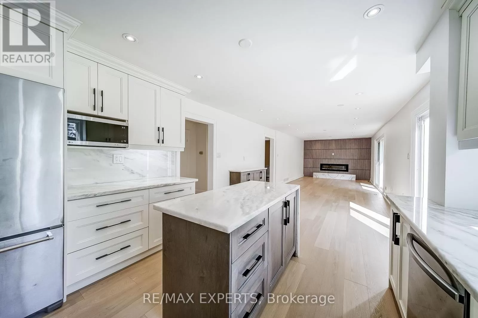 Pine Valley & Highway 7 Renovated and fully finished luxury home on large quarter-acre lot with mature trees. This home boasts approximately 4800 square feet of finished space. The rooms are spacious and are brightened with new windows (2025) . Finished basement (2025) with second kitchen, laundry, bathroom and side entrance offers more family space or can easily accommodate separate nanny, in-law suite or multi-generational living. Brand new hardwood (2025) and other high-end finishes were styled with timeless taste. Stylish contemporary feature wall (2025) with fireplace ready for TV mount. Additional extras include electrical panel upgrade to 200 amp (2025), second storey washroom renovations (2022) and replaced roof (2018). Impressive curb appeal with circular driveway. Main floor office accommodates working from home with ease. Situated in prestigious & quiet neighbourhood, with two separate yards backing into a nature reserve for private tranquility. Prime location situated close to Hwy. 407, 400, TTC subway, downtown Vaughan, public transit, Colossus, entertainment & shops. (Note that some photos feature virtually staged furniture. Home is currently vacant) (id:27476)