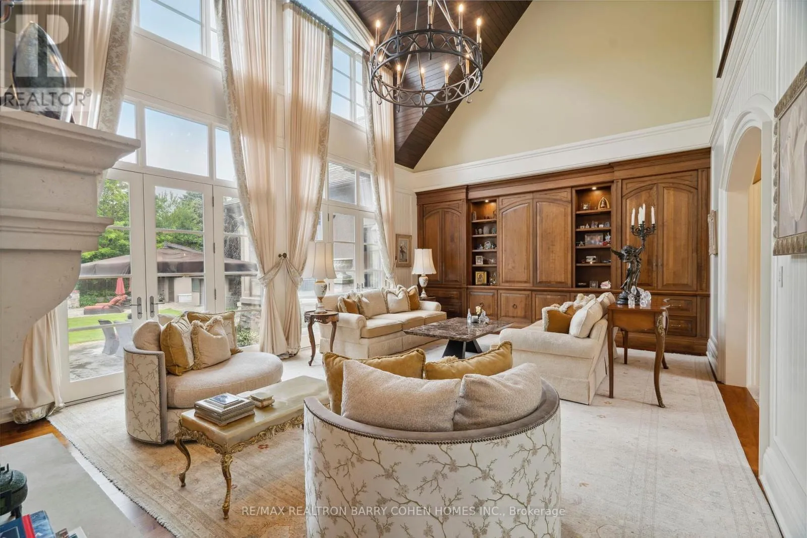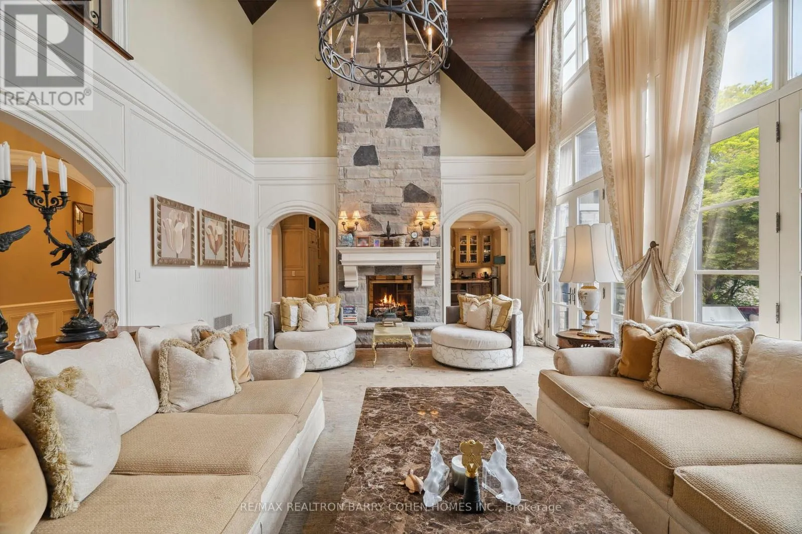 Cross Streets: Centre St/Bathurst. ** Directions: West of Yonge St. Landmark Estate Backing Onto The Prestigious Thornhill Golf And Nestled On Its Expansive South-Facing Lot. Towering Mature Trees For Ample Privacy. A Masterclass In Timeless Elegance And Craftsmanship With Striking Limestone Exterior & Cedar Shake Roof. Opens To A Grand Foyer With Majestic Cathedral Ceiling Soaring to a Breathtaking Height of Over 18 Feet, Custom Wall Paneling, Heated Natural Limestone Floors And Crown Molding. The Main Level Offers 11' Ceilings, Formal Living & Dining Rooms, Private Office Complete With Floor To Ceiling Wood Panelling and Gas Fireplace, Chef's Gourmet Kitchen With Custom Cabinetry, Natural Stone Countertops Complete in Leathered Finish, Wolf Appliances, Limestone Floors With Elegant Marble Inlays, Walk-in Pantry, Breakfast Area and Walk-out to Rear Gardens. The Family Room Impresses With Grand Atrium Ceilings, Flooded W/ Natural Light, Custom Built-Ins, And A Dual Fireplace. Heated Floors Enhance The Side Entrance And Powder Rooms. Unparalleled In Grandeur Primary Suite Offers Walk-Out to Terrace, Gas Fireplace, Walk-In Closet W/ Vanity Island, A Spa-Like Bath W/ Heated Marble Floors, His&Hers Vanities, Jacuzzi TubAnd Separate Water Closet. Upper Level Features Three Oversized Bedrooms, Each With Private Ensuites, Custom Closets & 2 Balconies. Walk-Out Lower Level Designed by World Renowned Lori Morris, Features 9' Ceilings,Home Theatre, Games Room, Temp. & Humidity Controlled Wine Cellar (1,500 bottles), Guest Suite, Full Spa With Sauna & Shower, Gym W/ Direct Access To The Gardens and Heated Pool. Smart Home Features Incl. Lutron Lighting, Sonos Sound System, Radiant Floor Heating. Full Snow-Melt Systems For Driveway And All Exterior Stone Surfaces. Backyard Oasis Features An Inground Heated Salt Water Pool W/ Cascading Waterfall, Hot Tub, Outdoor Bathroom/Change Room,Lush Gardens, And Resort-Style Amenities. A One-Of-A-Kind Estate With Unparalleled Blend Of Sophistication, Ultimate Privacy And Prestigious Golf Course Setting. (id:27476)