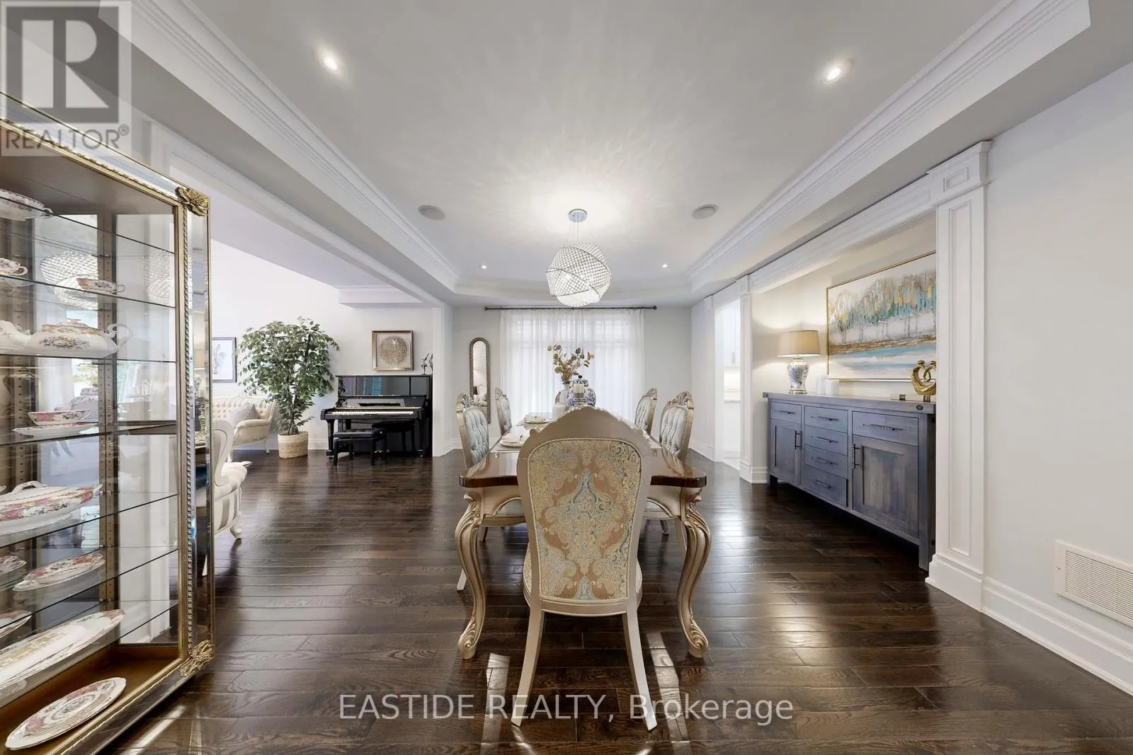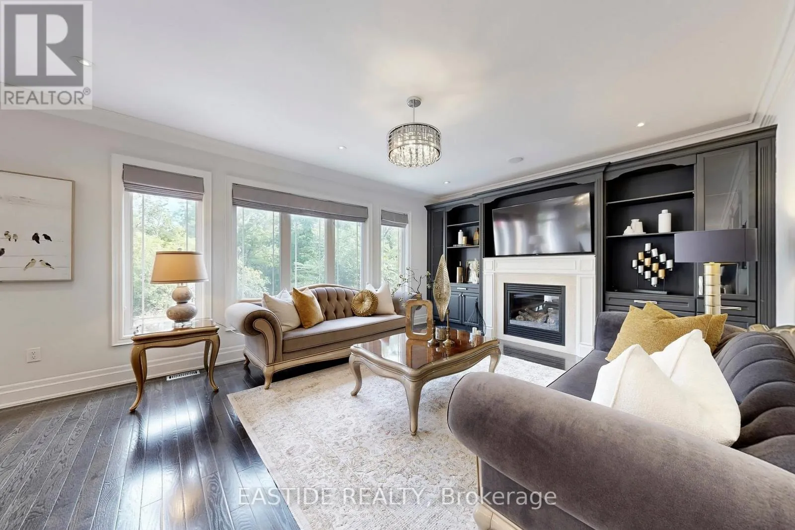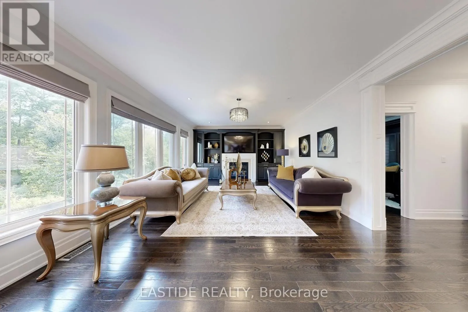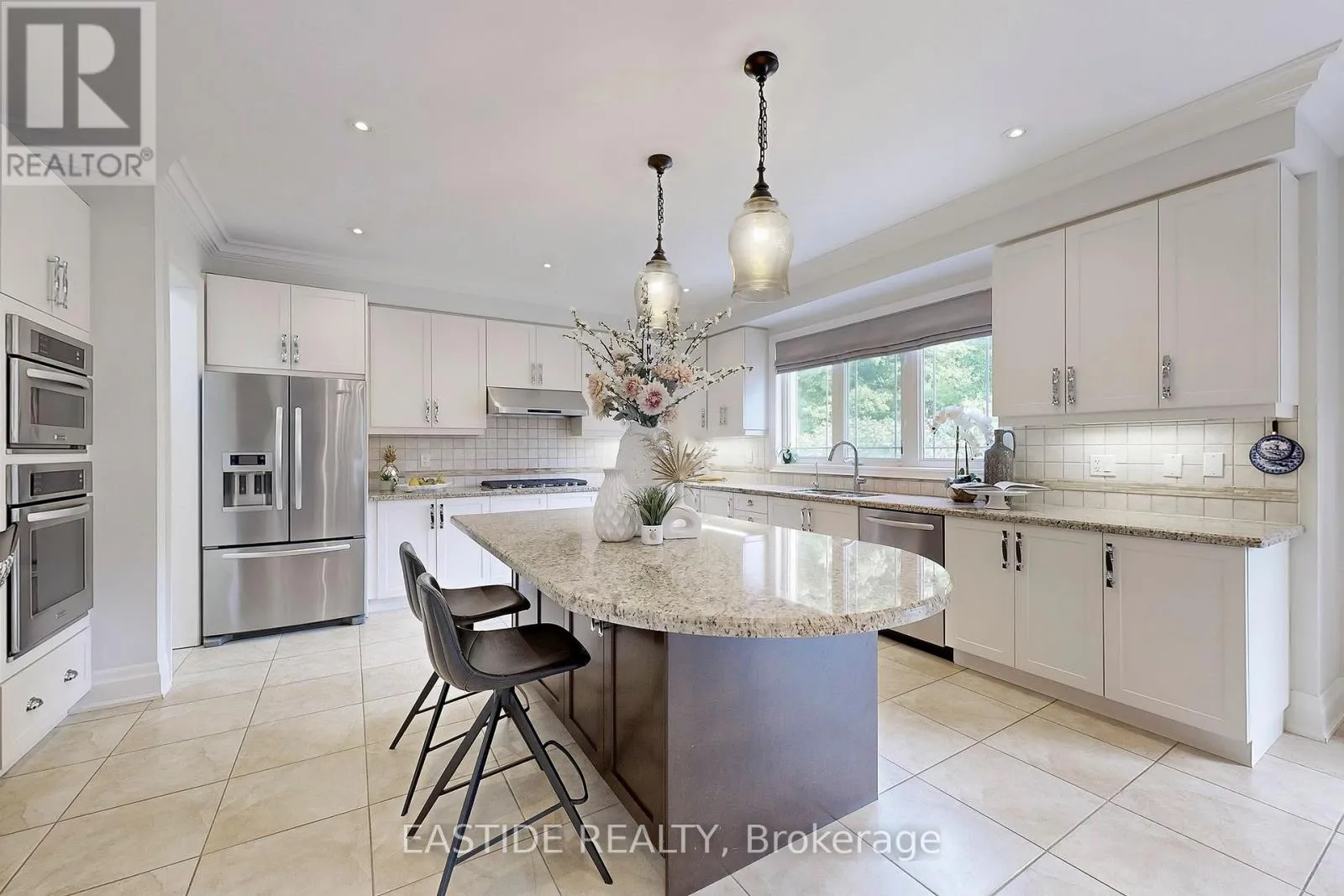 Dufferin / Major Mackenzie Welcome to this spectacular Premium RAVINE lot luxury home nestled in the prestigious Upper Thornhill Estates!The main level showcases elegant formal living and dining rooms, a private office, and a gourmet kitchen featuring granite countertops and premium built-in appliances. The refined dining room features a sophisticated coffered ceiling and flows seamlessly into the spacious living room with soaring ceilings, large windows, and abundant natural light! Sun-filled family room anchored by a stunning custom built-in wall unit with open display shelving and a gas fireplace with a timeless mantle. Step out onto the expansive elevated deck and take in the breathtaking panoramic views of the lush ravine. Surrounded by mature trees and vibrant greenery. The custom glass railing provides unobstructed views, while the spacious layout allows for both dining and lounge areas, creating an ideal space for relaxing with nature as your backdrop. The primary bedroom on the second floor is exceptionally spacious with a cozy seating area and two walk-in closets for ultimate convenience. The additional bedrooms are equally well-appointed, offering ample space, natural light, making them perfect for family members and guests. Backyard retreat continues on the lower level with direct walkout access from the basement, seamlessly blending indoor luxury with outdoor tranquility featuring a designer bar with custom cabinetry, wine fridge, beverage coolers, stone counters, and built-in shelving perfect for entertaining. The spacious recreation area includes a sleek modern fireplace, large TV wall, stylish lighting, and a dedicated lounge/entertainment zone. Just a few steps away is a brand-new, multi-functional Carrville Community Centre, Library and District Park, close to top-rated schools, Golf Club, GO station, Vaughan Mills, and Hospital. Surrounded by parks, trails, and shopping. This is a rare opportunity to own a home that blends elegance, functionality, and location. (id:27476)