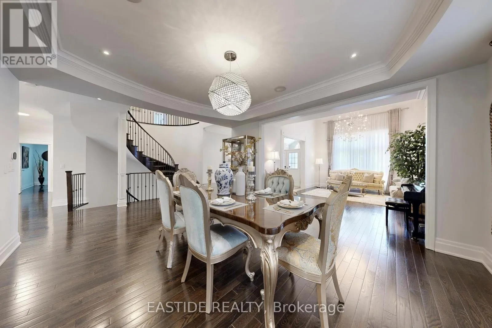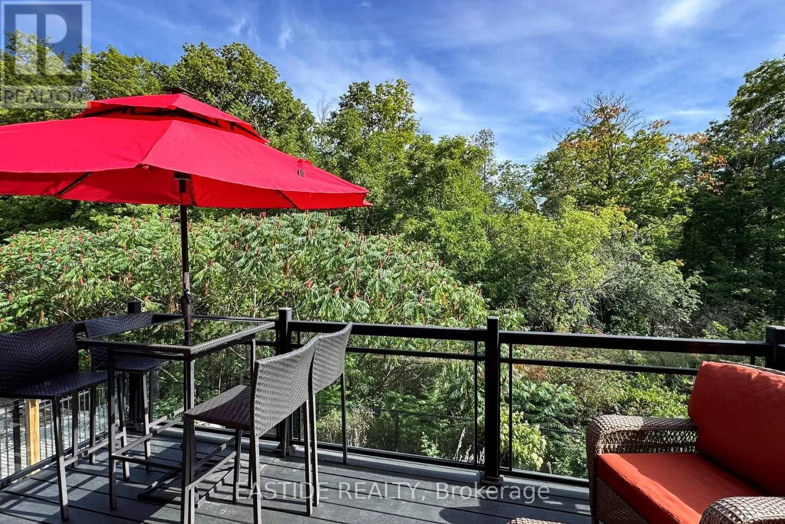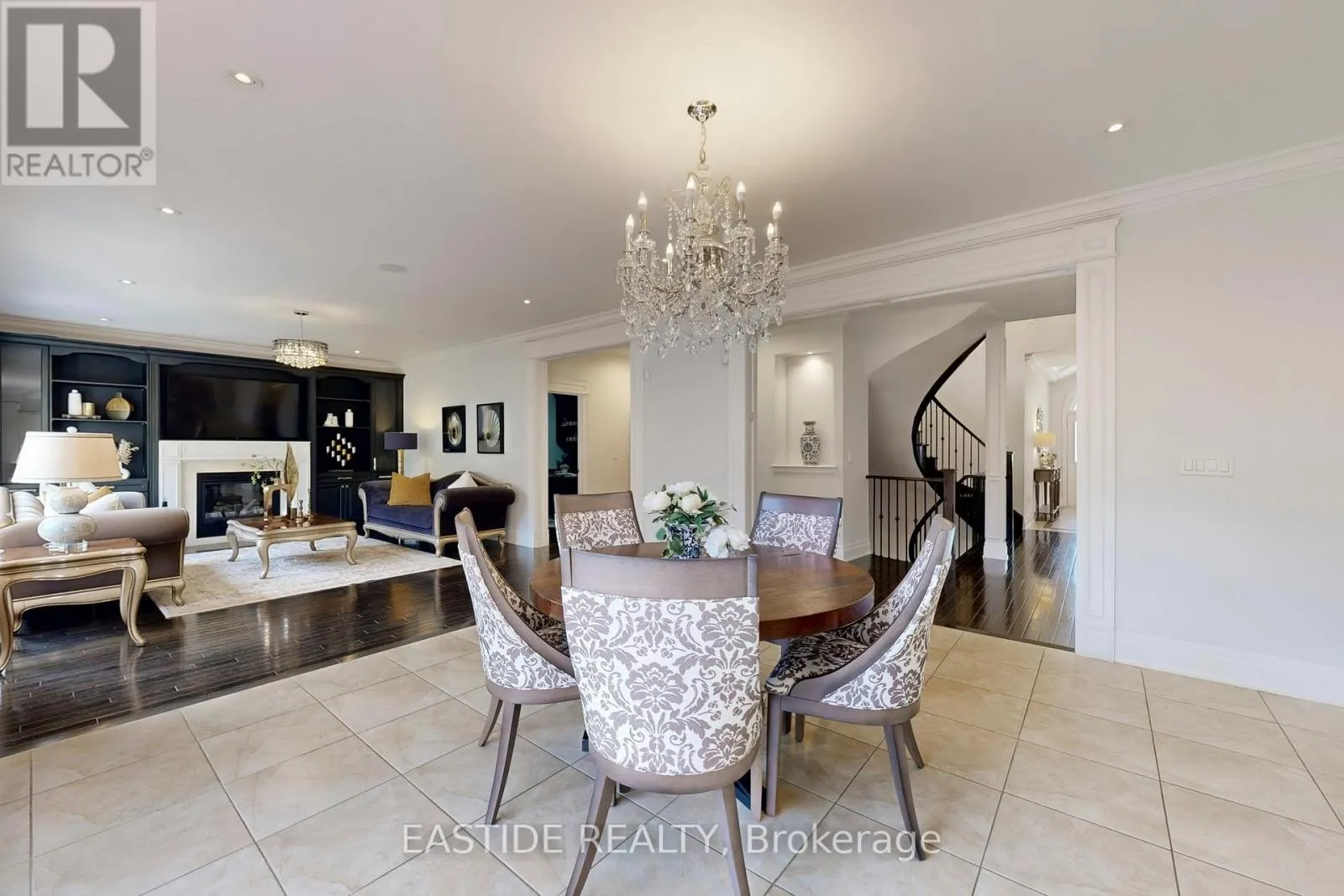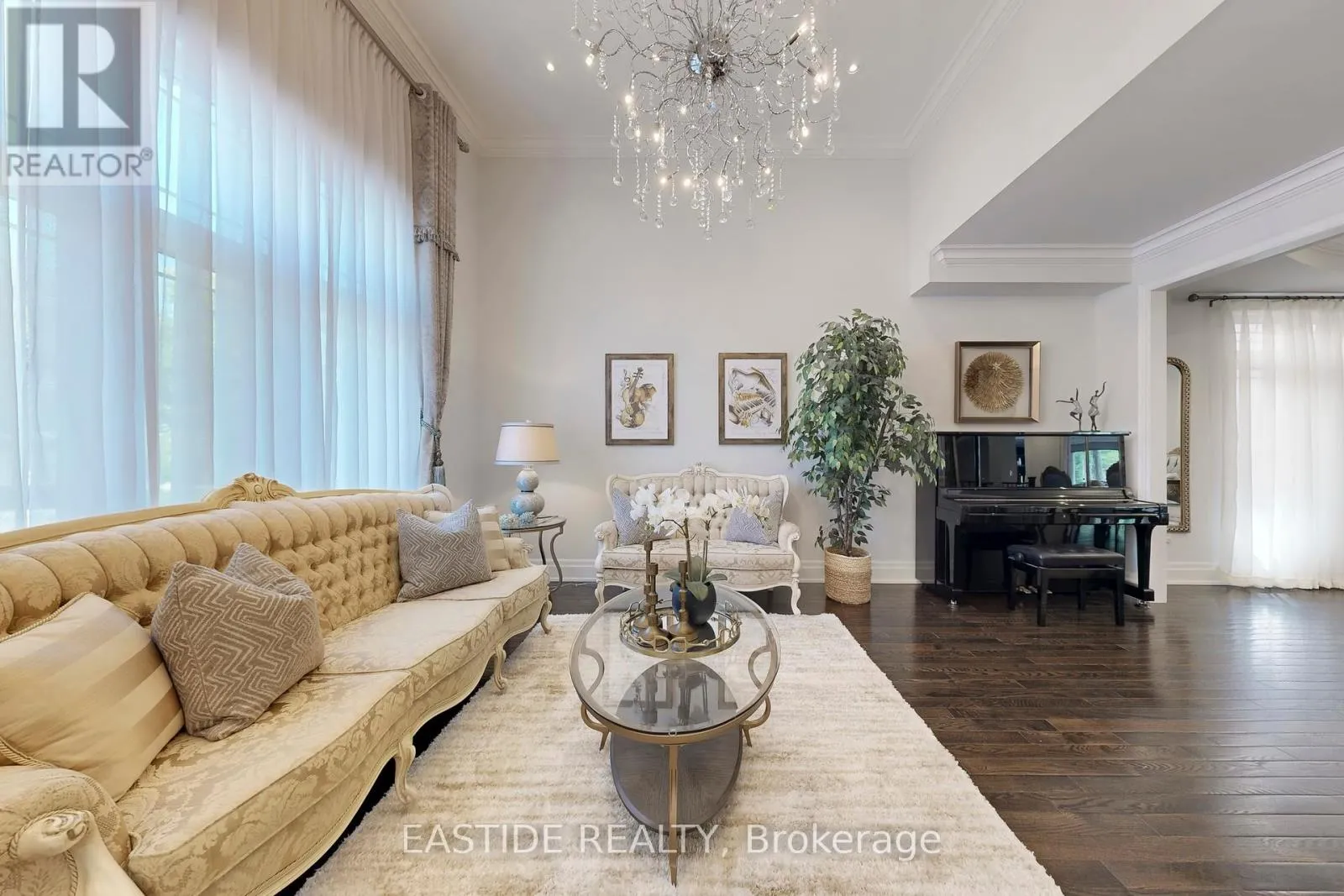 Dufferin / Major Mackenzie Welcome to this spectacular Premium RAVINE lot luxury home nestled in the prestigious Upper Thornhill Estates!The main level showcases elegant formal living and dining rooms, a private office, and a gourmet kitchen featuring granite countertops and premium built-in appliances. The refined dining room features a sophisticated coffered ceiling and flows seamlessly into the spacious living room with soaring ceilings, large windows, and abundant natural light! Sun-filled family room anchored by a stunning custom built-in wall unit with open display shelving and a gas fireplace with a timeless mantle. Step out onto the expansive elevated deck and take in the breathtaking panoramic views of the lush ravine. Surrounded by mature trees and vibrant greenery. The custom glass railing provides unobstructed views, while the spacious layout allows for both dining and lounge areas, creating an ideal space for relaxing with nature as your backdrop. The primary bedroom on the second floor is exceptionally spacious with a cozy seating area and two walk-in closets for ultimate convenience. The additional bedrooms are equally well-appointed, offering ample space, natural light, making them perfect for family members and guests. Backyard retreat continues on the lower level with direct walkout access from the basement, seamlessly blending indoor luxury with outdoor tranquility featuring a designer bar with custom cabinetry, wine fridge, beverage coolers, stone counters, and built-in shelving perfect for entertaining. The spacious recreation area includes a sleek modern fireplace, large TV wall, stylish lighting, and a dedicated lounge/entertainment zone. Just a few steps away is a brand-new, multi-functional Carrville Community Centre, Library and District Park, close to top-rated schools, Golf Club, GO station, Vaughan Mills, and Hospital. Surrounded by parks, trails, and shopping. This is a rare opportunity to own a home that blends elegance, functionality, and location. (id:27476)