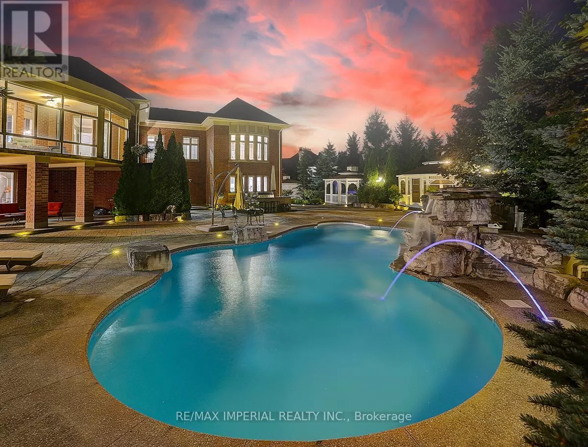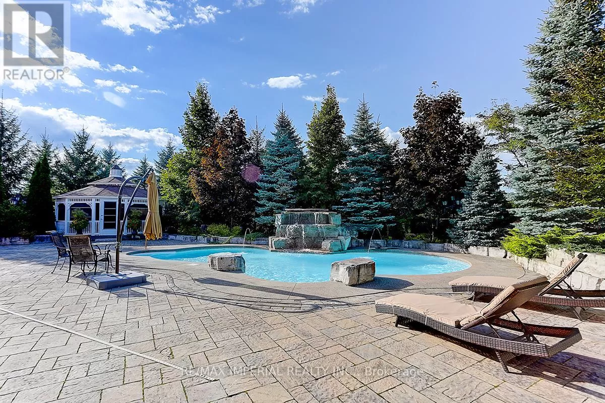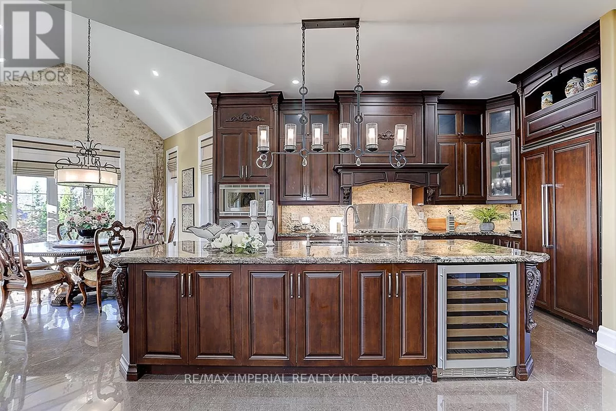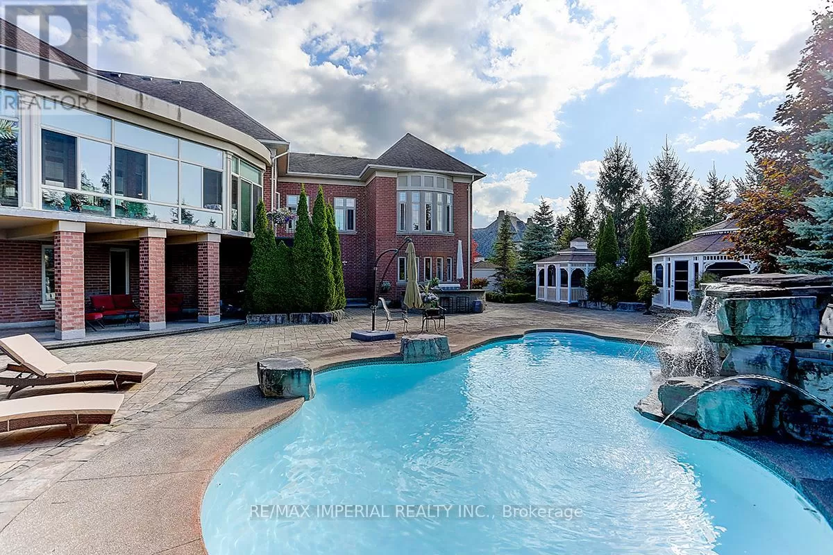 Weston /Teston & Major MacKenzie This stunning luxury bungalow is located on a peaceful street in the prestigious Vellore Village Community, offering over 7,000 sq. ft. of beautifully crafted living space. Situated on a spacious 0.5-acre lot, this home features 4+1 bedrooms, 4+2 bathrooms, and an office, all designed with elegance and comfort in mind.The main floor boasts 10-14 ft ceilings and an open-concept layout, with high-end finishes throughout, including maple hardwood floors, porcelain tiles, and crown molding. The formal dining room features coffered and acoustic ceilings, perfect for special gatherings.The European-inspired kitchen is equipped with built-in appliances, marble countertops, a stylish backsplash, and a butler's pantry. The primary bedroom offers a luxurious ensuite with a glass shower, double sinks, and a walk-in closet.The professionally finished lower level includes an additional bedroom, office, kitchen, bathroom, recreation area, and a soundproof theater for movie nights.Step outside to your private oasis, complete with an in-ground saltwater pool, waterfall, hot tub, and a beautifully landscaped backyard. Enjoy outdoor dining, relax by the pool, or unwind in the 20-person gazebo. Additional features include a built-in BBQ, in-ground sprinkler system, and exterior lighting.This home also includes a cold cellar, stone wall accents, epoxy flooring in the garage, and a car lift, with spray foam insulation throughout for energy efficiency. **EXTRAS** Conveniently located close to shopping plazas, Vaughan Mills Mall, Highway 400, Cortellucci Vaughan Hospital, and Canadas Wonderland. (id:27476)