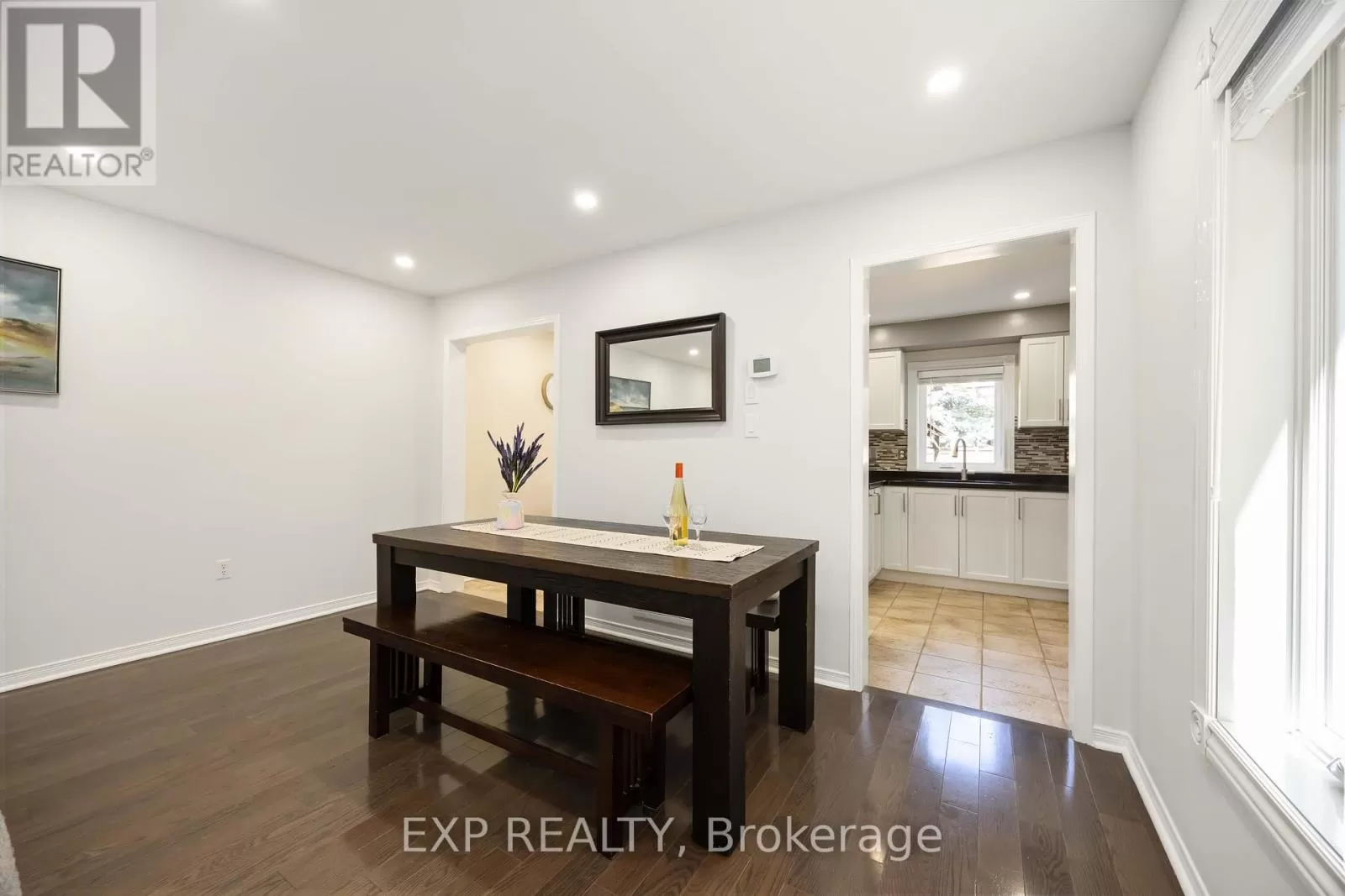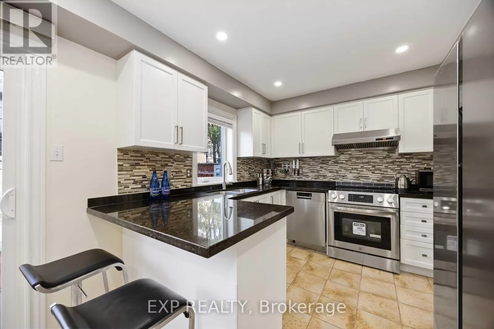 HWY 7 / LANGSTAFF RD Beautifully updated 3-bedroom, 3-bathroom home in sought-after Thornhill Woods! Offering 2,200 sqft of bright and inviting living space in a family-friendly Patterson community. This home boasts a spacious foyer, a welcoming living area, and an eat-in kitchen with granite countertops, freshly repainted cabinets, and new stainless steel appliances (stove, fridge, and dishwasher). Additional updates include potlights installed on the main floor, two upgraded bathrooms on the second floor, a brand-new 1-piece toilet in the powder room, new ceiling light fixtures in the basement, and a full interior repaint, giving the home a modern and refreshed feel. The primary suite is a true retreat, featuring a large bright window, a 4-piece ensuite, and a walk-in closet. Two additional well-sized bedrooms offer ample closet space and natural light. The finished basement provides the perfect blend of extra living space and storage. Significant upgrades add peace of mind, including new windows and patio door (2020), driveway interlocking (2020), furnace, AC, and water softener (2021), and attic insulation (2021). Step outside through the patio door to a generously sized, fully fenced backyard, perfect for family gatherings and entertaining. Located minutes from Vaughan Mills & Promenade Mall, North Thornhill Community Centre, parks, grocery shopping, restaurants, and top-rated schools (Bakersfield Public School, Stephen Lewis H.S. & St. Joseph C.S.), with easy access to Highway 400 & 407, YRT Bus, and the GO Train. Pride of ownership is evident throughout this exceptional home. (id:27476)