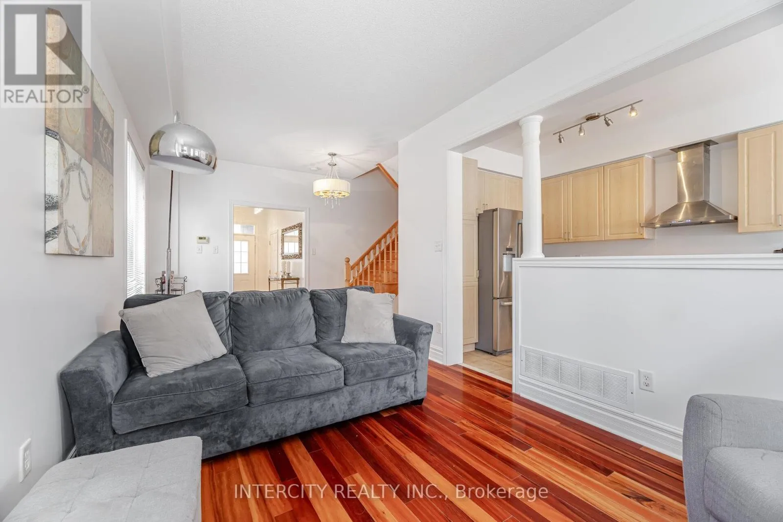 Pine Valley & Hwy 7 Welcome to this charming and inviting 3-bedroom, 3-bathroom semi-detached home, nestled on a quiet street in a highly sought-after neighborhood. Step inside and discover a bright, open-concept layout with elegant hardwood floors that flow throughout. The heart of the home is the spacious eat-in kitchen, a culinary delight featuring stainless steel appliances and plenty of room for family meals and entertaining. A convenient separate entrance through the garage. Upstairs, you'll find three generously sized bedrooms, providing a comfortable retreat for the entire family. A standout feature is the professionally finished basement, which offers a versatile living space ideal for a media room, home office, or children's play area. Enjoy summer days in your private, fully-fenced backyard, an ideal space for outdoor dining and entertaining. With a fresh coat of paint and its prime location just minutes from major highways, transit, and top-rated schools, this home is completely move-in ready. It's the perfect place to start your next chapter. (id:27476)