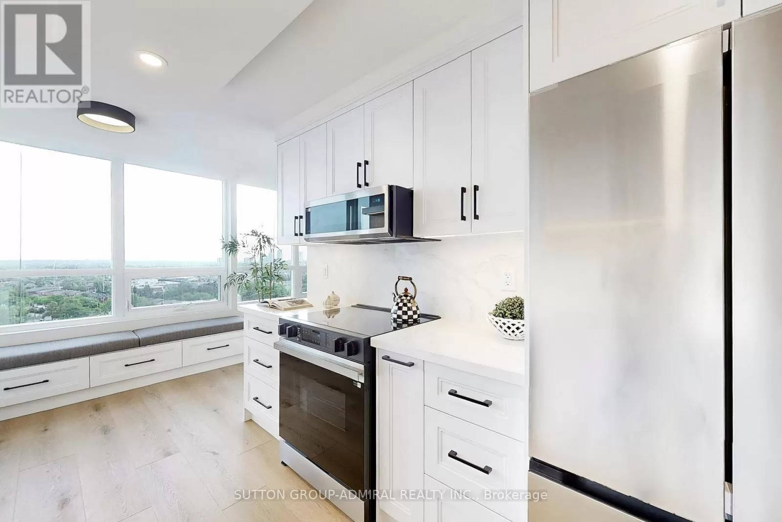 Cross Streets: Bathurst & Centre St. ** Directions: South of Centre Street. NEVER LIVED IN & FULLY RENOVATED W/Top Of The Line Designer Finishes Corner Unit Allowing In An Immense Amount of Natural Sunlight Located In Prime Thornhill With CN Tower Views, Storage Locker & Brand New Windows. Walking Distance To Parks, Promenade Mall, Transit, Grocery Stores & Endless Amenities. High End Features Include: Extra Wide Plank Wood Color Flooring Throughout, Modern Kitchen With Built-In Bench & Extra Storage On The Bottom, Quartz Counter Tops & Backsplash, Pot Lights, Smooth Ceiling's Everywhere, Stunning Mouldings & Extensive Premium Carpentry Work. Exotic 24 x 48 Inch Porcelain Floors & Walls In Washrooms, Custom Built-In & Walk-In Closets, Rich Black Hardware T-Out. Top Quality Renovation With ESA Certificate (Electrical Safety Authority). Ultra Low Maintenance Fees Includes ALL Utilities, Even Cable & Internet. Exceptional Well Maintained Extremely Quiet Building. Won't Last Long! (id:27476)