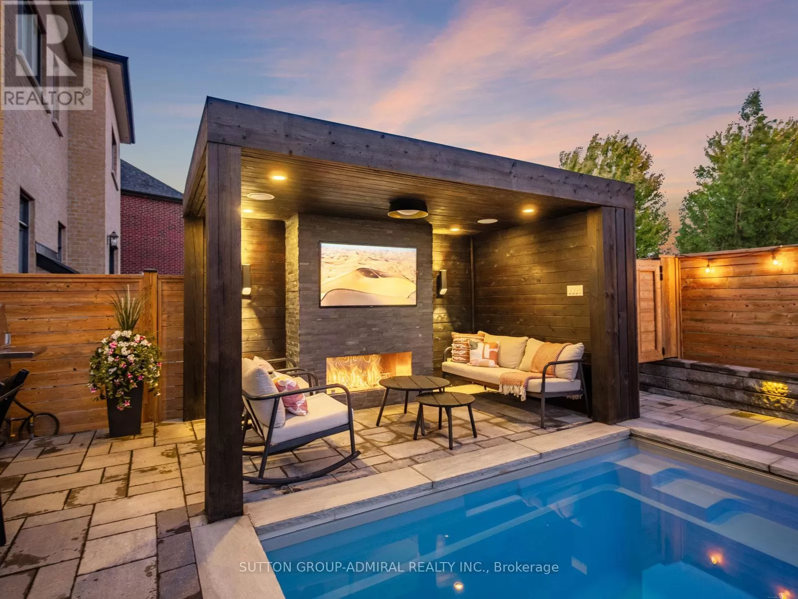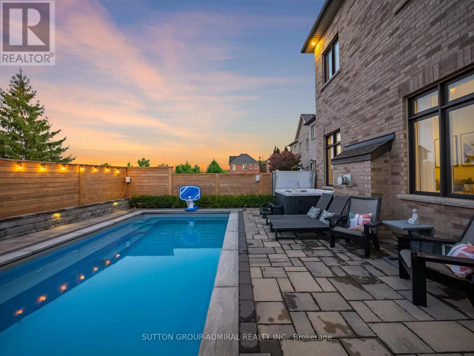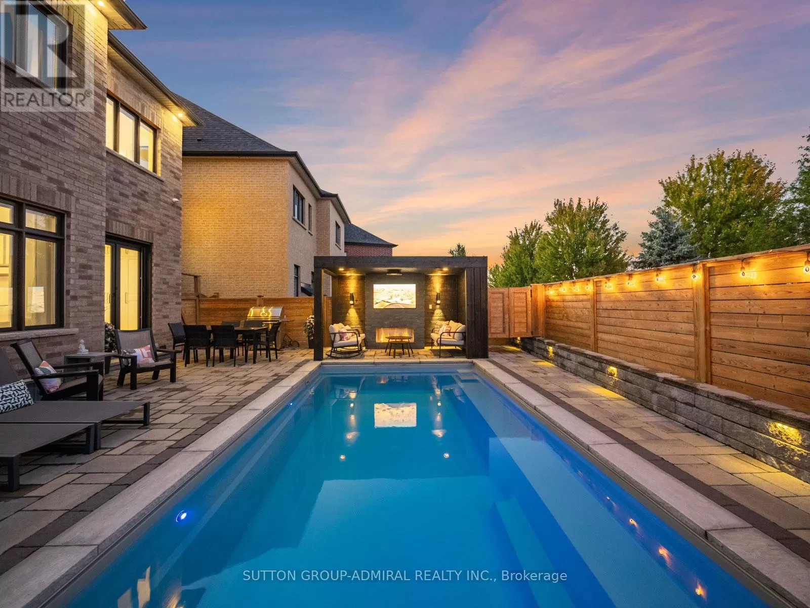 Cross Streets: Dufferin St & Apple Blossom Dr. ** Directions: From Highway 7, North on Dufferin St & East on Apple Blossom Dr, North on Kylemount. Welcome To This Exquisitely Renovated Luxury Residence Nestled In The Heart Of Prestigious Thornhill Woods. Perfectly Situated On A Quiet Cul-de-sac And Backing Onto A Peaceful Park, This Stunning 4+1 Bed, 4 Bath Home Blends Timeless Elegance With Modern Design. From Its Striking Architectural Details To Its Exceptional Craftsmanship And Finishes, Every Aspect Has Been Thoughtfully Curated To Offer Comfort, Sophistication, And Lasting Quality.Inside, The Home Showcases Meticulous Attention To Detail, Featuring Custom Millwork, Solid Wood Doors, And Elegant Wall Paneling. Dramatic Glass-railing Staircase Adds A Contemporary Edge, While The Open-concept Layout Creates An Inviting Atmosphere. Gourmet Kitchen Is A Chefs Dream, Outfitted With Premium Wolf And Sub-zero Appliances, Caesarstone Countertops, And Marble Accents That Elevate Both Style And Functionality.Each Bathroom Is Spa-inspired, Featuring Luxurious Stone And Marble Finishes. The Primary Ensuite Includes Heated Floors For Year-round Comfort. Additional Interior Highlights Include Custom Drapery, A Wet Bar, And A Built-in Movie Projector - Perfect For Entertaining Or Enjoying Cozy Nights At Home.Outside, The Home Continues To Impress. Built On A Full Concrete Pad For Enhanced Structural Integrity, The Exterior Boasts Enduring Stonework. The Private Backyard Oasis Includes A Fibreglass Pool With A Coverstar Automatic Cover, A Cabana Equipped With A Tv, Fireplace, And Stereo System, Plus A Hot Tub For Ultimate Relaxation.Upgrades Include A Full Irrigation System And A High-security Five-point-lock European Fibreglass Entry Door. Every Element Reflects A Commitment To Quality And Timeless Design. You'll Enjoy Access To Top Schools, Parks Like Sugarbush Heritage And North Thornhill District Park, And Convenient Amenities Along Dufferin And Rutherford. Commuters Benefit From Easy Access To Hwy 407, Hwy 7, And Rutherford Go Station.Move-in Ready And Crafted For The Most Discerning Buyer. (id:27476)