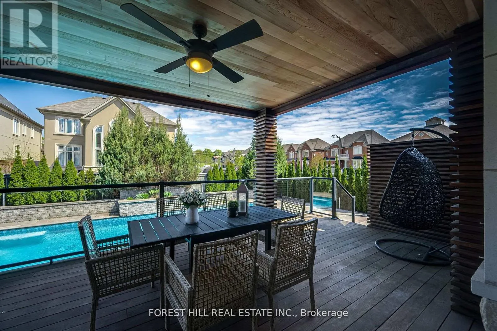 Bathurst And Elgin Mills Welcome to 101 Glenheron. This Beautiful & Bright, Open Concept 4000+ Sq Ft Home has it all including 4+1 Bedrooms and 6 Bathrooms. Built by award winning CountryWide Homes, this exclusive Builder Model Boasts 10.5 Ft Ceilings on the main Floor including 20 Ft Ceilings in the Grand Family Room, 9.5 Ft ceilings on the 2nd floor and 9 Ft in the finished basement. The home features hardwood floors throughout and Each Bedroom offers its own ensuite bathroom. A chefs kitchen complete with custom island and tons of counter and cupboard space is perfect for those who love to cook! The home tastefully features both a main floor office and second floor work area perfect for those who work from home or great for families looking for a designated homework space. Direct entrance from the garage to an amazing Laundry/Mudroom offers tons of storage and easy way to keep things organized around the house. The Backyard Oasis offers a stunning covered deck complete with Gas BBQ line, Ceiling fan to keep cool on those hot days and perfect for entertaining. This deck overlooks an amazing swimming pool with complete water slide, water fall and professionally landscaped seating area. The professionally finished basement includes a large Bedroom with Bathroom, designated gym area, finished rec room complete with Bar, wired speakers and large TV and multiple storage areas. Located in the Herbert Carnegie School District and close to Shopping, Parks, Transit and more, this home has it all!! (id:27476)