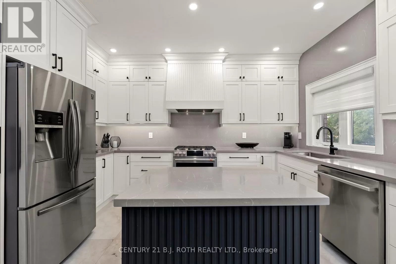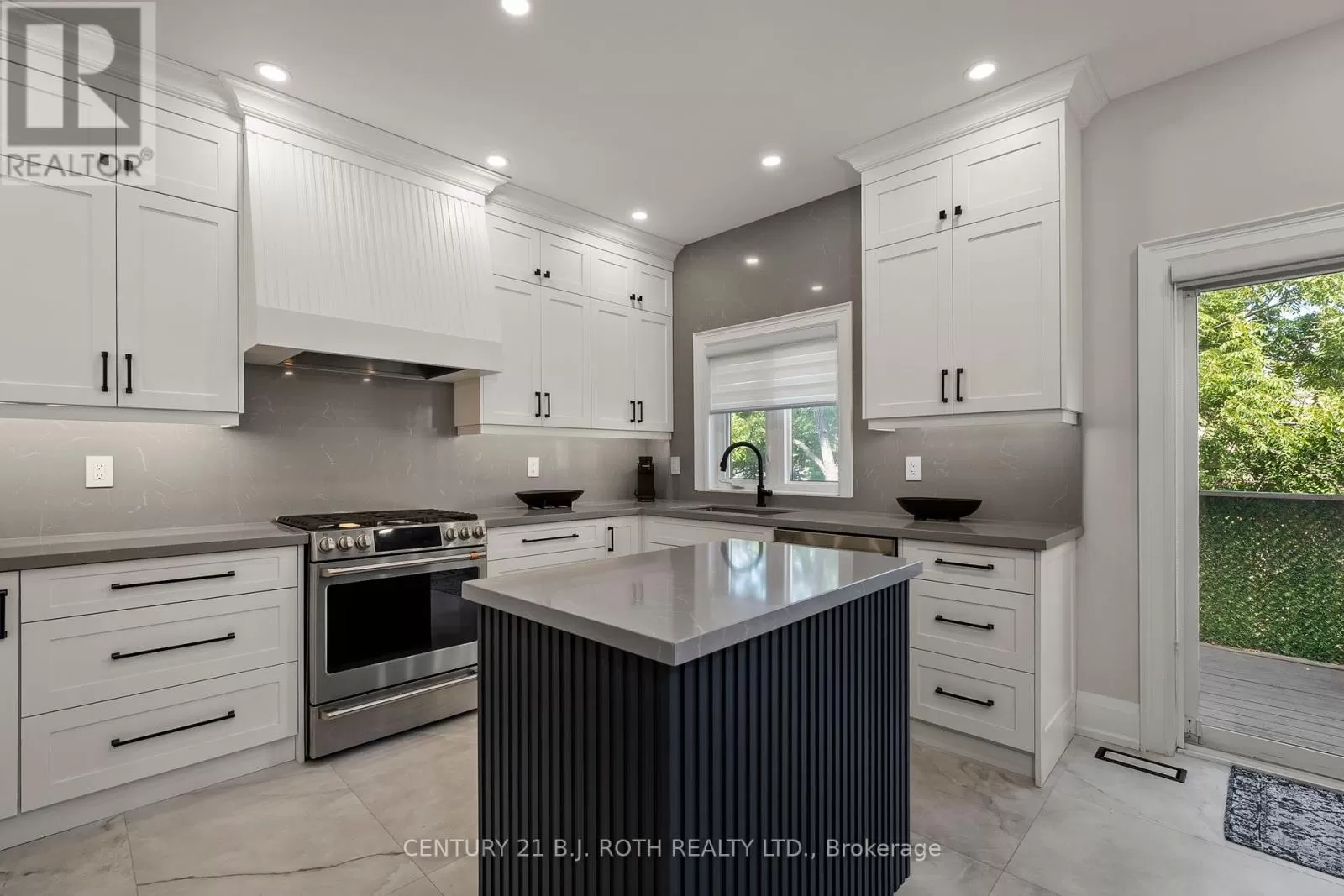 HWY 7 TO KIPLING AVENUE Welcome to 8032 Kipling Ave, Unit 15, an exquisitely renovated semi-detached home offering over 2,000 sq. ft. of beautifully finished living space. Thoughtfully redesigned in 2023, every detail of this 3-bedroom, 4-bathroom residence reflects quality craftsmanship and modern elegance. Step inside to find engineered hardwood flooring paired with hand-selected porcelain tile, all set beneath smooth 9' ceilings with recessed lighting that enhance the bright, airy feel. A striking fireplace feature wall seamlessly wraps around, creating a stunning focal point in the main living area. The chefs kitchen is a true showpiece, featuring extended cabinetry, quartz countertops with a matching backsplash, premium stainless steel appliances, under-cabinet lighting, and a professional gas range, perfect for creating gourmet meals. Upstairs, two spa-inspired bathrooms await, including a luxurious primary suite with custom cabinetry and a spacious walk-in closet. A skylight over the staircase fills the home with natural light, highlighting the elegant design throughout. The finished lower level offers a versatile rec room ideal for a study, home office, or family retreat. Outdoors, enjoy entertaining on the upper deck or unwinding in privacy on the lower deck. If you've been searching for a turnkey home that combines sophisticated style with meticulous upgrades, this is the one to call home. (id:27476)